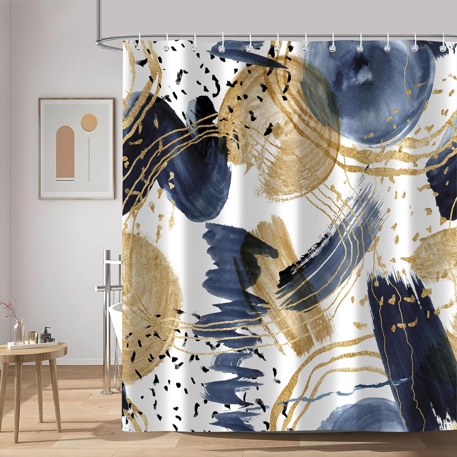 Abstract Striped Shower Curtain, Blue White Gray Aesthetic Minimalist Art Modern Fabric Showers Crtains Set for Bathroom Decor, Washable Waterproof with Hooks 72x78 Inch