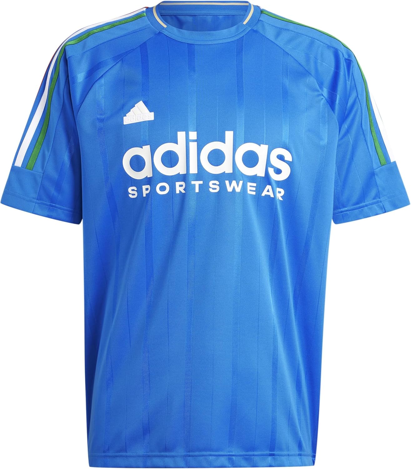 Add something classic to the rotation with this men's adidas t-shirt. It features an adidas graphic on the chest and 3-Stripes on the shoulders for an iconic look. The polyester doubleknit build provides comfort and durability, while the crewneck helps this shirt hold its shape.