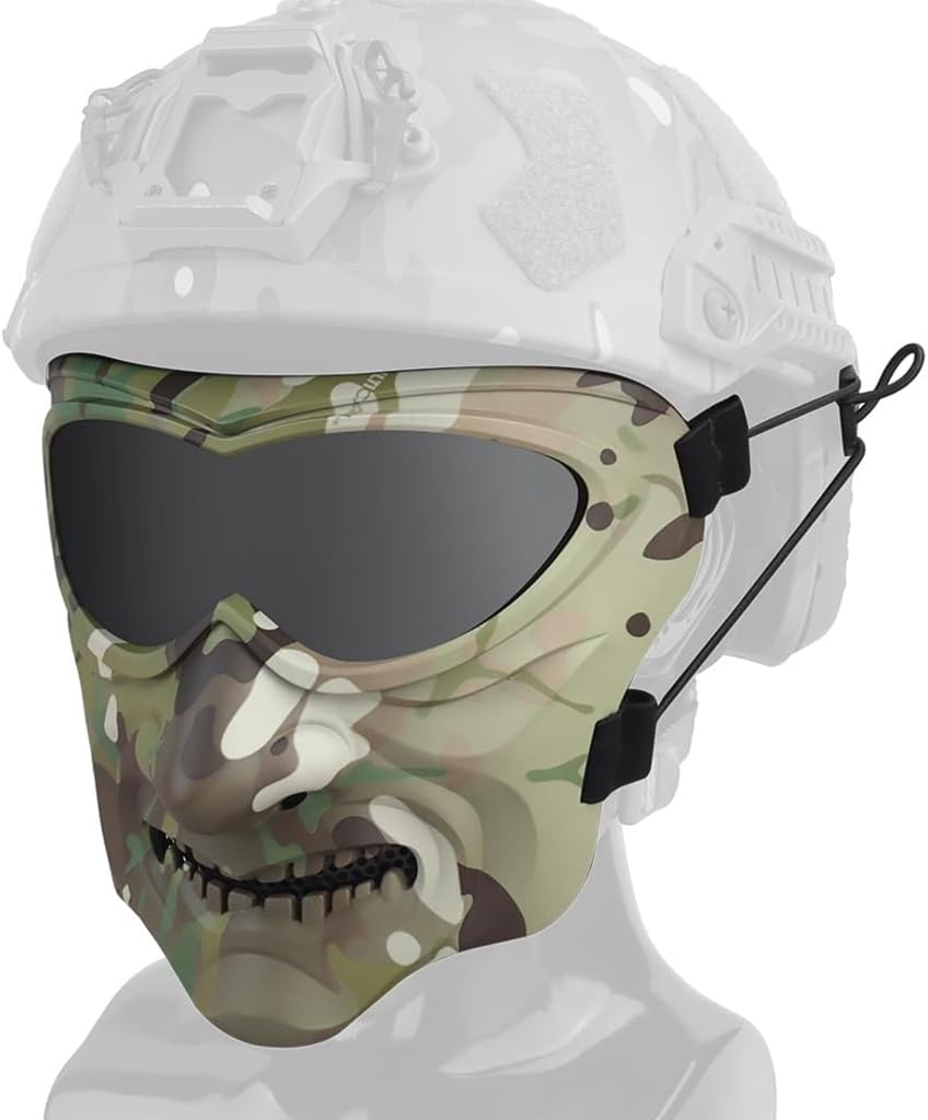 Upgraded full face skull protective mask Product details: Material: Nylon+PCProduct size: 18.6 * 10.6 * 18.3cm (7.3 * 4.1 * 7.2 inches)Product net weight: 380G (10OZ)Applicable scenes: air guns, paintball, military tactical games, film and television props, CQB shooting, cosplayPackaging Details: Mask * 1, Mask Adapter Belt * 2100% Customer Satisfaction Guarantee: If you have any questions, please feel free to contact us and we will immediately correct the situation or provide a refund/exchange