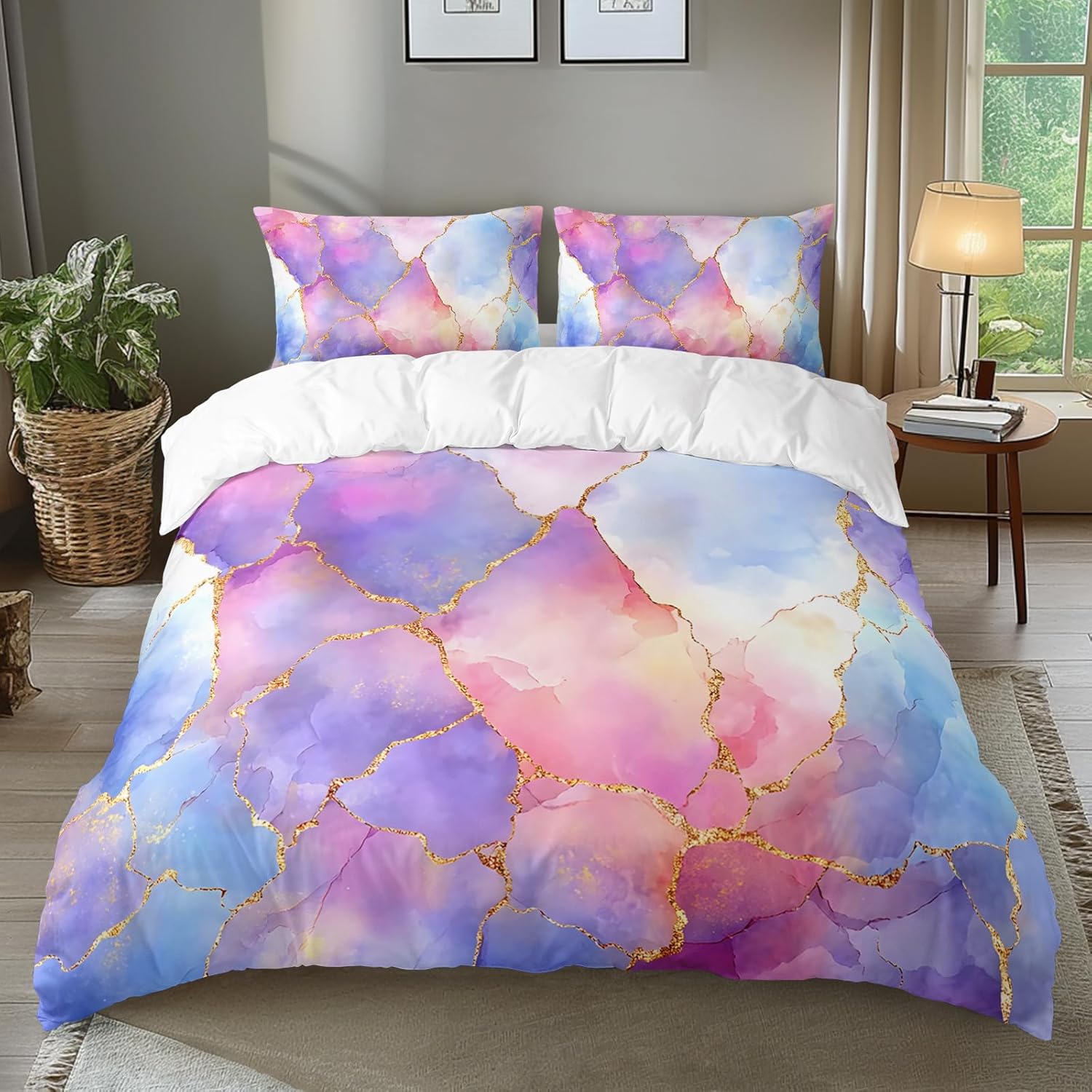 | Included Components | Upgrade your bedding with our stunning digital print duvet cover set! This set includes one duvet cover and two pillowcases, all made from high-quality microfiber fabric that feels soft and luxurious against your skin. Our unique print designs are created using advanced digital printing technology, ensuring that the colors and patterns are vibrant and long-lasting. The contemporary patterns and bright colors of our bedding set will add a pop of style to any bedroom decor. Don't settle for boring bedding – choose our digital print duvet cover set for a comfortable and stylish sleep experience! |