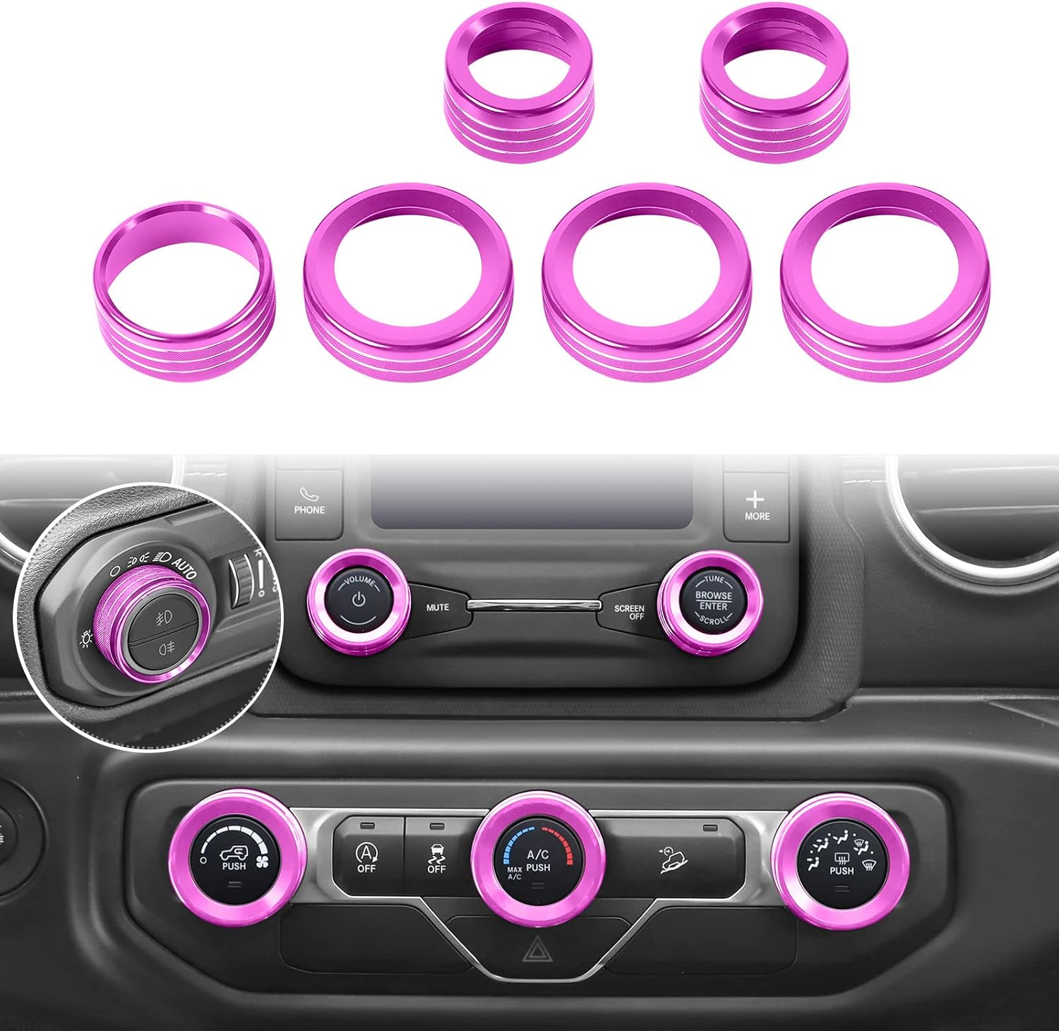 | Operation Mode | Air Conditioner Headlight Center Consoles Switch Knob Cover Trim for 2018-2025+ Jeep Wrangler JL JLU Gladiator JT Interior Accessories |