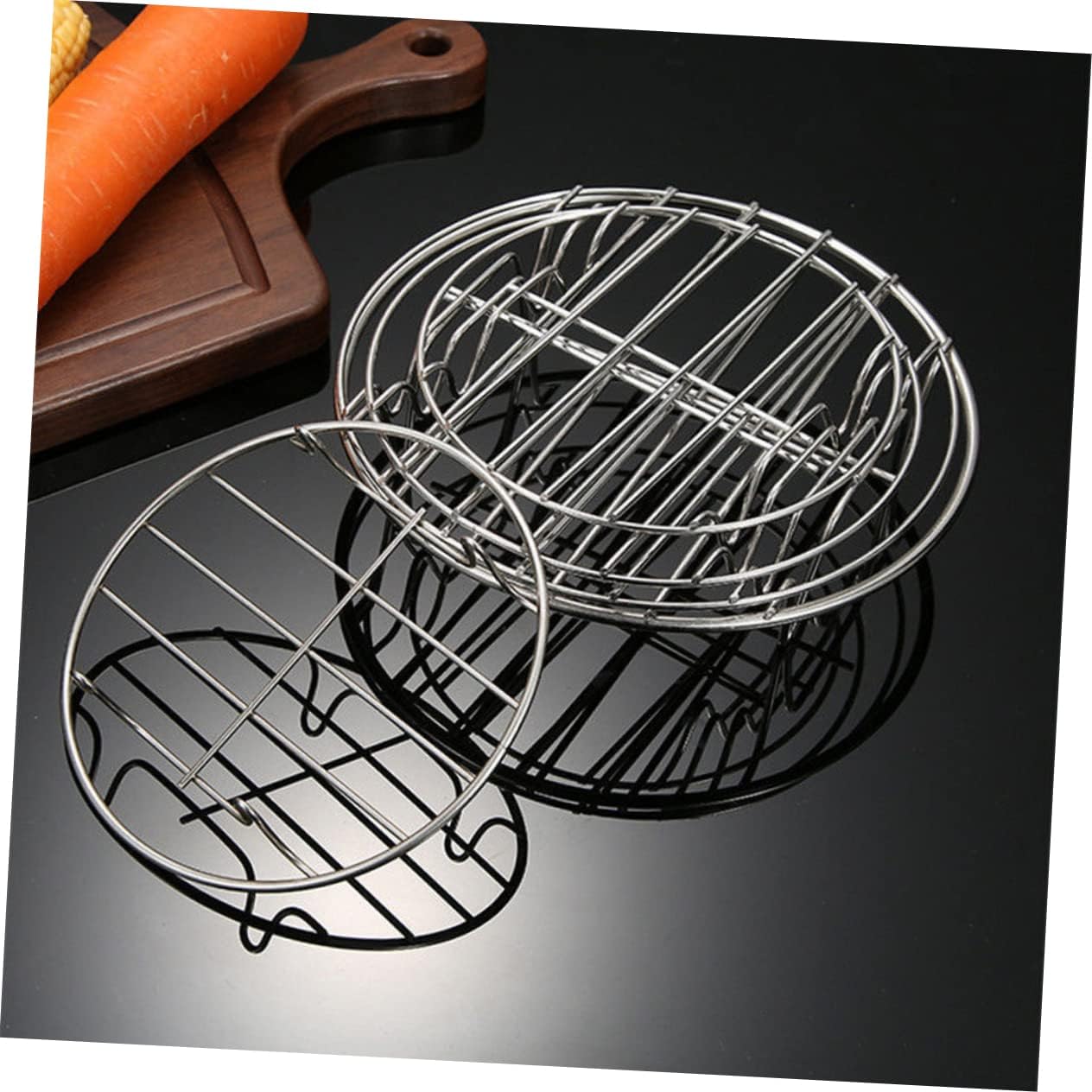 Package Include 1 x pizza pan 1 x cake pan 1 x steaming rack Characteristics -Material: Stainless steel air fryer accessories for kitchen -Color: Black pot accessories - Please don't rub with rough cloth or metal ball, that will avoid damaging the anti-stick coating kitchen tools. - Make crispy fried chicken, steak, pizza and fried vegetables. Just enjoy your time air fryer accessory. - These air fryer baking accessories allow you to fry, bake, grill or roast easily in the kitchen air fryer accessories. - Fine workmanship and creative appearance will its popularity and practicality round cake pans. - material and non-stick coating help easily to remove food. Features a nonstick coating layer to save you effort and time. air fryer pizza panGoods Descriptionbaking pan The air frying tools are suitable for air fryer use, can cook food .pot accessories This product is household kitchen utensil accessories for baking or cooking.round cake pans Made of and sturdy material, it is and retains heat well