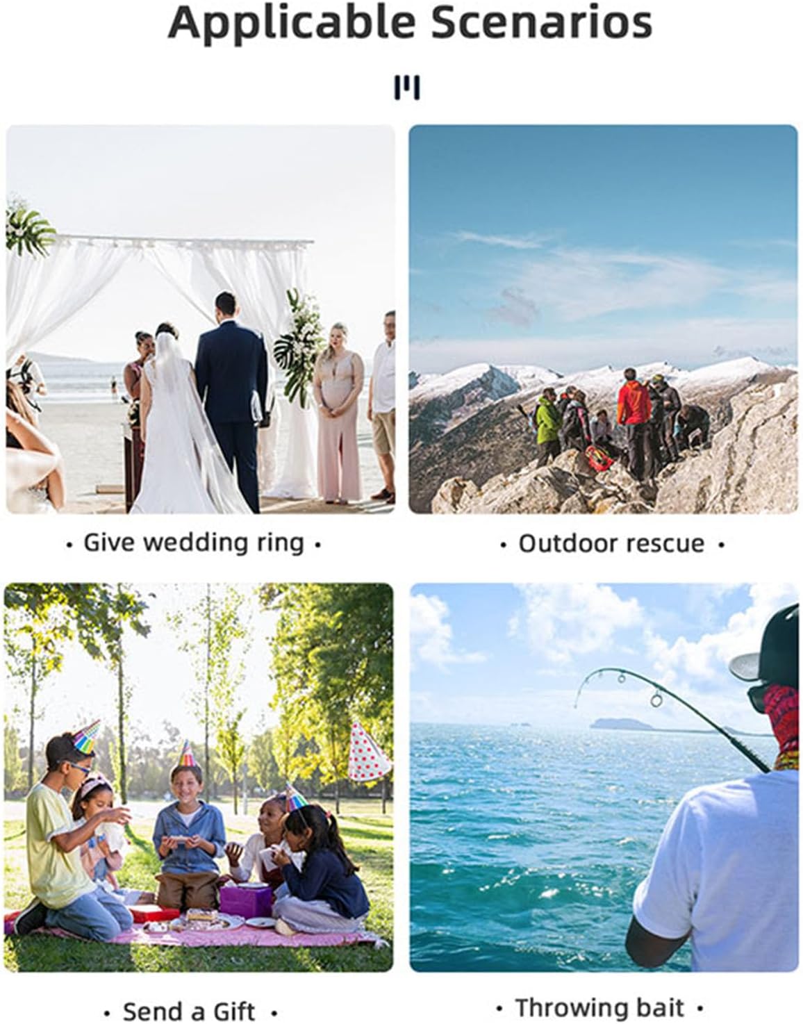 Specification: Material: ABS Color: Dark Grey Airdrop System Size: 8.8x9.6x2.7cm Front Landing Gear Size: 6.8x2.3x1.8cm Rear Landing Gear Size: 5x4.5x3cm Maximum Load Weight: 500g Built-in Battery Capacity: 150mAh Charging Interface: Micro-USB Standby Time: about 12 hours Charge Once can Open: about 300 times Self-charging Time: 1.5 hours Quantity: 1 Set Applicable Models: for Air 3 Package: 1x Airdrop System, 1x Landing Gear Set, 1x USB Charging Cable, 1x hanging Wire Hook Note: The "red light is always on" during charging, the "green light is always on" when fully charged, the parabola will flash a few red lights when it is opened for normal use, and then the "red light is always on"