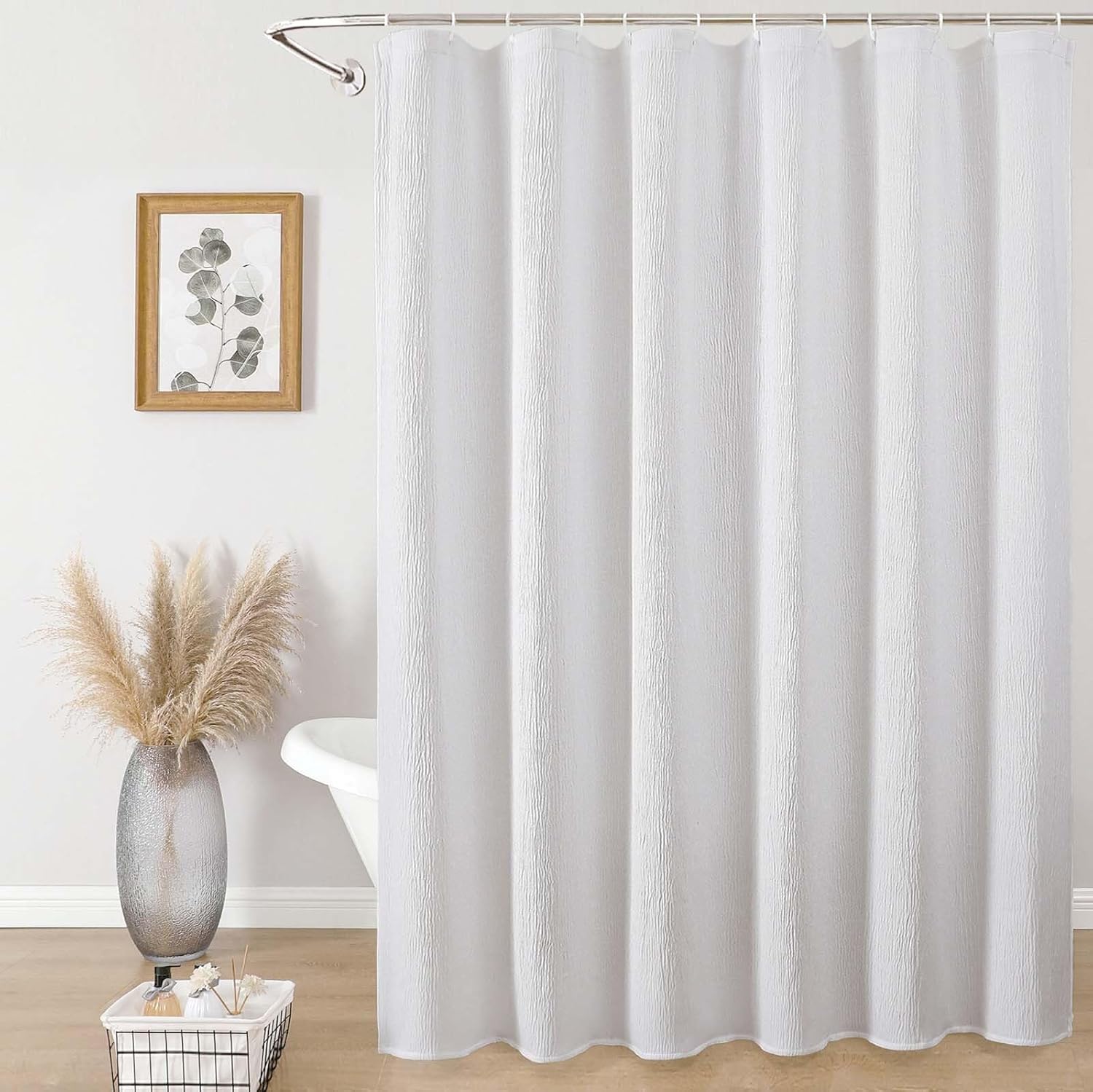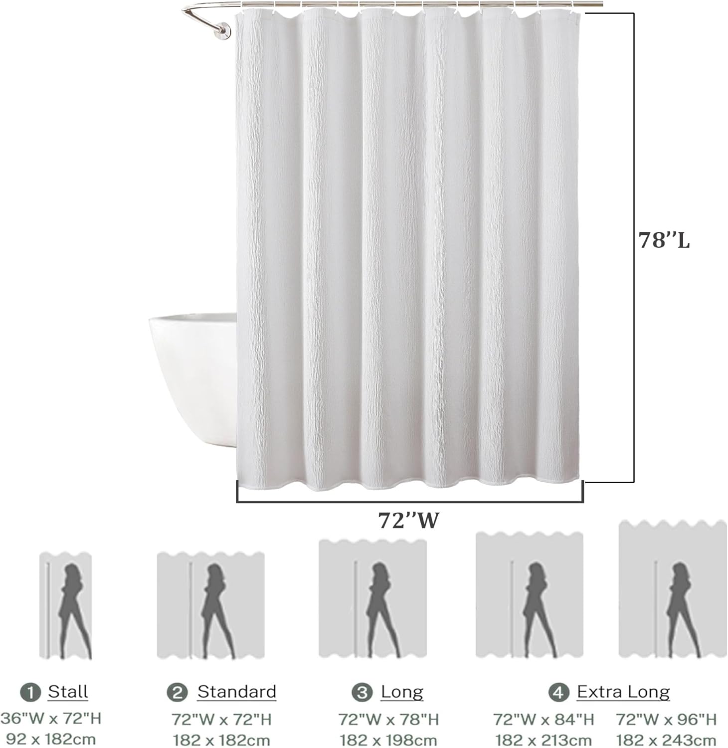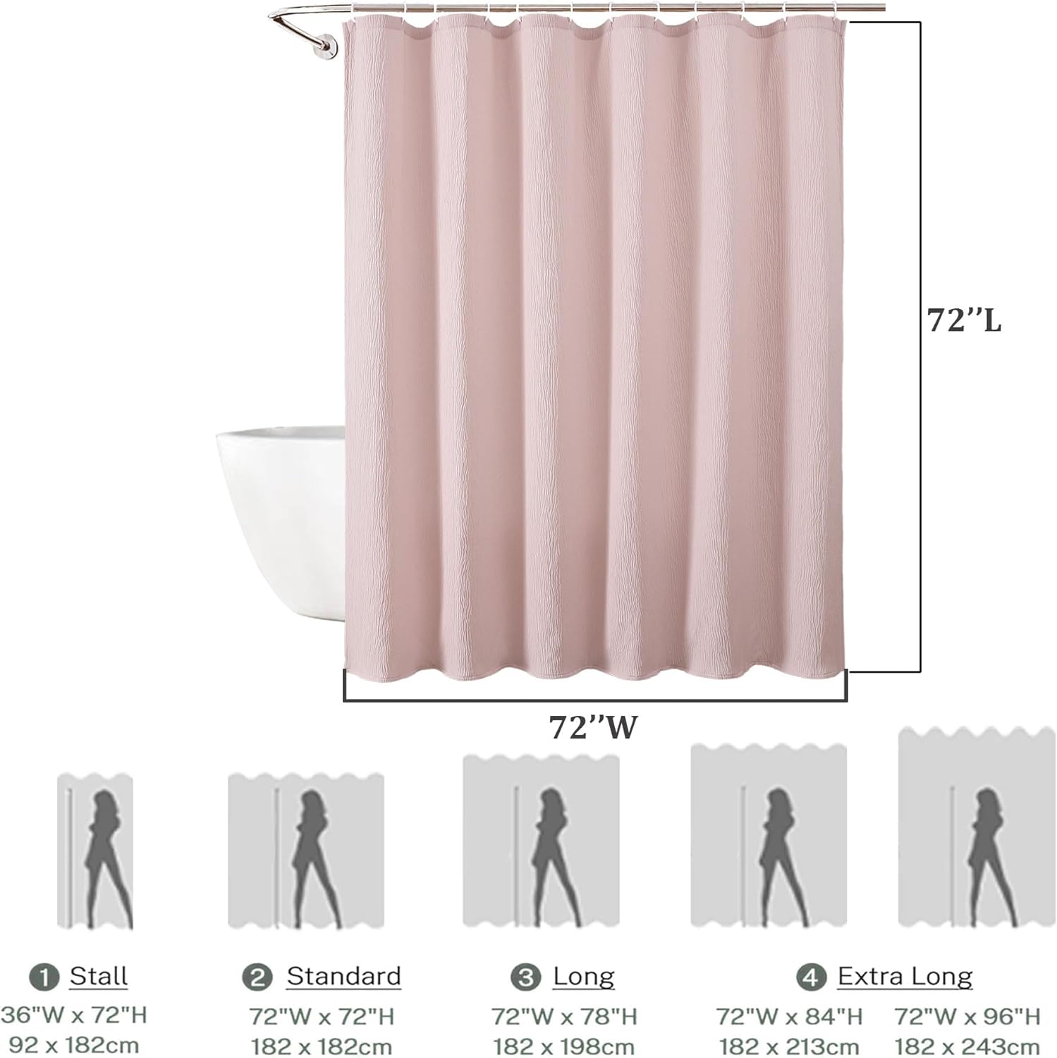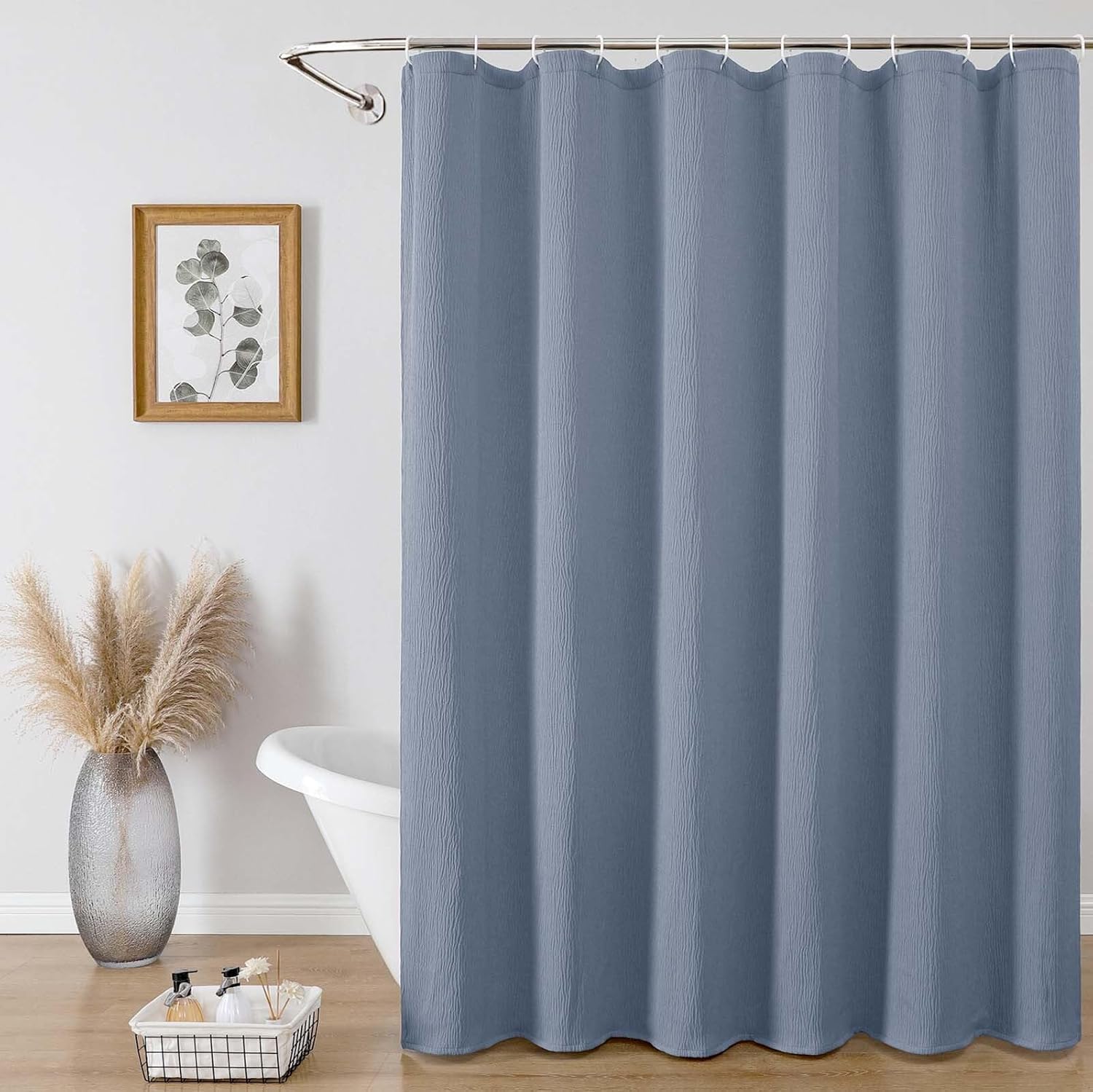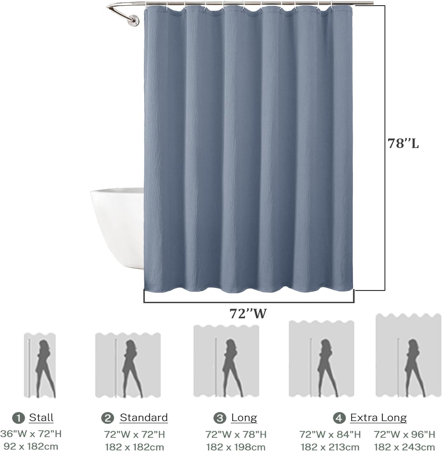 Aiyufeng Fabric Sky Blue Extra Long Shower Curtain for Bathroom, 3D Textured Shower Curtain 96 Inch Long Soft Cloth & Hotel Spa Quality, Large Hotel Bathroom Curtain Boho Style, 72x96 Inches