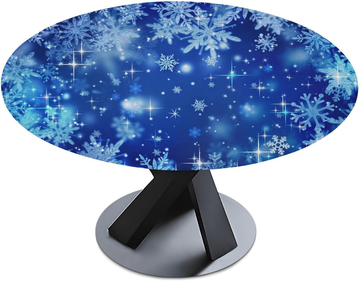 Round Tablecloth, Fitted Round Table Cloth with Elastic Edge Wipeable Table Protector for Indoor Outdoor Party Picnic Fit Table 40"-48"/48"-56" Expansion SizeSmall: 128cm/50inch, fits round tables 40"-48" diameter.Large: 165cm/65inch, fits round tables 48"-56" diameter. FeaturesThis fitted round tablecloths are made from high quality extra stretchy and sturdy spandex fabric (90% polyester and 10% spandex). Elastic edge and adjustable botton design is made to be a snug fit for round table, square table, oblong/oval table. The range will change according to the thickness of the table. Please measure the size before purchasing. Great Home DecorationComes in a wide assortment of designs to blend in with any décor and dress up an old table. Use this specially designed tablecloth will bring a lot of warmth to your home. It is a great Valentine's Day, St. Patrick's Day, Easter, Independence Day, Halloween, Thanksgiving, Christmas gift, or as a housewarming gift. The unique pattern design will be praised by many people. OccasionsThis table cloth round cover is suitable for dining table, buffet dinners, picnic, banquet, tea table, party, birthday, cafes, BBQ, camping, barbecue, indoor, outdoor and everyday use. Also can effectively protect your outdoor table from direct sunlight. After-sales ServiceIf you like our tablecloth. You can buy with confidence. If you are not satisfied with our products, we will provide a 100% refund.
