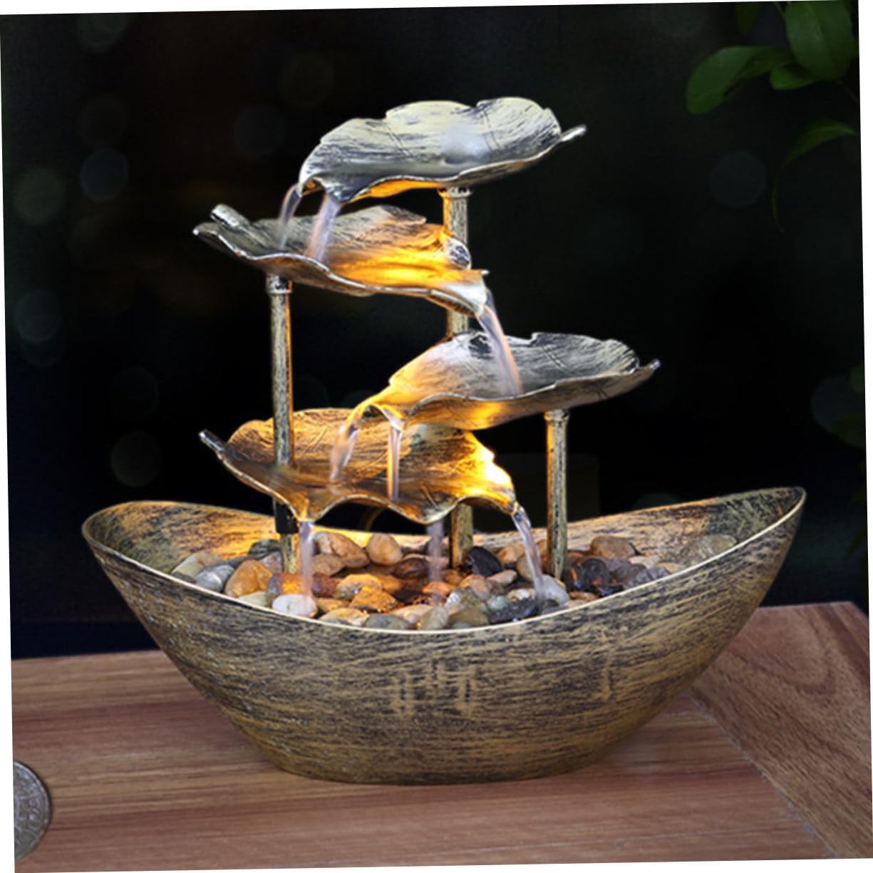 Package List 1 x tabletop adornment with USB plug Characteristics -Material:Plastic Waterfall Ornament -motor power: 120 L/ Running Ornament -Color:Golden Fountain Adornment -Size:28.00X25.00X15.00cm/11.00X9.82X5.89in Waterfall Decoration -Note: The motor need to be submerged by water Running Water Adornment -Product power supply: DC 5 (not included) Desktop Fountain Decor -The water drops slowly rotate with the , meaning pouring in from all sides Tabletop Fountain. -The pool can be raised hydroponic green plants Office Ornament. -After high temperature firing, the color is natural and , and fine texture Tabletop Fountain Adornment. -Ideal decoration for living room, TV cabinet, wine cabinet, desktop, bar, study, and so on Household Furnishing. -There are LED lights at the bottom of the leaves Home Decoration.Goods InformationHousehold Furnishing embellishment, running for better decoration.Fountain Adornment Are you looking for a professional, yet desktop decoration? Are you in search of a sturdy, trustworthy ornament for your office? , ! Our professional desktop adornment must meet your need
