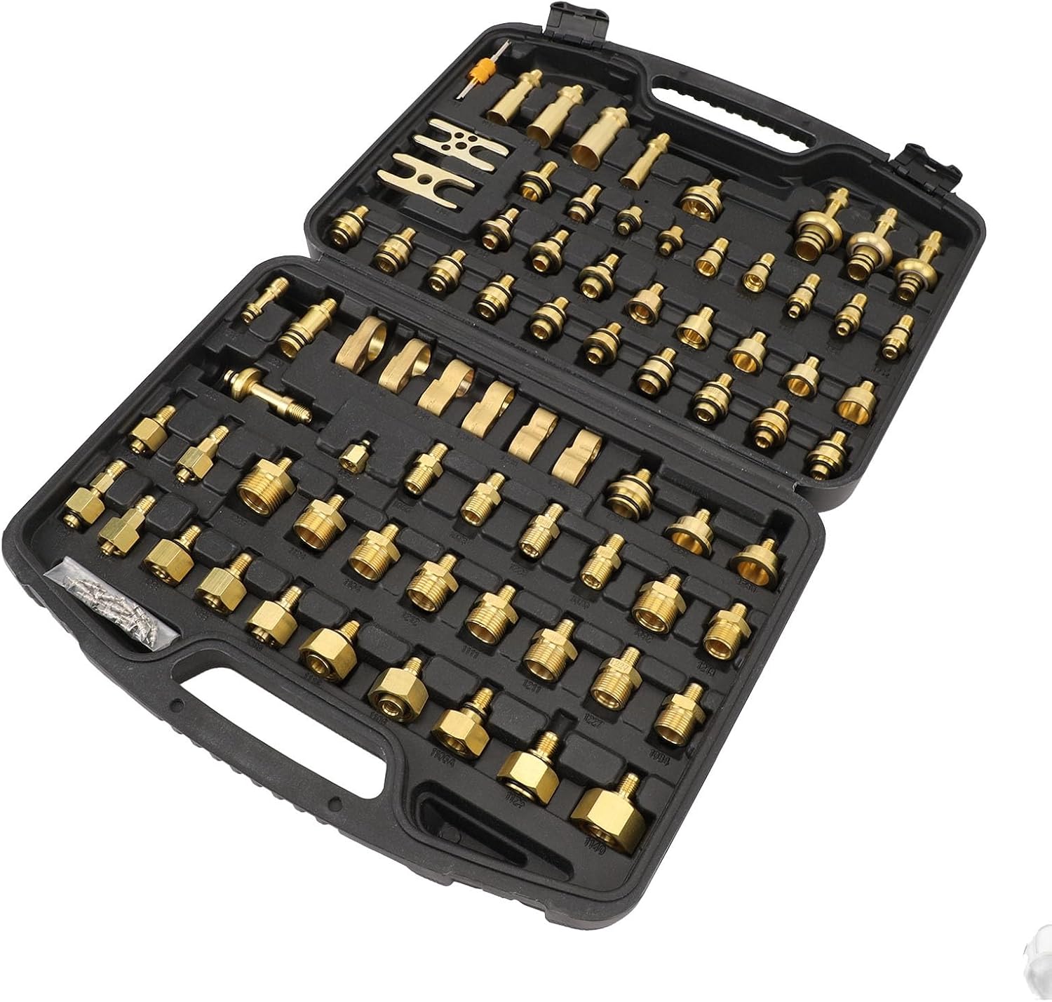 Item Type: Automotive Air Conditioning Leak Test Kit Material: Brass Fitment: Fit for Car Auto AC 1 x Air Conditioning Leak Test Kit (77pcs) 10 x Screws 1 x Instruction Manual 1 x Blow Box/Cover