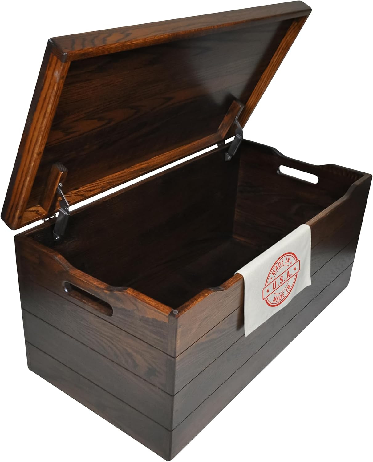 Hope Woodworking’s decorative storage chest with lid offers a timeless solution for organizing your home. Designed with both functionality and vintage appeal in mind, the wood chest with handle provides ample space for storing blankets, linens, clothing, and keepsakes. Available in four sizes—24", 30", 36", and 42"—it easily adapts to different spaces, whether placed at the foot of a bed, in a living room, or as a decorative accent in an entryway. Built from solid, durable wood, the wooden trunk storage box arrives fully assembled and ready for use. Side cut-out handles ensure easy lifting and moving, while the front cut-out design allows for smooth, convenient access. Thoughtfully engineered anti-slam hinges prevent the lid from closing abruptly—protecting fingers and preserving the structure of the chest over time. Versatile in function, it serves well as a blanket storage chest, chest for clothes, storage bench for entryway, or simply as a decorative accent in living spaces. Its clean lines and timeless design complement a variety of interiors, from rustic farmhouse decor to modern minimalism. Each wood trunk storage chest highlights the natural beauty of wood grain, showcasing the unique character of its handcrafted finish. Crafted in the heart of Ohio’s Amish country, the rustic chest reflects generations of craftsmanship. With its enduring build and refined details, it’s a practical and beautiful choice for anyone who values thoughtful design and long-lasting quality.