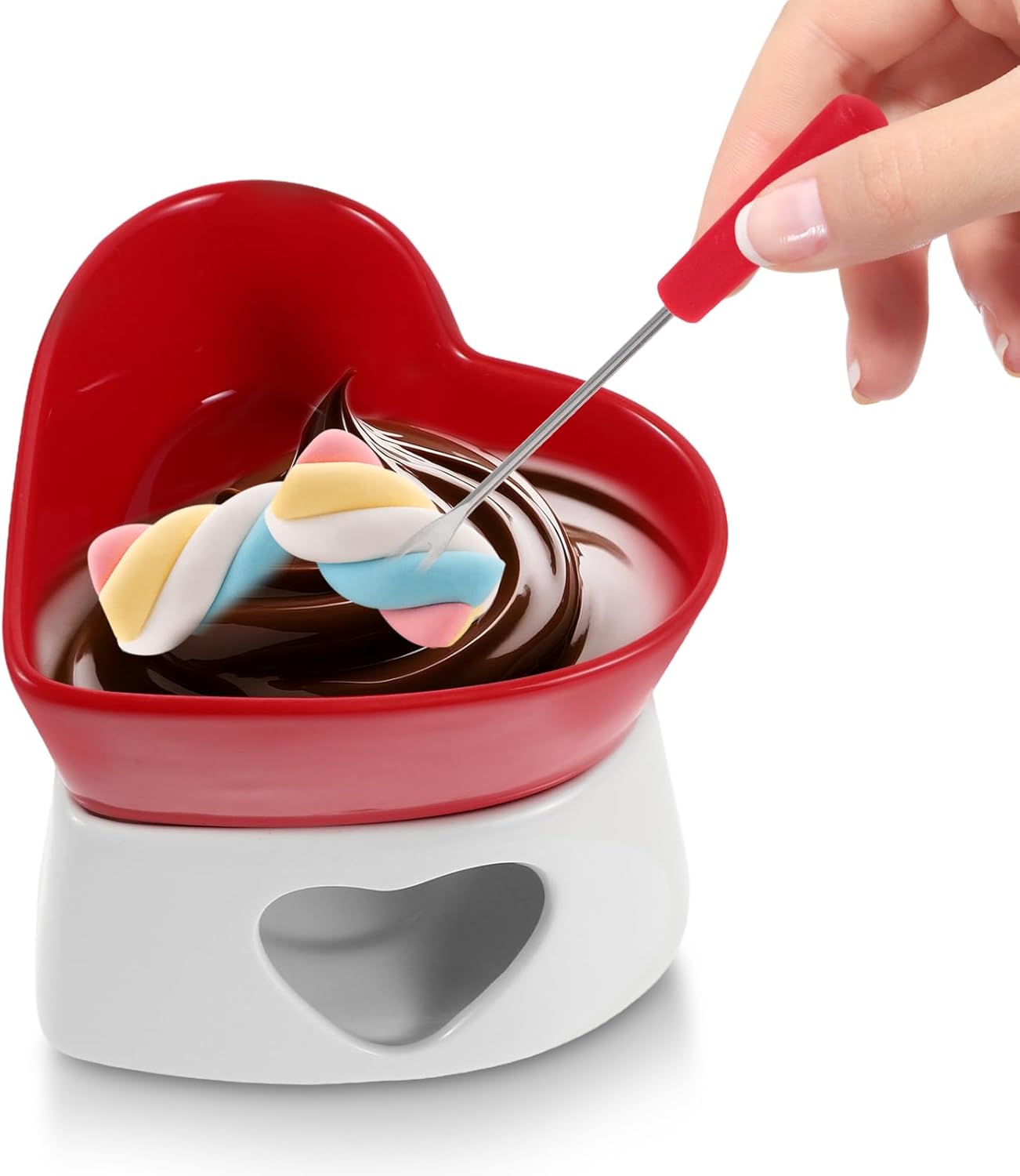Package List 1 x Chocolate Fondue Pot 4 x Forks Characteristics -Size:13.20X12.50X11.50cm/5.19X4.91X4.52in ceramic fondue pot -Effortless cleaning: designed with easy-to-clean ceramic material, this fondue pot simplifies postmeal cleanup, letting you enjoy your time without extra effort chocolate melting cup for dipping -Material:Ceramic ceramic fondue warmer -Culinary versatility: melt chocolate, cheese, or butter effortlessly, making it a must-have tool for desserts, appetizers, and more melting chocolate cup -Quick and uniform heating: provides fast and even heat distribution, ensuring your ingredients are melted to perfection every time chocolate cheese hot pot -Color:Multi ceramic chocolate fondue cup -Modern design: elevate your dining decor with a ceramic fondue pot that combines sleek design with functional excellence for a refined dining experience ceramic melting pot for chocolate -Good for intimate gatherings: create a warm and inviting atmosphere for family meals, date , or small parties with this charming fondue pot fondue pot ceramicGoods Descriptiondessert hot pot Its compact and stylish design makes it good for any setting, whether you're hosting a party or enjoying a quiet night .hot chocolate serving pot in the good fondue experience with this ceramic melting pot, ideal for both chocolate and cheese.ceramic melting pot for chocolate The fondue pot's efficient heating system your fondue stays at the good temperature, providing a delightful and satisfying treat