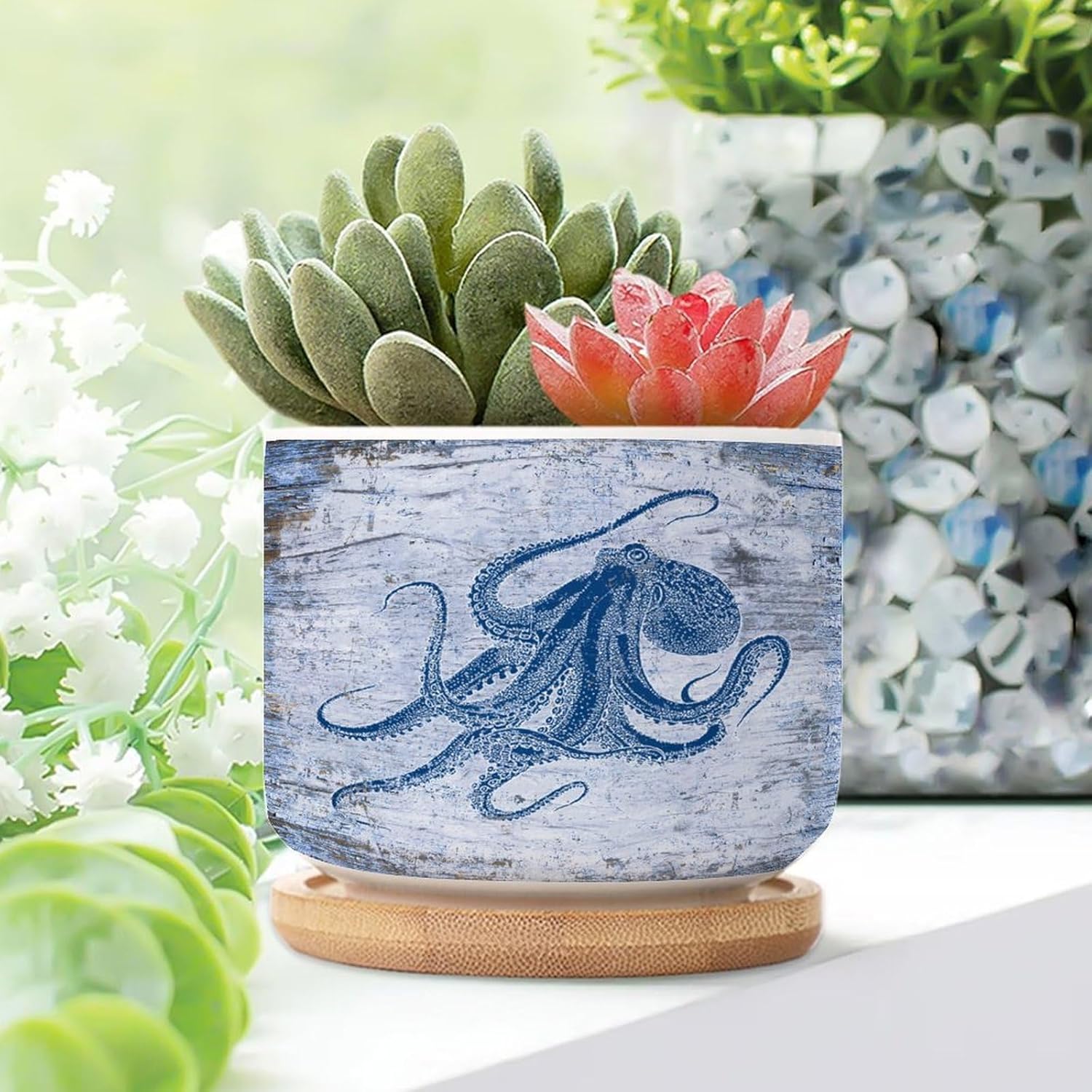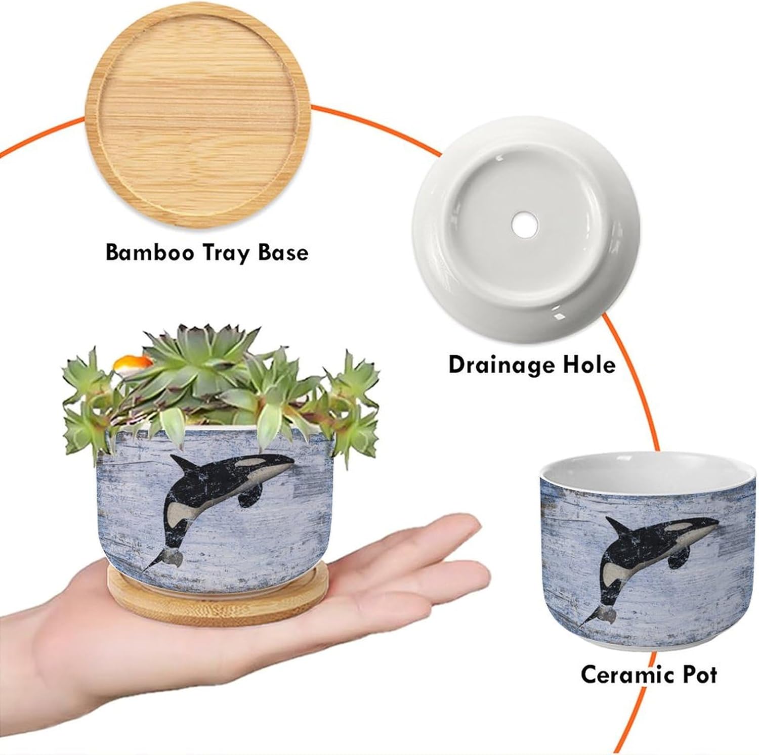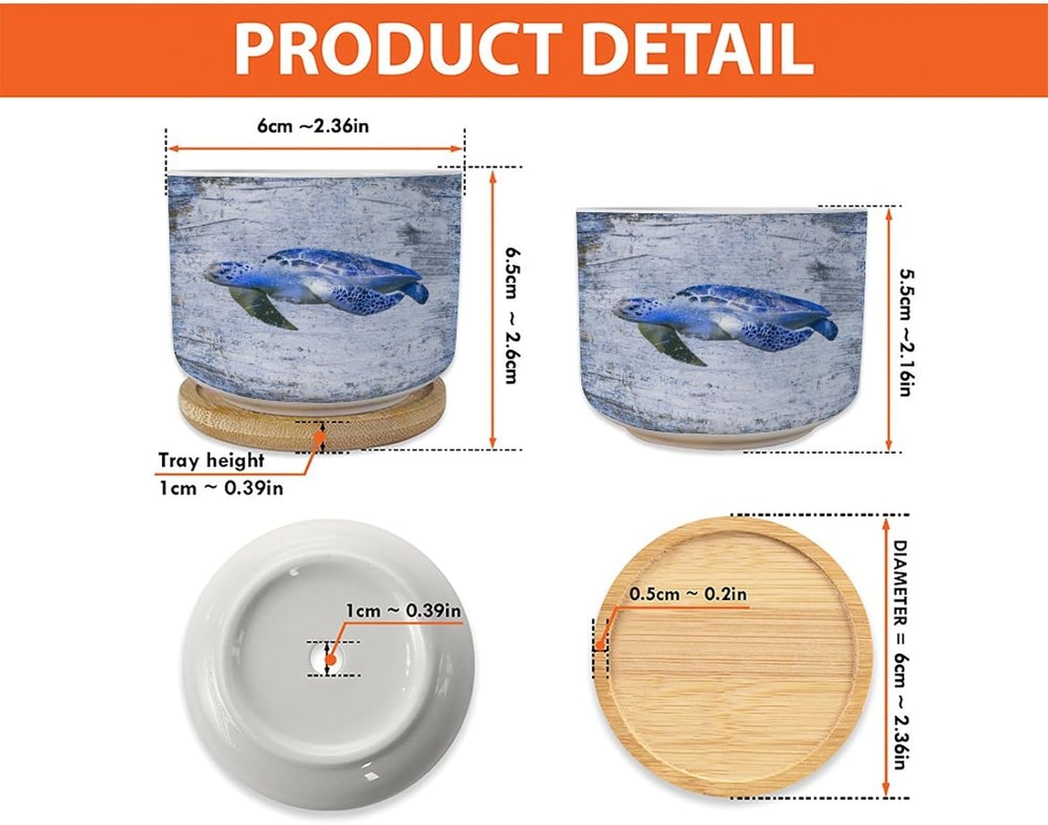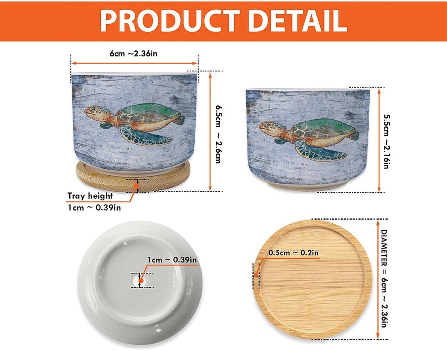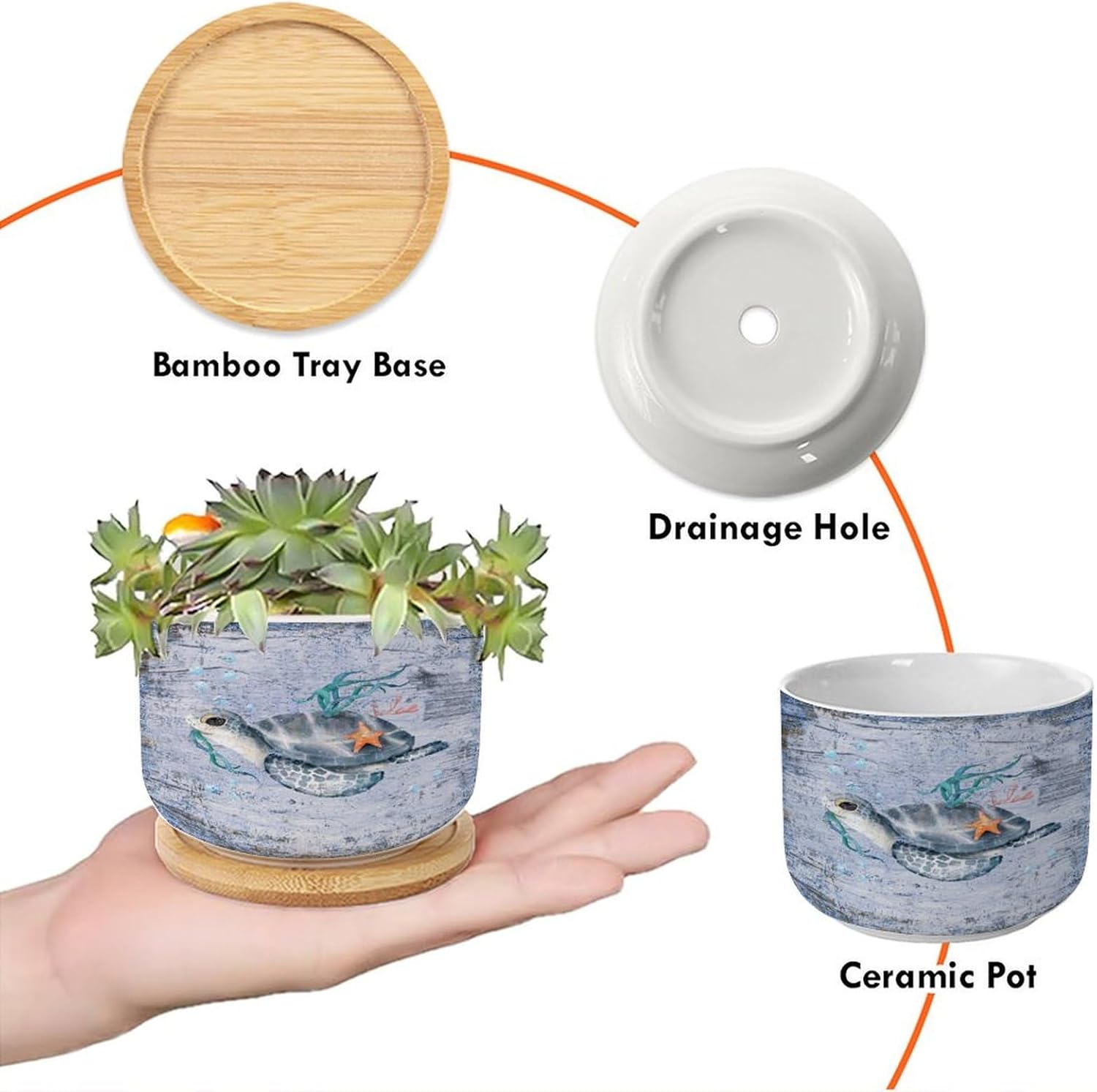Size: 6cm×5.5cm (2.4×2.2inch) Material: Ceramic flower pots. Double Sided Printed. Product Contains: Ceramic planter + bamboo trays Suitable: Succulents, cactus, cacti, other small flowers and green plants. Best Mother's Day Gift for mom. Perfect gift for women. Suitable for both indoor and outdoor use.