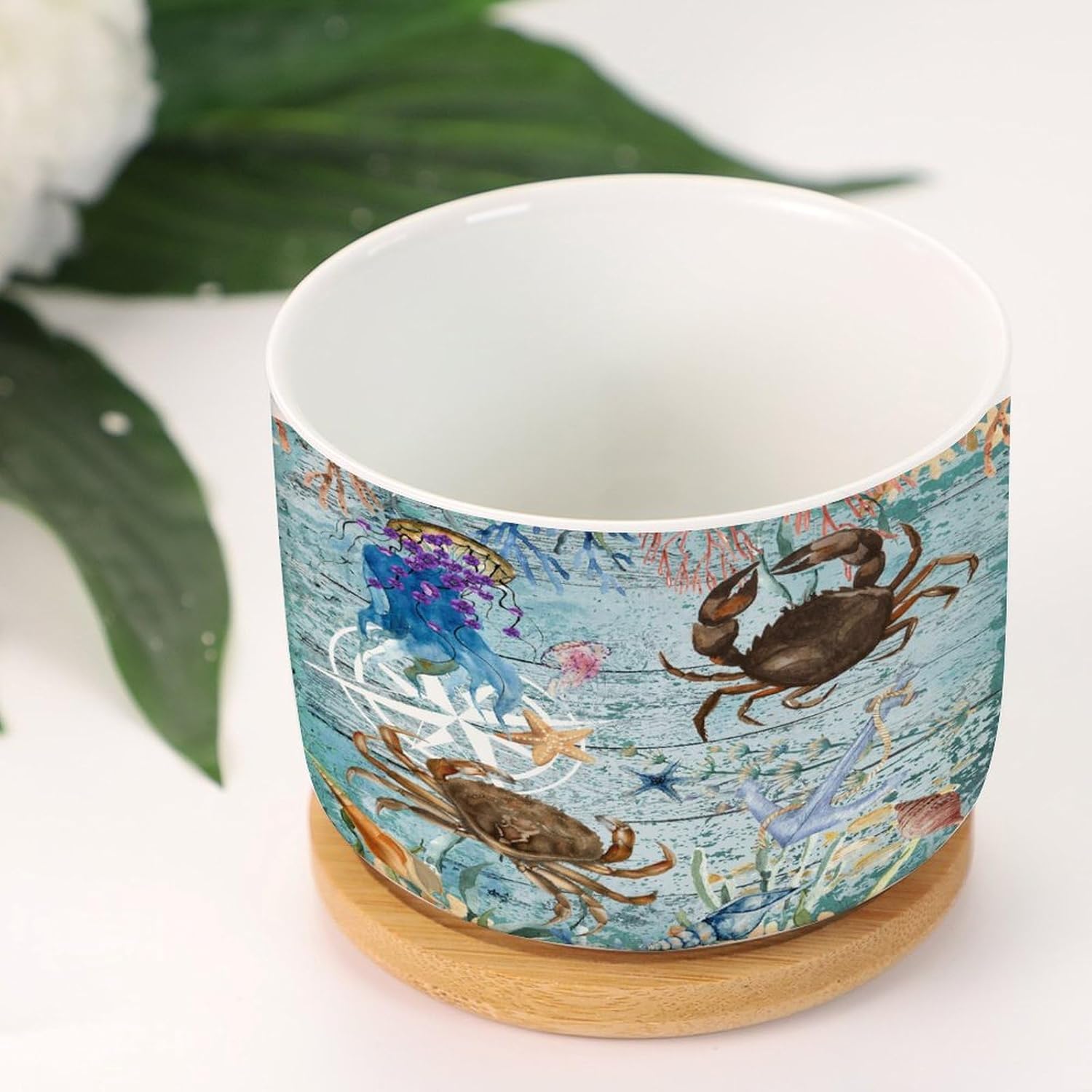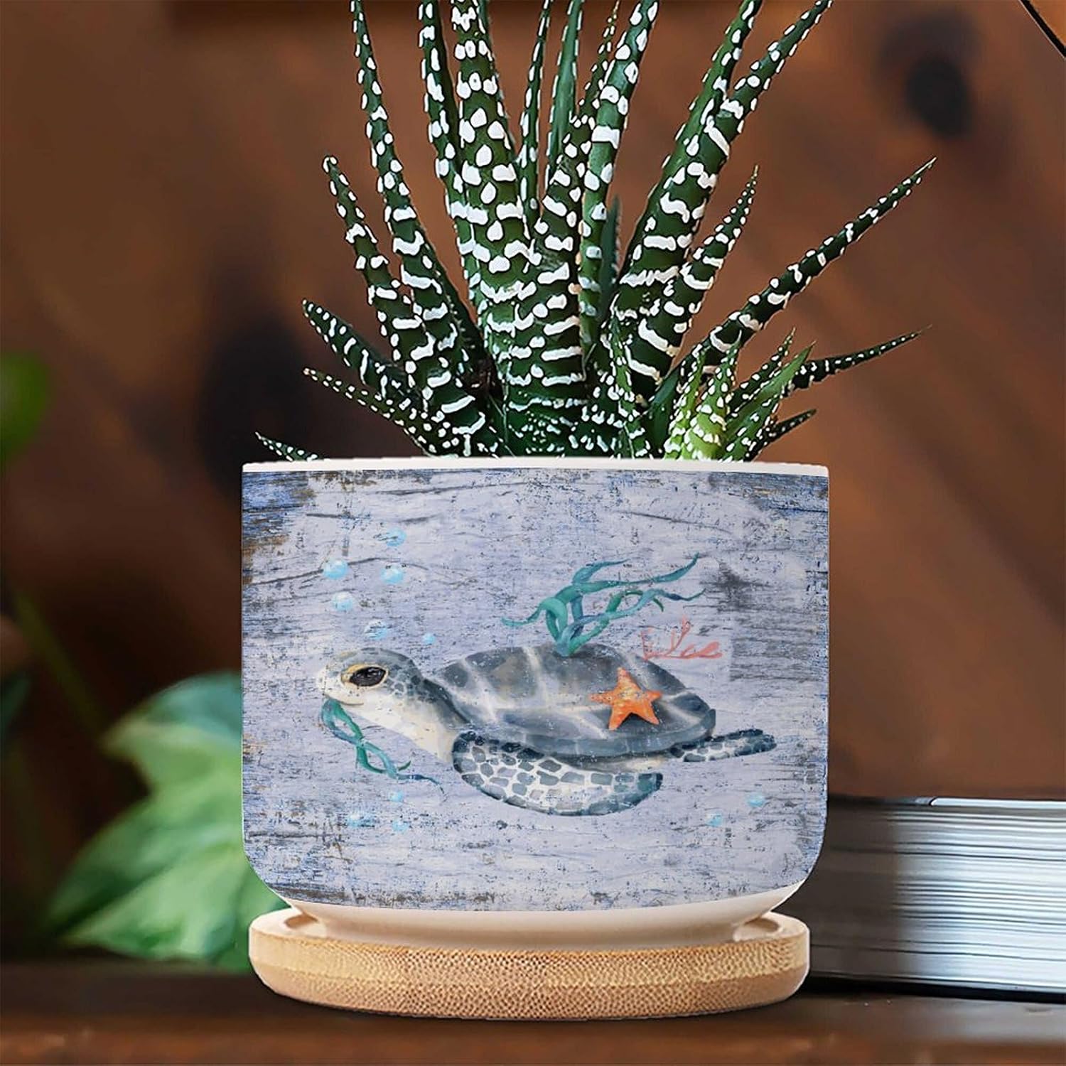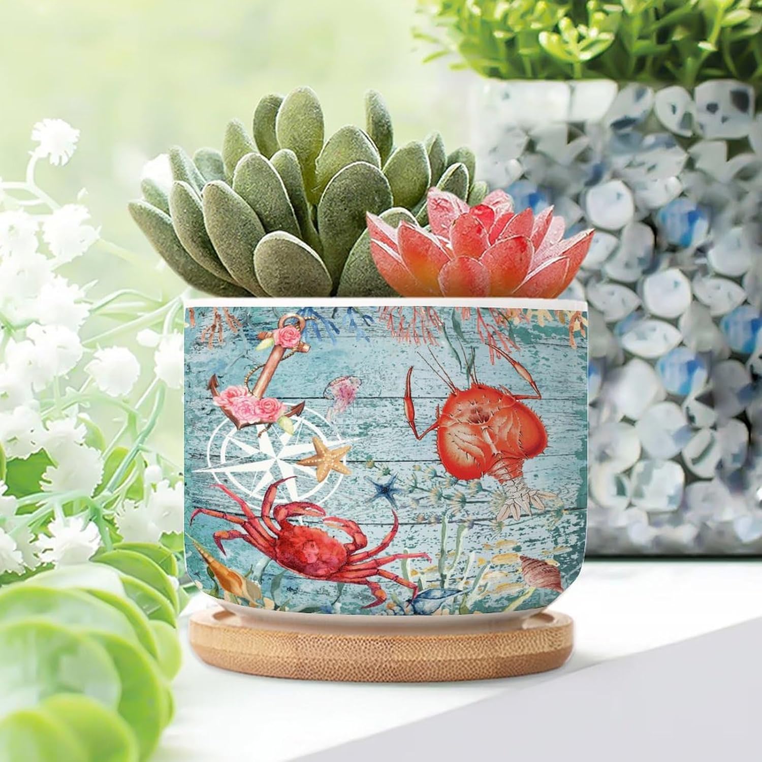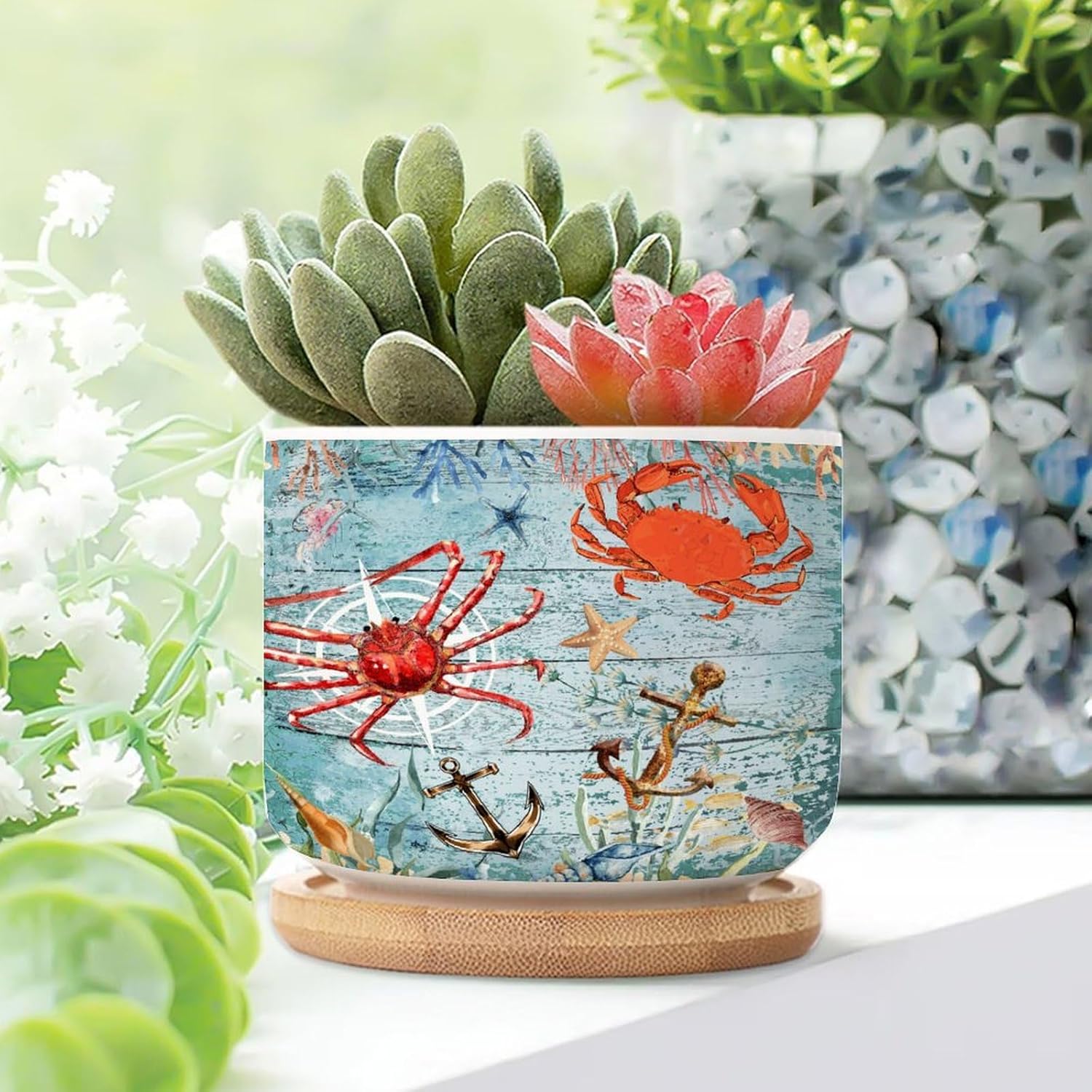 Size: 6cm×5.5cm (2.4×2.2inch) Material: Ceramic flower pots. Double Sided Printed. Product Contains: Ceramic planter + bamboo trays Suitable: Succulents, cactus, cacti, other small flowers and green plants. Best Mother's Day Gift for mom. Perfect gift for women. Suitable for both indoor and outdoor use.