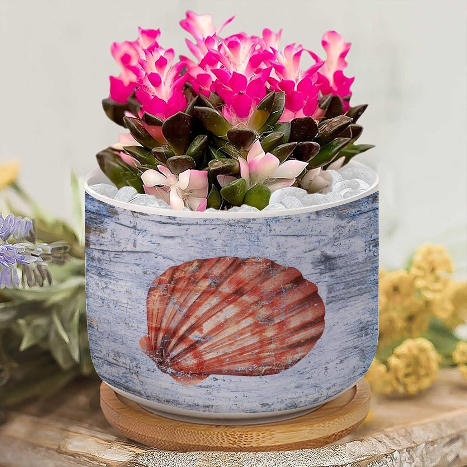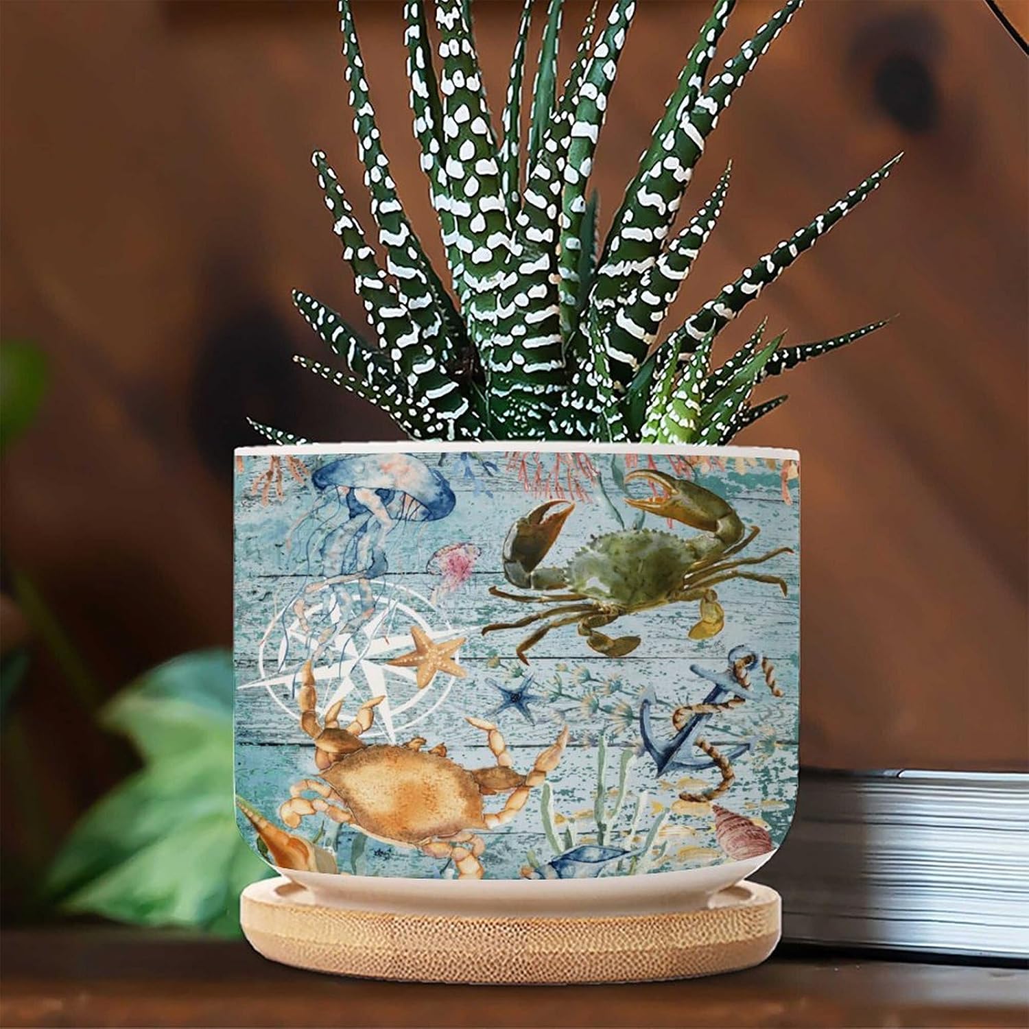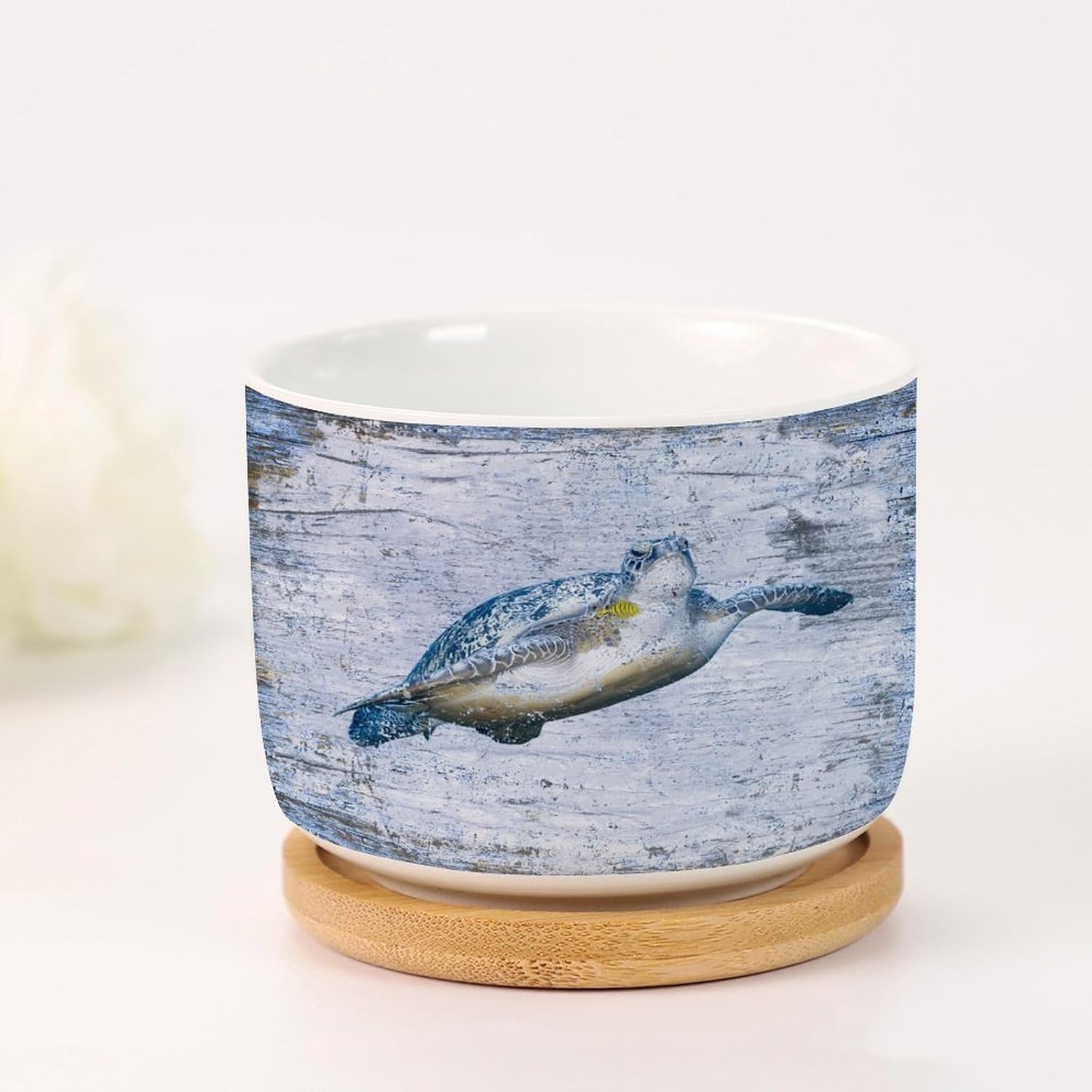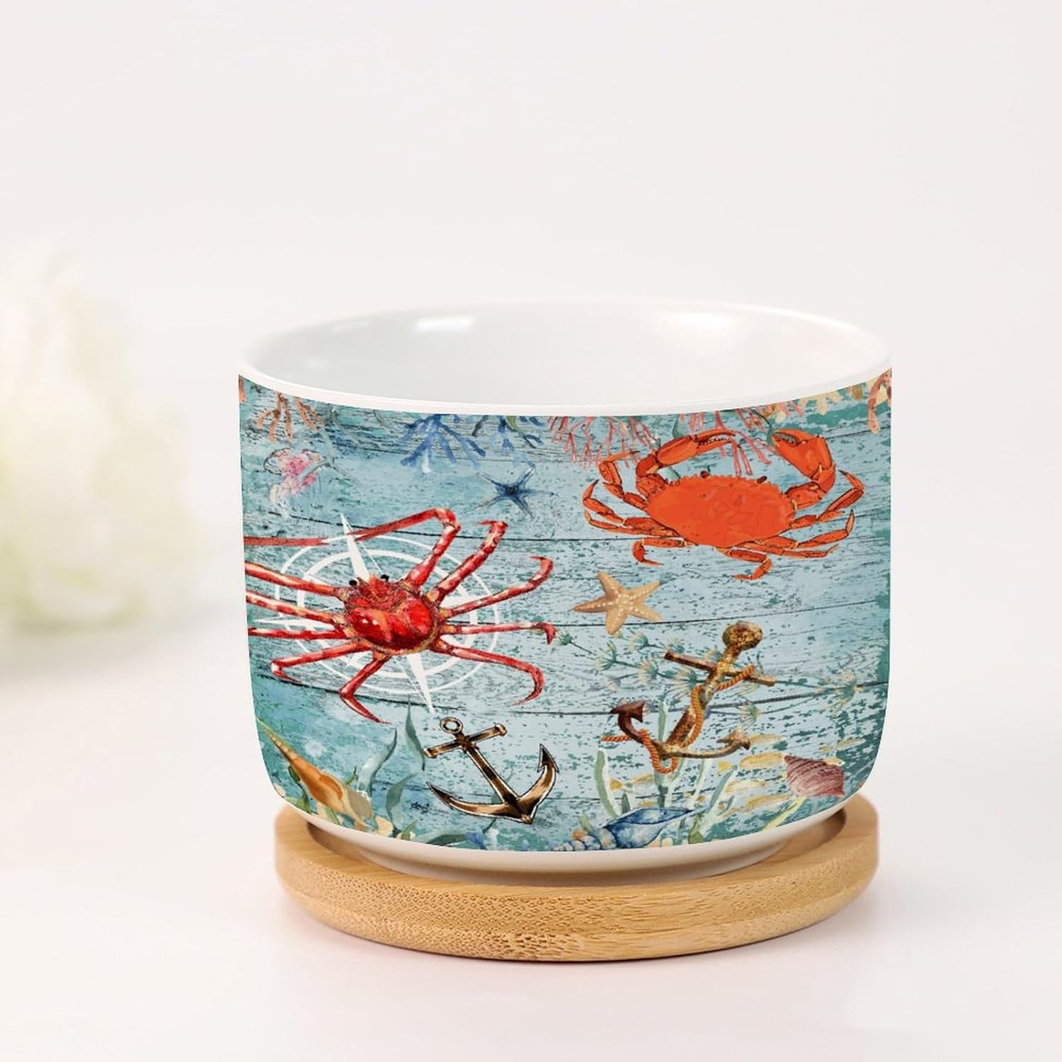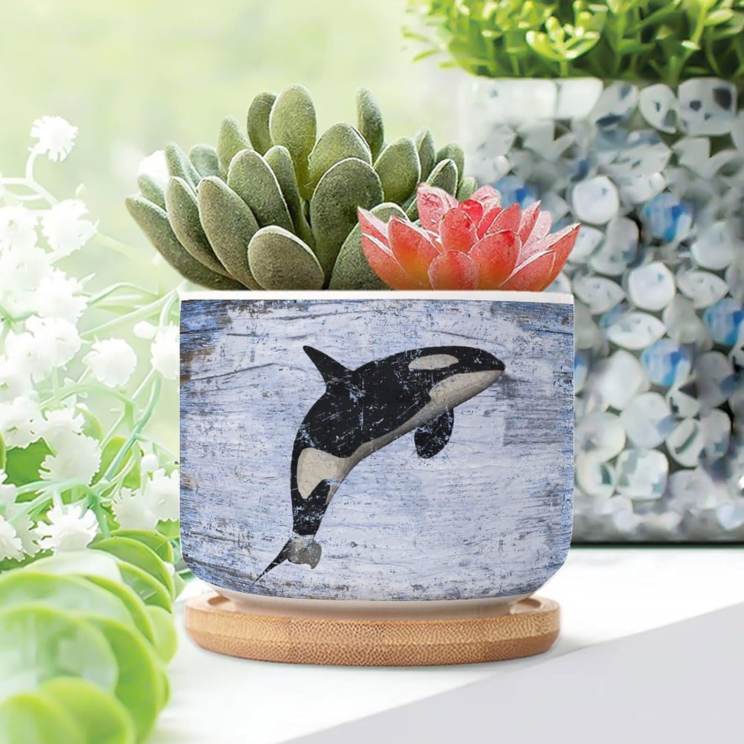 Size: 6cm×5.5cm (2.4×2.2inch) Material: Ceramic flower pots. Double Sided Printed. Product Contains: Ceramic planter + bamboo trays Suitable: Succulents, cactus, cacti, other small flowers and green plants. Best Mother's Day Gift for mom. Perfect gift for women. Suitable for both indoor and outdoor use.