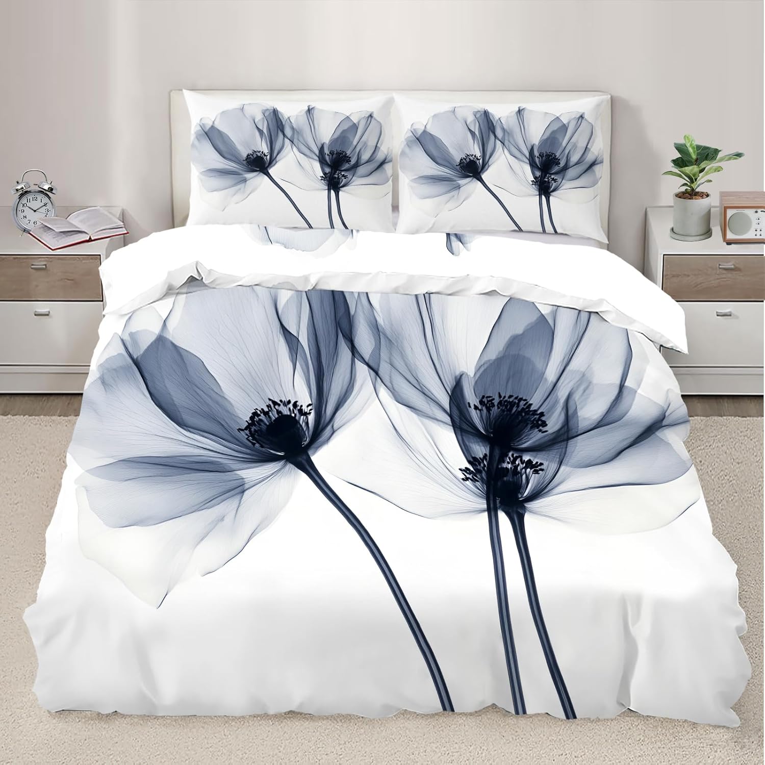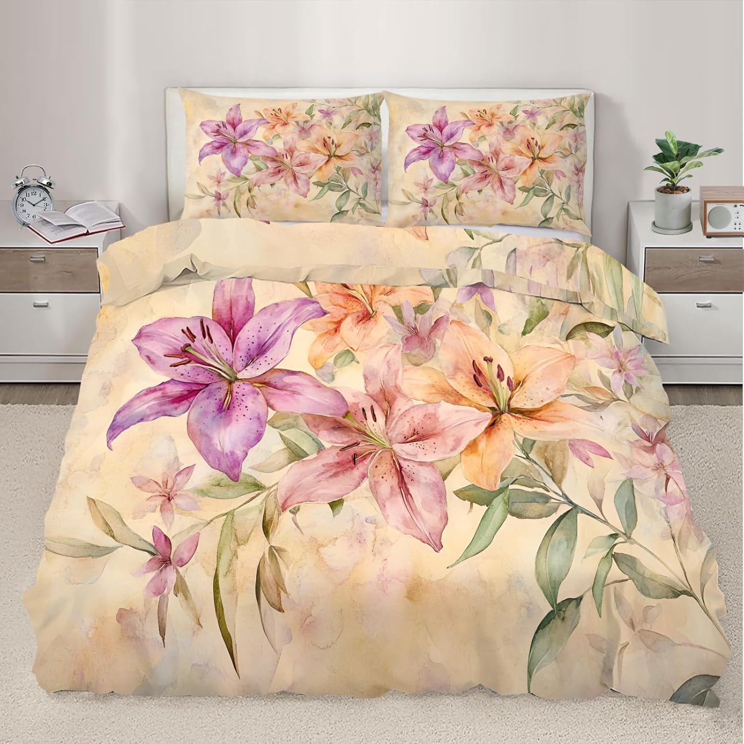 RUHEYIA are a professional manufacturer of digital home textile, dedicated to producing unique, soft, comfortable, and safe bedding comforter create a serene sleeping experience.Durable Lightweight FabricMade From Microfiber Fabric That Soft Duvet Cover Offers Long - Lasting Strength,A Noticeably Soft Hand Feel. To create a soft, elegant and cozy sleep environment.Inside Corner TiesInside corner ties help to secure the four corners of the duvet to keep it firm, not easy to shift, making your sleep night more comfortable.Personalize Your BedroomBeautiful Design and Colorful Print,Makes Your Bedroom Unique and Brings You a Wonderful Dream. Bring more joy and fun to your life.Unique DesignsWe use the latest 3D printing technology to create truly exquisite designs for our comforters. Focusing on every stitch and thread.You are guaranteed to find a unique bedding set! Win Your Love and Trust with Our Quality.Versatile & PracticalThese duvet cover sets are versatile and suitable for various settings. Beyond using them in your home's bedrooms, you can also utilize them in dorm rooms, guest accommodations, hotels, vacation properties, resorts, farmhouses, and more. Whether you prefer a sophisticated or whimsical look, you'll discover the perfect design to match your specific setting and theme. Additionally, these duvet sets are designed to cater to every season. Just insert them into appropriately weighted comforters!Easy CareEasy to clean.No Dog's or Cat's hairs pets' fur left. Machine wash in cold. Tumble dry low.Soft breathable and durable lightweight.Duvet cover set size:King size:Duvet cover: 104 X 90 in*1Pillowcases: 20 X 36 in*2Washing InstructionsMachine Wash Separately In Cold Water,Hang Dry,Do Not Bleach.