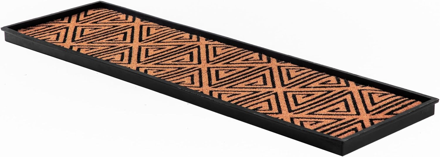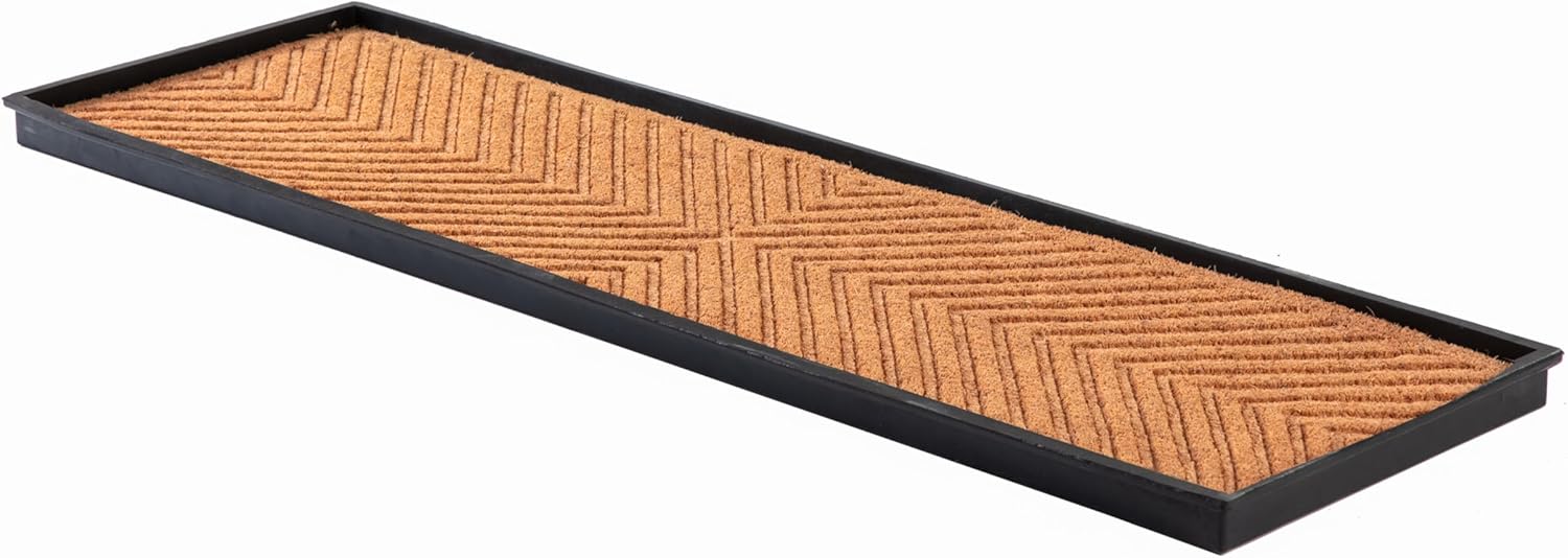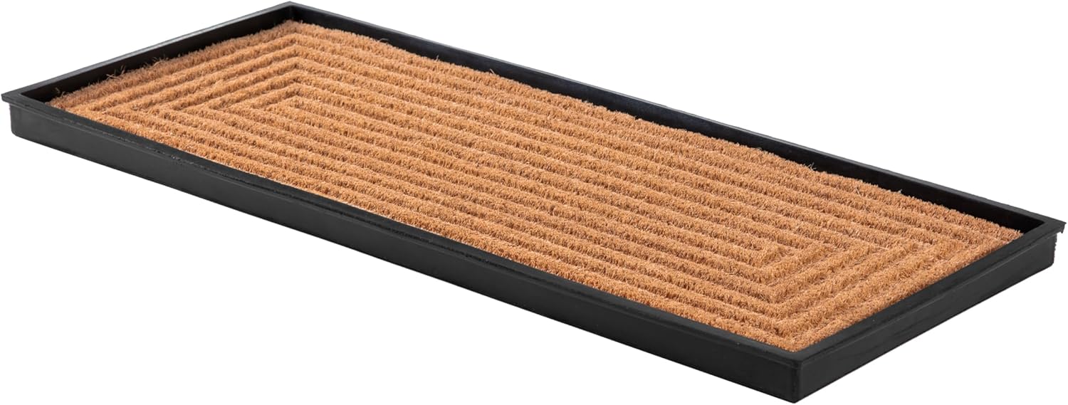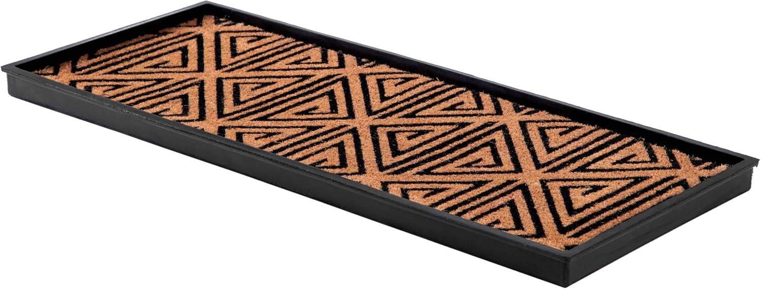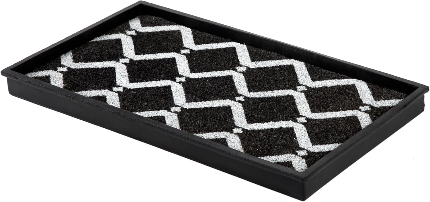 Transform your entryway with our durable and eco-friendly rubber boot trays with woven coir inserts. Made from recycled rubber, these shoe organizers are designed for easy maintenance and long-lasting use. The classic scroll design adds a touch of elegance to your space, while the removable coir insert comes in a variety of stylish patterns. Keep your entryway clean and organized with the raised edges that contain spills. Enjoy the convenience of easy cleaning-simply shake, hose, and air dry.