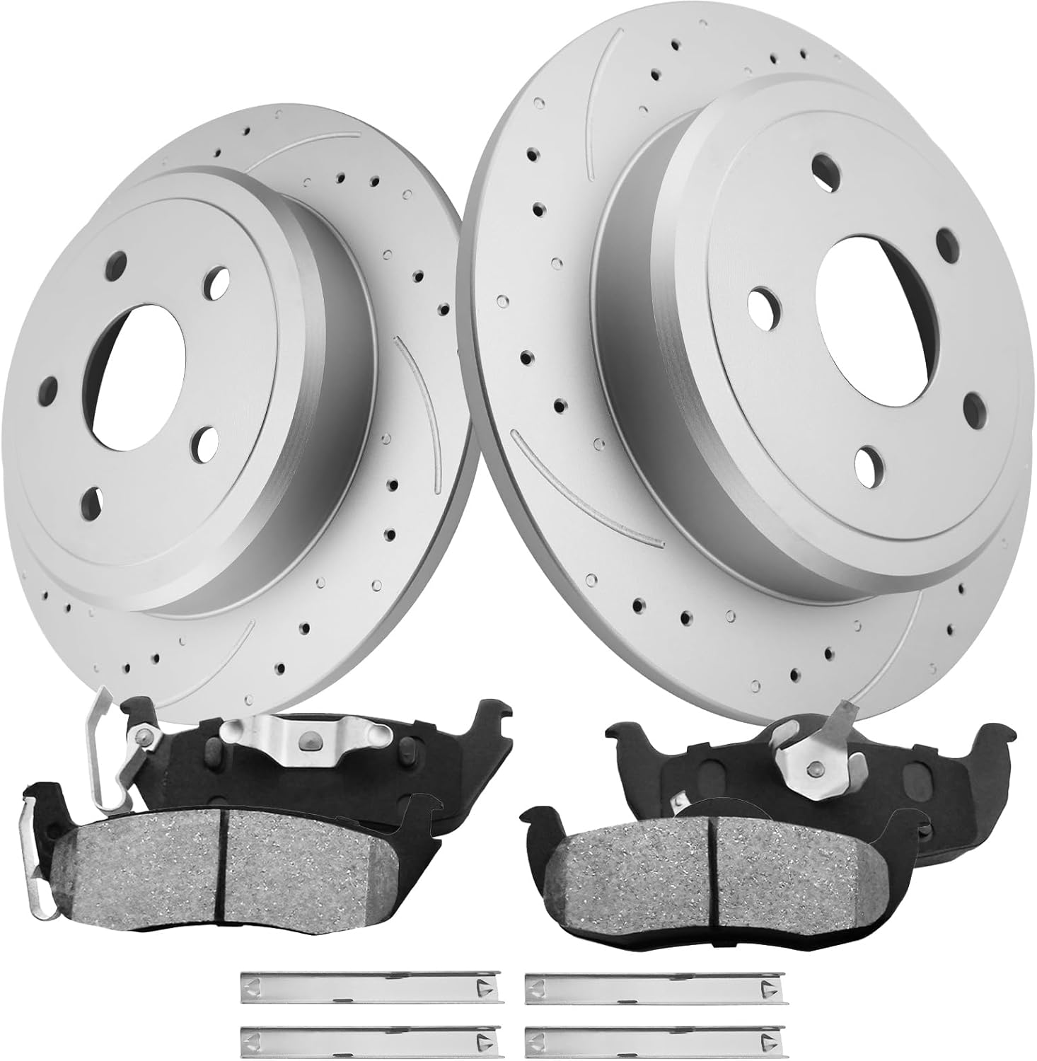| Included Components | 2 x front drilled and slotted brake rotors + 4 x front ceramic brake pads |