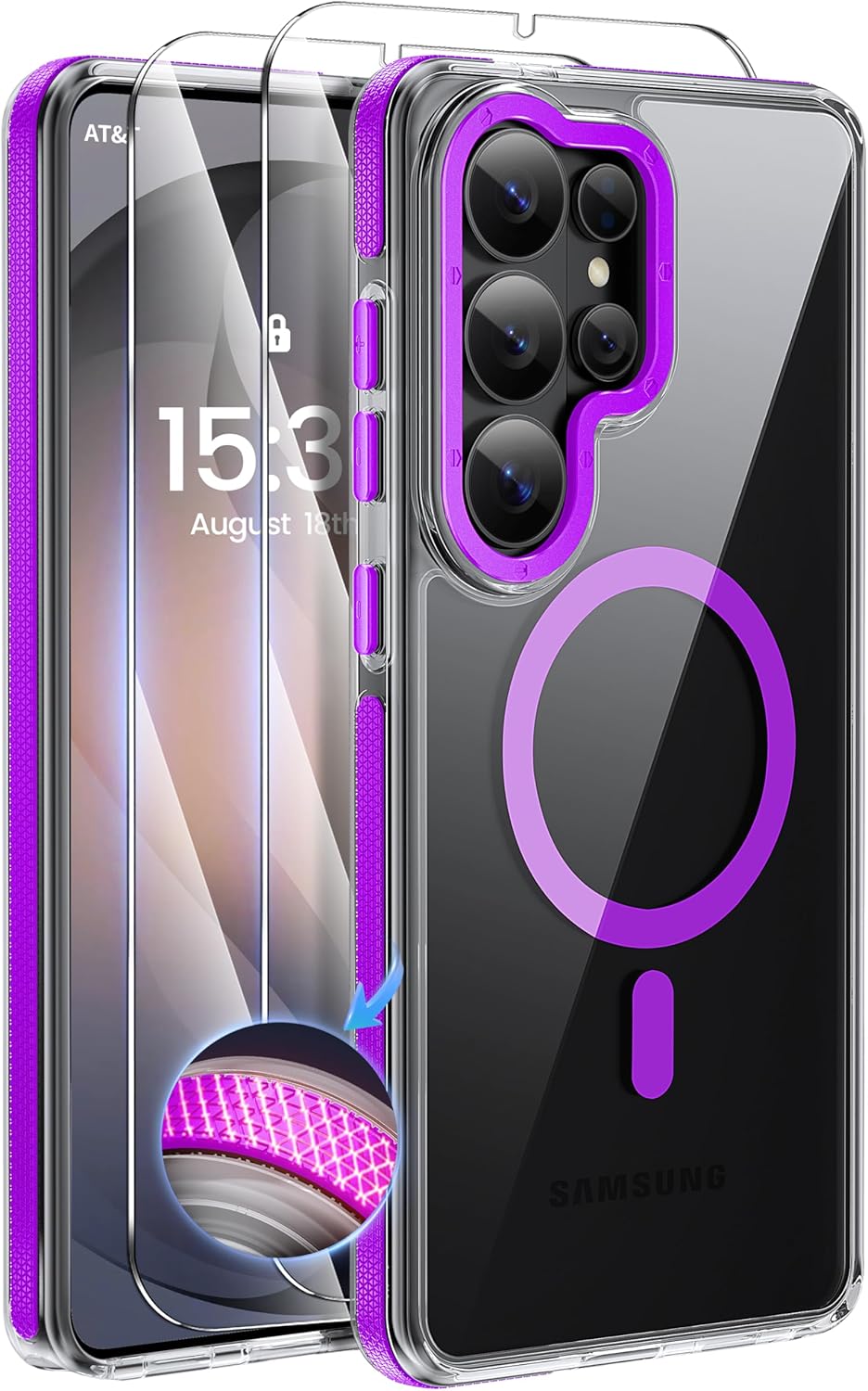 Designed for Samsung Galaxy S26 Ultra, this complete protection kit includes a reinforced shock bar case and 2 tempered glass screen protectors. Engineered for the size and weight of Ultra models, it delivers enhanced impact absorption while maintaining a slim, clean profile. Raised edges protect the screen and camera, while the translucent matte back offers a premium look and secure grip. One purchase, full protection — built for users who want it done right the first time.