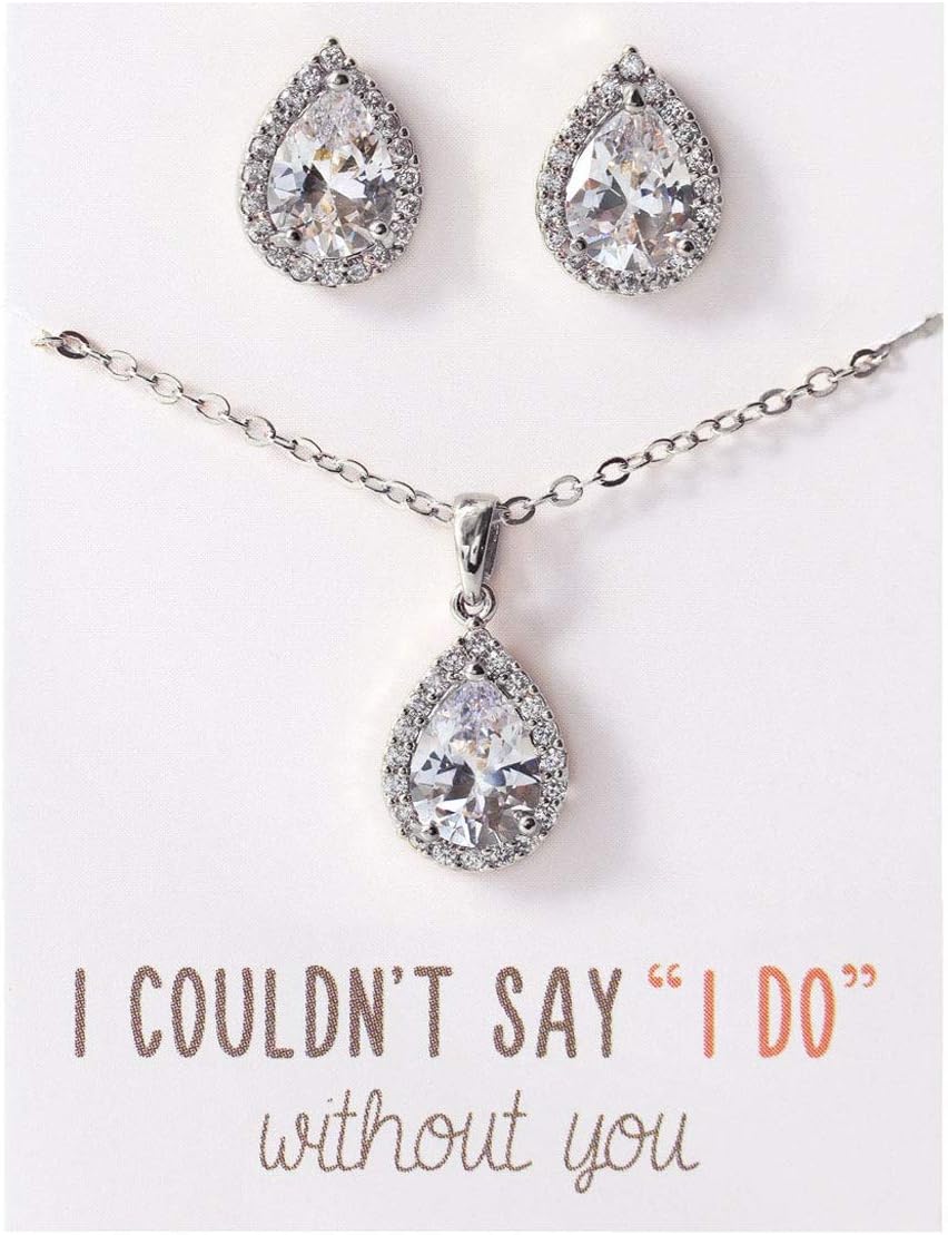 The perfect gift to give to your bridesmaids on your special day! This Cubic Zirconia jewelry set is medium weight with dainty stones surrounding the center pave crystal. The stones are set with prongs (not glue!), therefore you can rest assure you'll get the best quality for the most affordable price. Photos do not do it justice, you will be more than happy with your purchase!