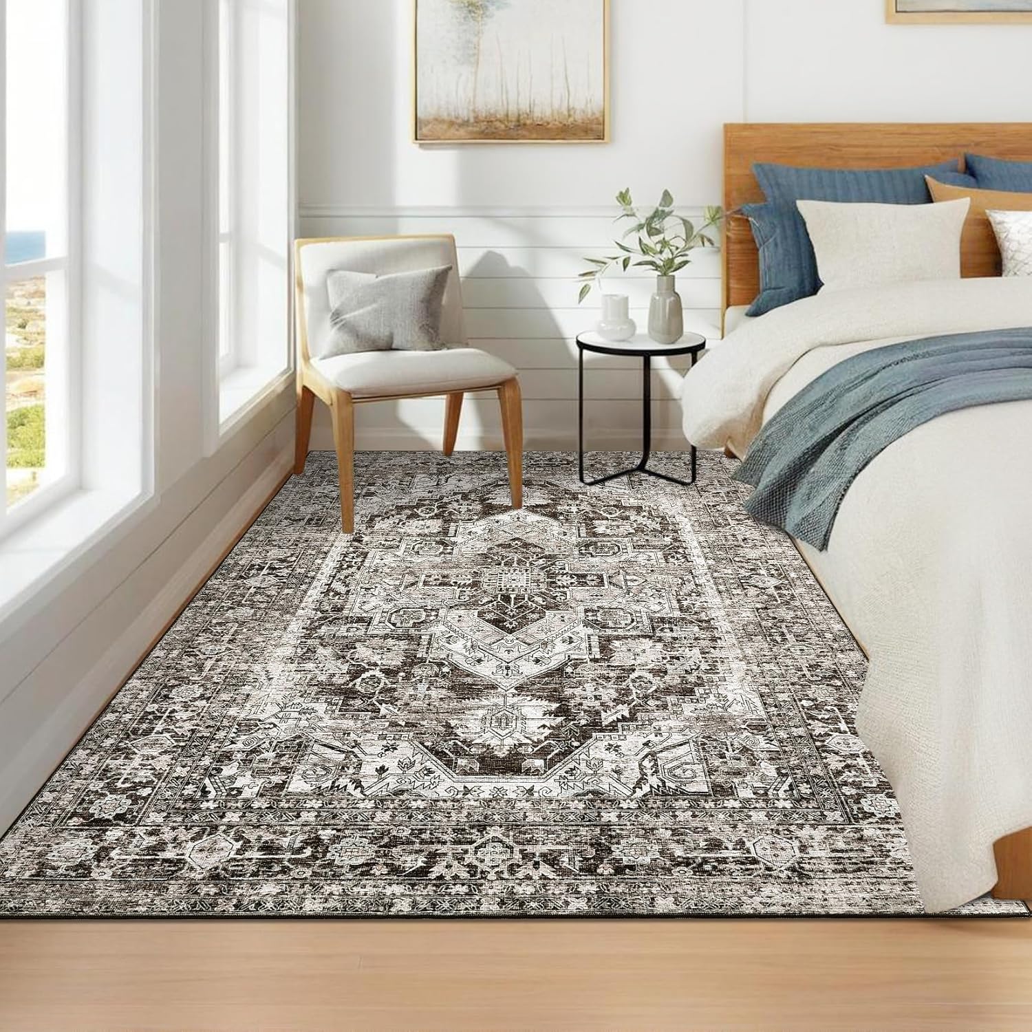 Dreaming of a cozy yet stylish upgrade for your home? This vintage medallion print rug with its non-slip backing and washable design, blends timeless charm with modern convenience—ready to make your space feel complete?Highlights at a glance:Vintage distressed medallion design with oriental charm.Non-slip TPR rubber backing for safety and stability.Soft touch, warm texture perfect for barefoot comfort.Low-pile ultra-thin design fits under furniture and doorways.Washable and vacuum-friendly for easy maintenance.Tightly machine-woven with sturdy edges, non-shedding, and fade-resistant.Lightweight and foldable for convenient storage and portability.Versatile for living rooms, bedrooms, or offices.Specification:Size: 2x6 ft, 3x5 ft, 4x6 ft, 5x7 ft, 6x9 ft, 8x10 ft, 9x12 ft, 10x13 ft, various sizes for your different needsMaterial: polyester fibreApplication: living room/bedroom/dining room/kids room/playroom/office/kitchen/farmhouse/playroom/basement/under table home decorFriendly Note:When area rug arrives, there may be temporary creases, you can roll the washable rug in the opposite direction and lay it flat on the floor while applying pressure to the carpet, the creases will disappear completely in a few days.Measure your space and choose the appropriate size. Ensure that the carpet can cover the area you want and coordinate with the surrounding furniture.Care Instructions:Can be hand washed or machine washed in cold water.Recommend spot cleaning for minor spills.Support vacuum cleaner and robot vacuum.Use mild detergent.Incorporate our vintage distressed washable area rug into your home today and experience the perfect blend of style, comfort, and convenience.It's more than just a rug – it's a statement piece that elevates your living space while catering to your practical requirements.