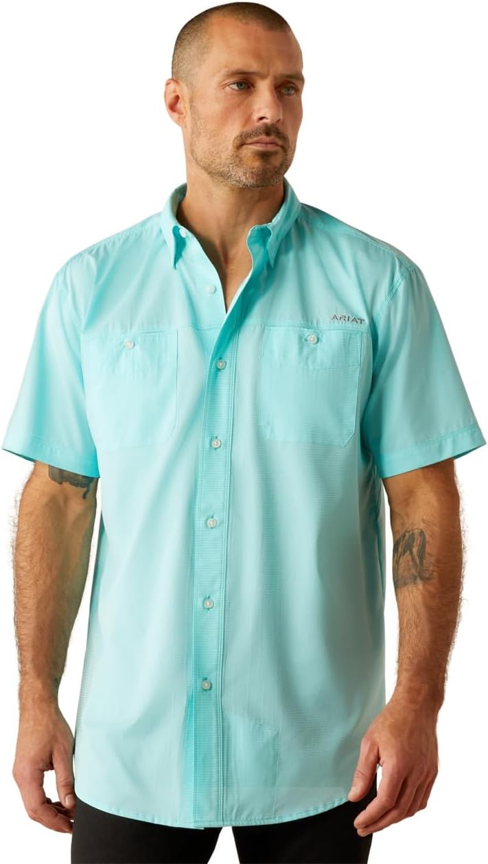 * Breathable perforated 100% polyester fabric * Classic button down * Single chest pocket * Button down collar * Hidden sunglass cl