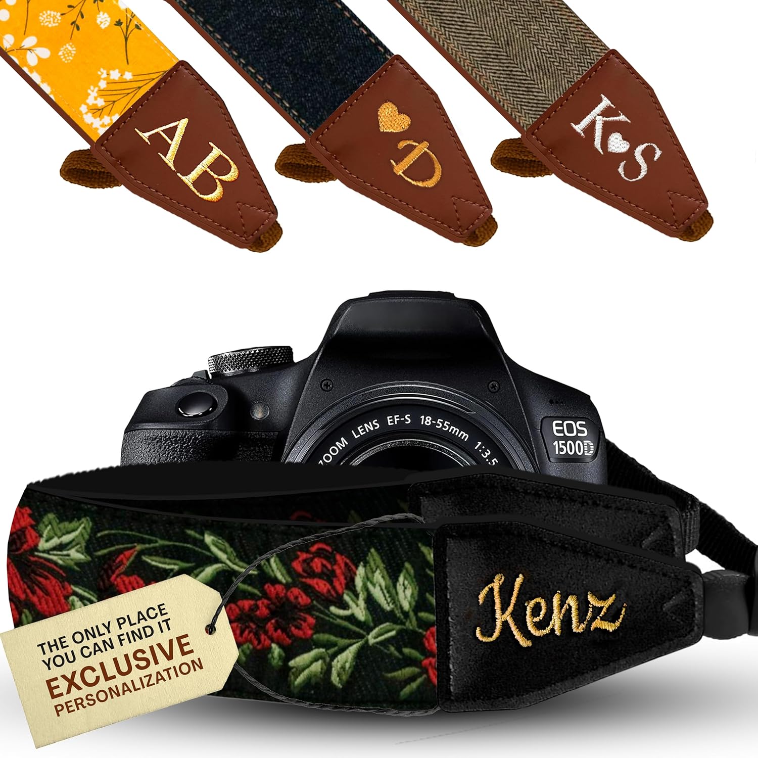 Camera Strap for All DSLR and Mirrorless Cameras. Add Your Name Or Initials Make It a Personalized Gift