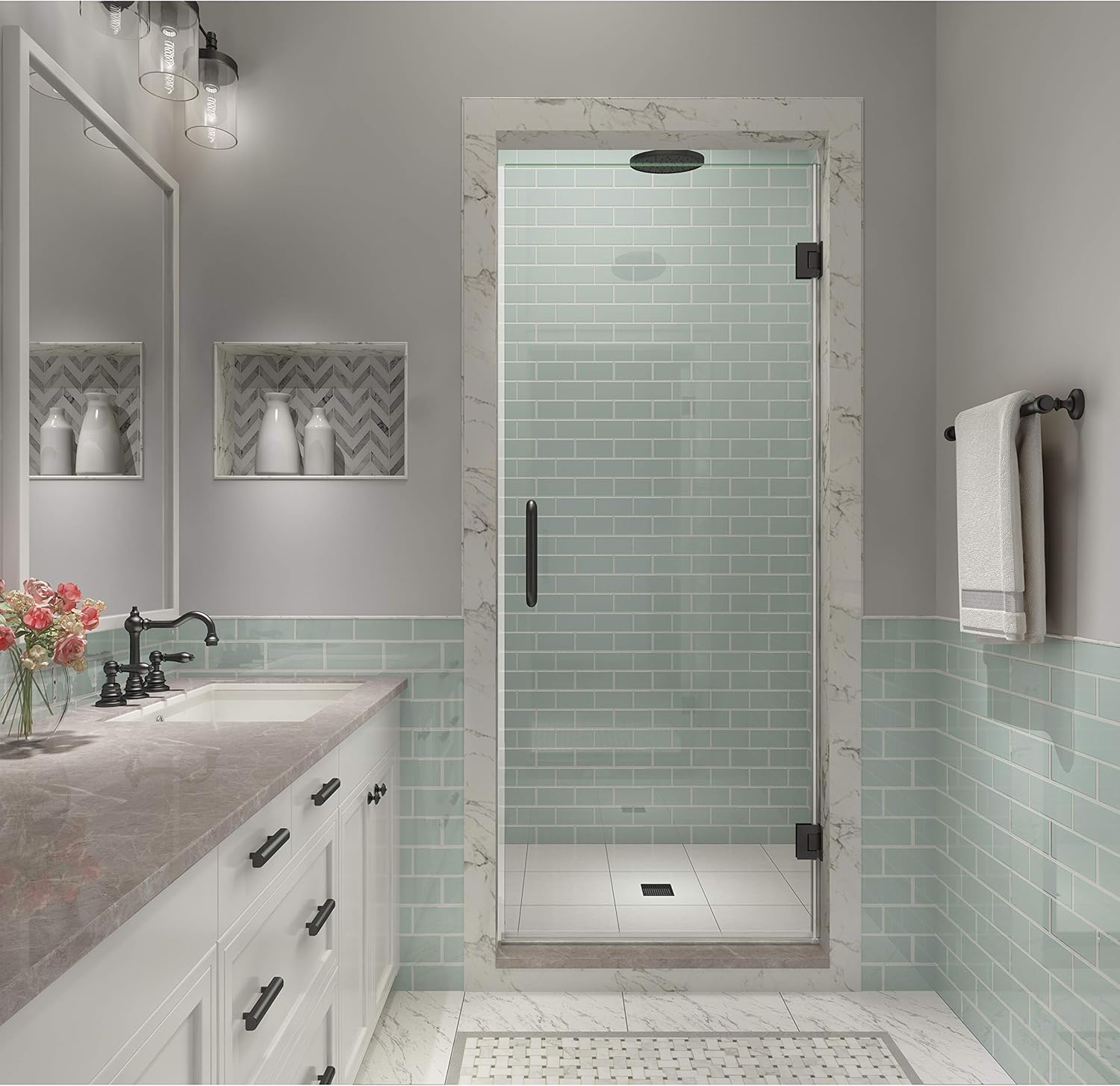 The Kinkade Completely Frameless Shower Door Collection creates the perfect balance of resort elegance and modern simplicity for your bathroom. Its 80 inch tall statuesque single-panel hinged design is comprised of thick, tempered 3/8 (10mm) ANSI Z97.1 clear glass with professionally applicated water-repellant, hygienic and stain resistant StarCast coating. Available in sizes that will fit alcoves 21.75 to 38.75 inches wide with a mosaic of alluring hardware finish options, the Kinkade Collection is reversibly engineered for either left or right handed installation complete with double-sided shower handles, up to 1/2 inch width adjustability, and can be seemlessly installed zero-threshold - providing a safe entryway and exit every time you shower. Easily and effectively create a new look for your existing shower alcove with the Kinkade Collection from Aston.
