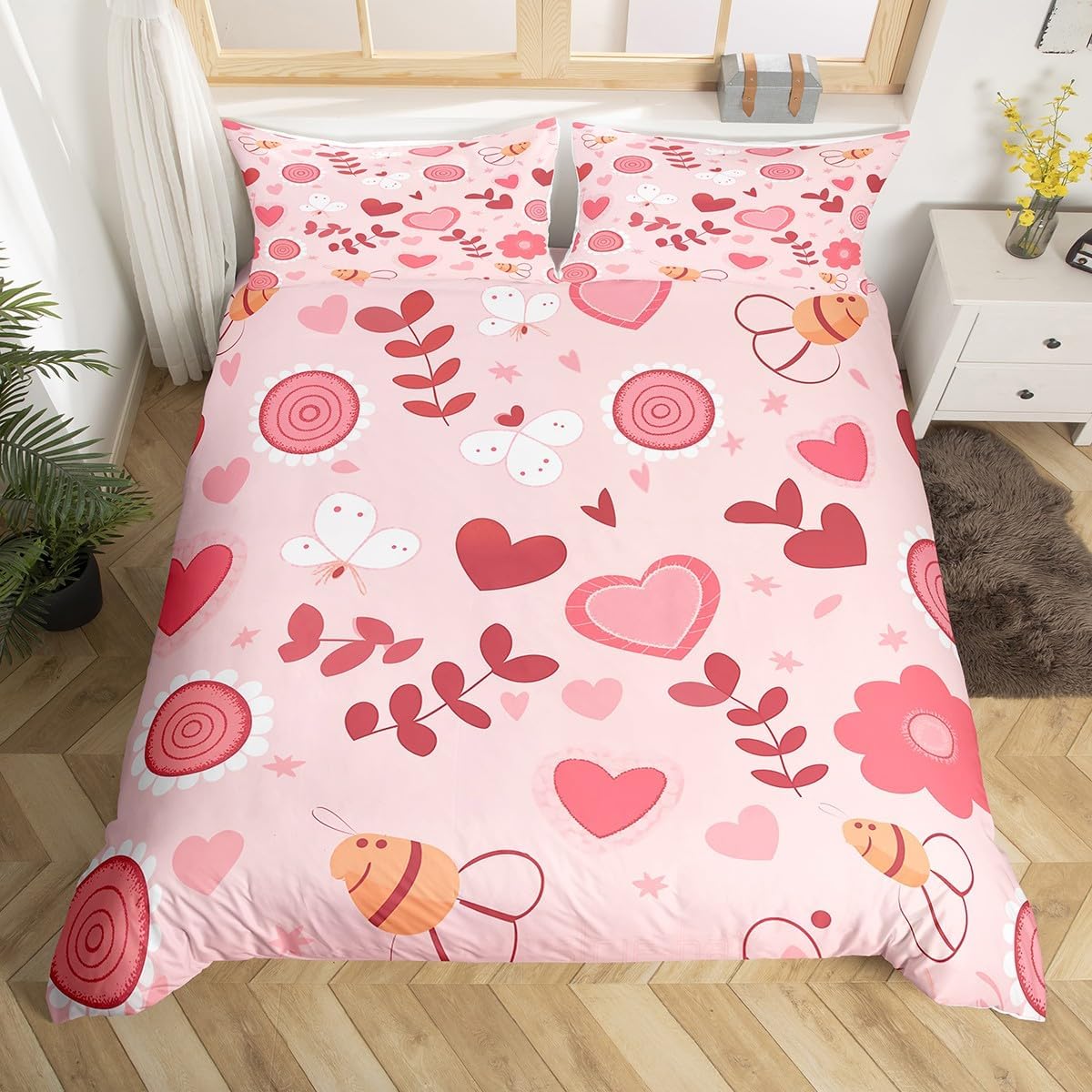 Package Include: Duvet Cover, Pillowcase; High-end Duvet Cover Set Pattern Bedding Set,simply decorating your rooms any time you want, bringing you fresh feel for year round use;Long-lasting:;Made from 100% polyester microfiber,the sheet set offers long-lasting strength, anatural resistance to shrinking and a noticeably soft hand feel;;Size Information::;Twin size : 2 Piece duvet cover set : 1 Duvet Cover 68" x 90",173 x 228 cm , 1 pillowcase 20" x 30",51x75 cm ;Without Comforter;Full size : 3 Piece duvet cover set : 1 Duvet Cover 80" x 90",200 x 229 cm , 2 pillowcase 20" x 30",51 x 75 cm ;Without Comforter;Queen size : 3 Piece duvet cover set : 1 Duvet Cover 90" x 90",229 x 229 cm , 2 pillowcase 20" x 30",51 x 75 cm ;Without Comforter;King size : 3 Piece duvet cover set : 1 Duvet Cover 104" x 90",264 x 229 cm , 2 pillowcase 20" x 36",51 x 92 cm ;Without Comforter;Personalize your bedroom:Beautiful design and colorful print, makes your bedroom unique and brings you a wonderful dream;Washing instructionsMachine wash separately in cold water,hang dry, do not bleach;Occasion:The cute soft duvet cover bedding sets designed for Children ,Adult, Men, Women, Teens; This duvet cover set is also suitable for full seasons, Spring, Summer, Autumn and Winter;
