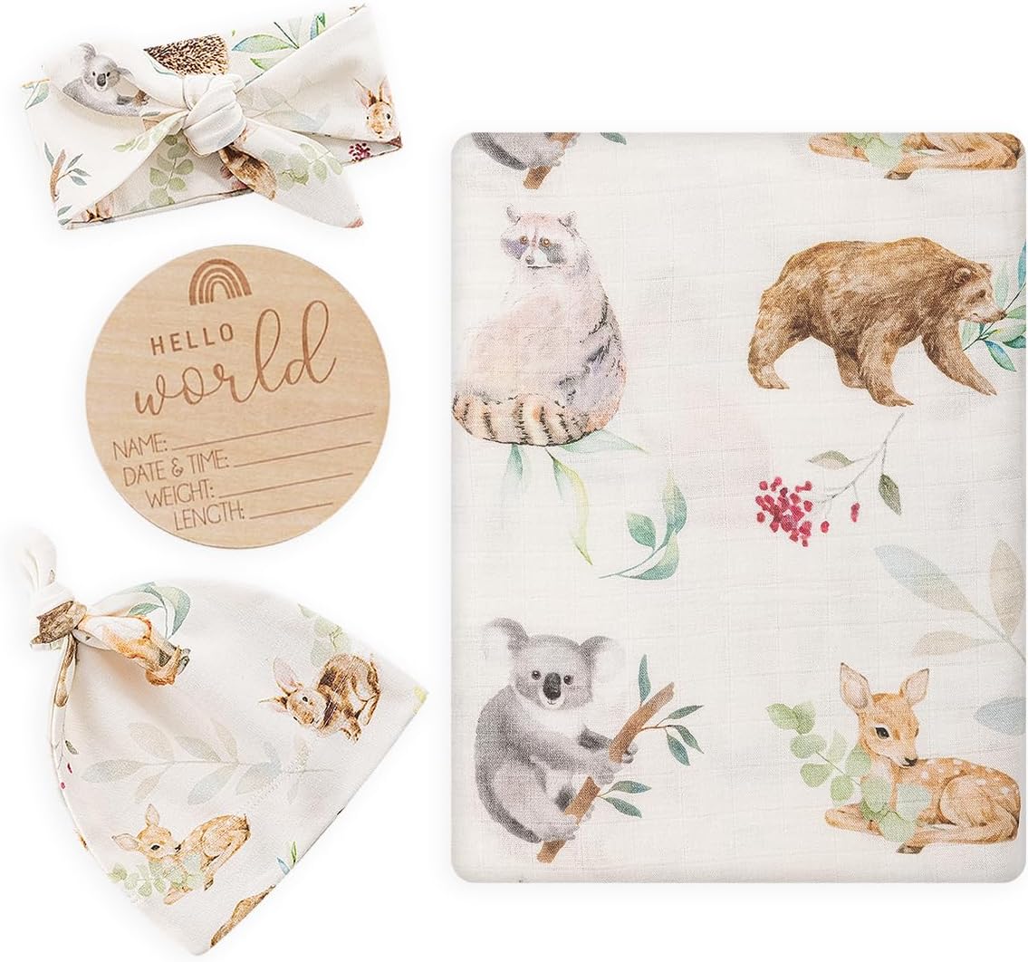 | Included Components | Headband Bow *1, Matching Hat *1, Swaddle Blanket *1, Wooden Birth Announcement Card *1 |