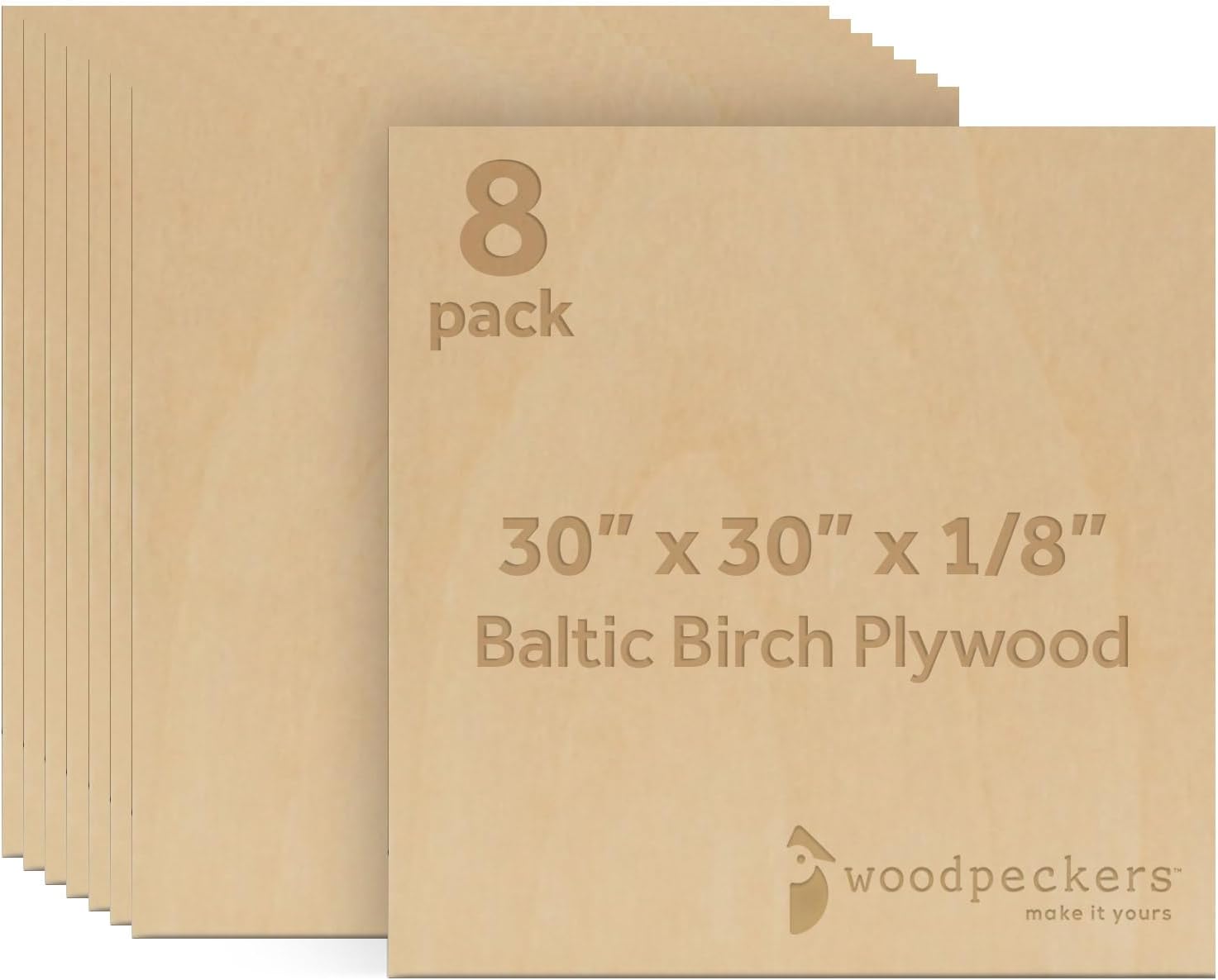Choose Premium Wood for Crafts Looking for thin birch plywood that's both lightweight and budget-friendly? The flexibility and strength of these thin wood sheets for crafts make them ideal for both large construction projects, home woodworking, and hobby wood. This B/BB-grade hardwood large plywood sheet is graded according to the Baltic standard. The smooth face allows for convenient painting, stenciling, staining, and wood burning, and the natural markings of the back side give the craft wood pieces an aesthetic appeal and natural beauty.Graded for Performance The inner core of Woodpeckers' plywood board is made of thick solid birch veneer plies, cross-banded, and laminated with strong adhesive, making for a more compact foundation and adding to the strength and durability of each sheet. The face veneer features a beautifully smooth and clean surface that is free of knots, plugs, open cracks or splits. The thick face veneer also provides a smoother surface for CNC routers or engraving machines to glide on the laser cutter plywood and scroll saw wood.Dedicated to Your Next Masterpiece Woodpeckers is dedicated to providing you with premium wood panels. Our products are specifically designed to exhibit the masterpieces of woodwork crafters and artisans who strive to perfect their crafts. Our highly trained customer care agents are thoroughly familiar with our products, and we will be happy to assist you with any concerns and inquiries. Looking for wood sheets for crafting in different sizes? Visit the Woodpeckers storefront for a large selection of plywood squares in 1/2", 1/4", and 1/8" thickness.