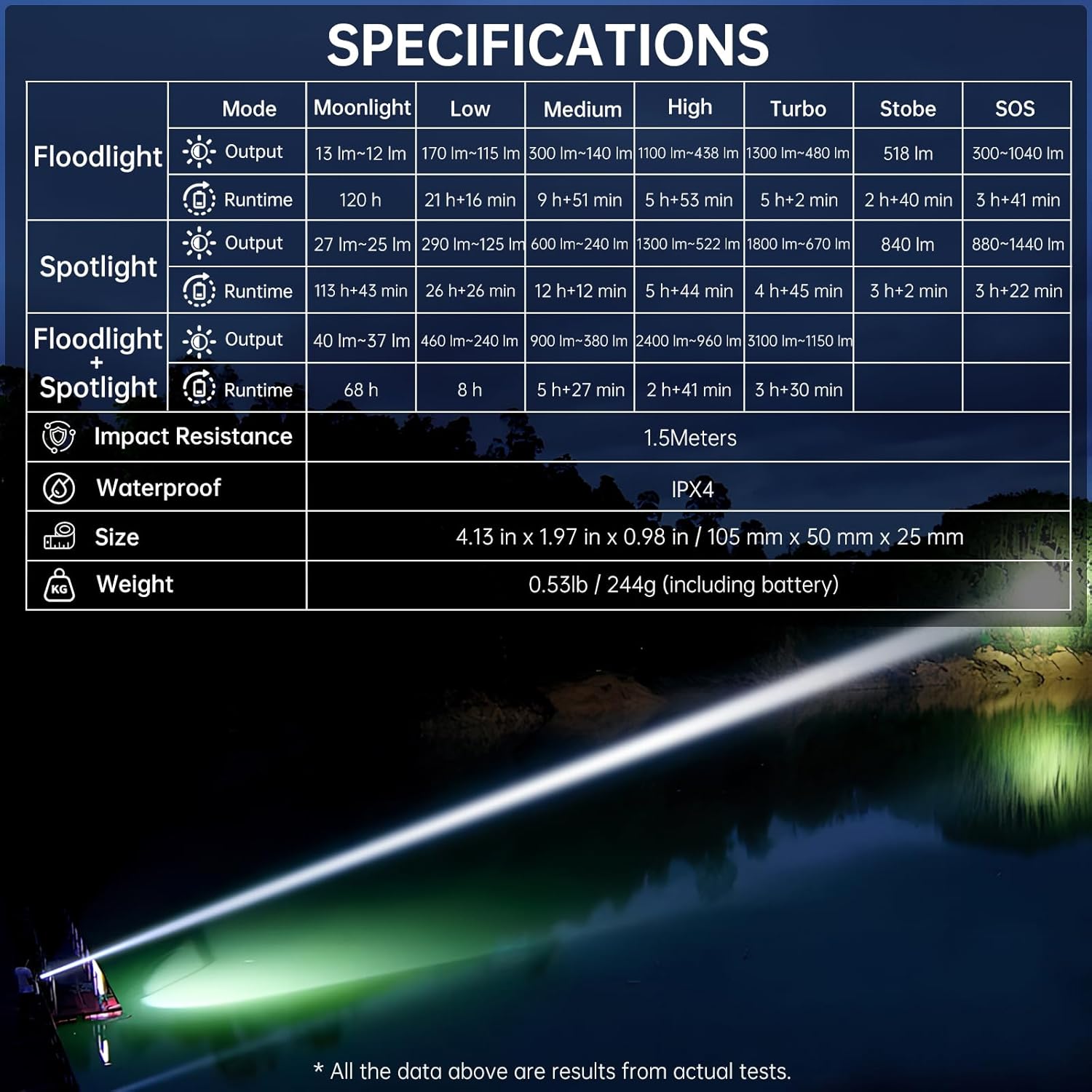 | Additional Features | High Power, Dual Switch Design, Floodlight, Spotlight, 7 Lighting Modes, Memory Function, One Key Turn Off, USB TYPE-C Rechargeable, Metal Pocket Clip, Impact Resistant, Waterproof, Battery Level Indicator |