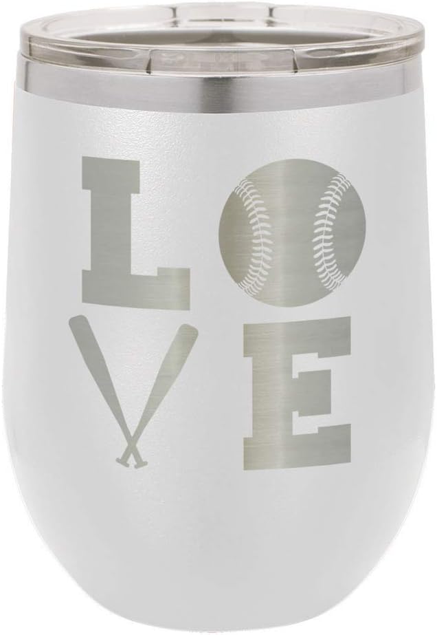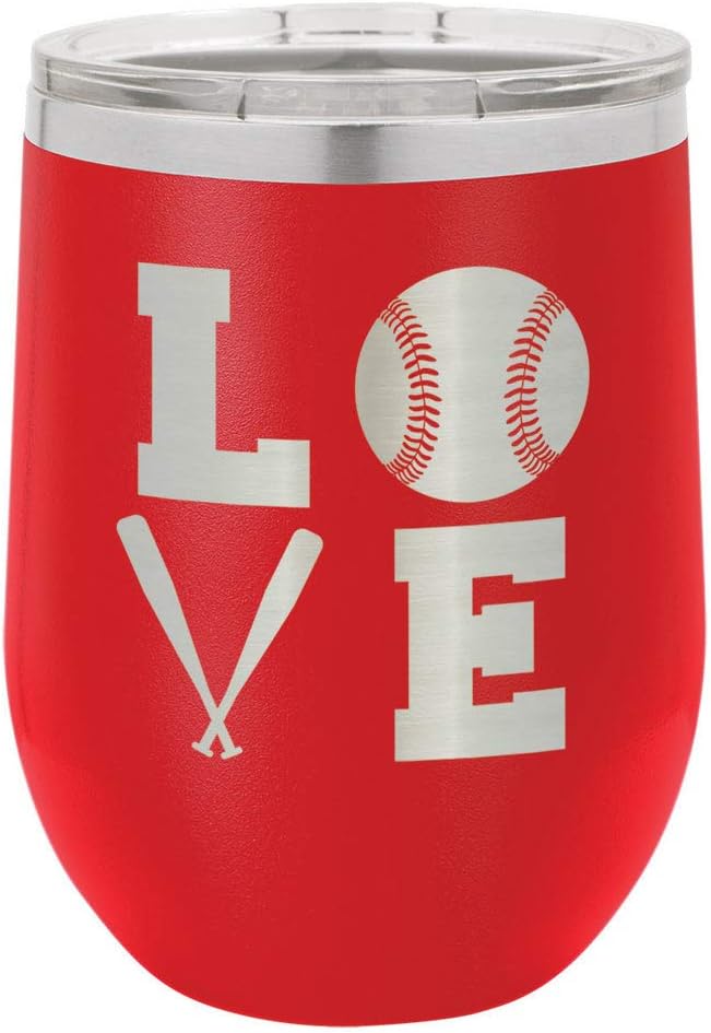 BASEBALL LOVE SQUARE Light Blue 12 oz Stemless Wine Glass With Lid | Custom Engraved With Funny Quotes and Sayings | Stainless Steel Wine Tumbler | OnlyGifts.com