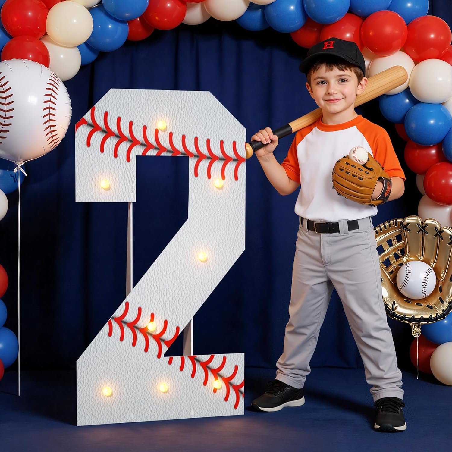 The basketball themed marquee numbers 3 feet tall set include:1 x number1 x light string with 8 bulbs1 x instruction manualOur sports birthday party decorations are a good choice for any celebration, showcasing a classic basketball design paired with warm yellow lights that gives off a striking, eye-catching visual effect. This large light up numbers add fun into birthdays, parties and other special events, leaving guests with a memorable impression. All pre-cut components of basketball decorations for party are clearly numbered for simple assembly. Just align and insert the base plate, fix them with a hot glue gun (not included), then screw in the bulbs to complete the setup.