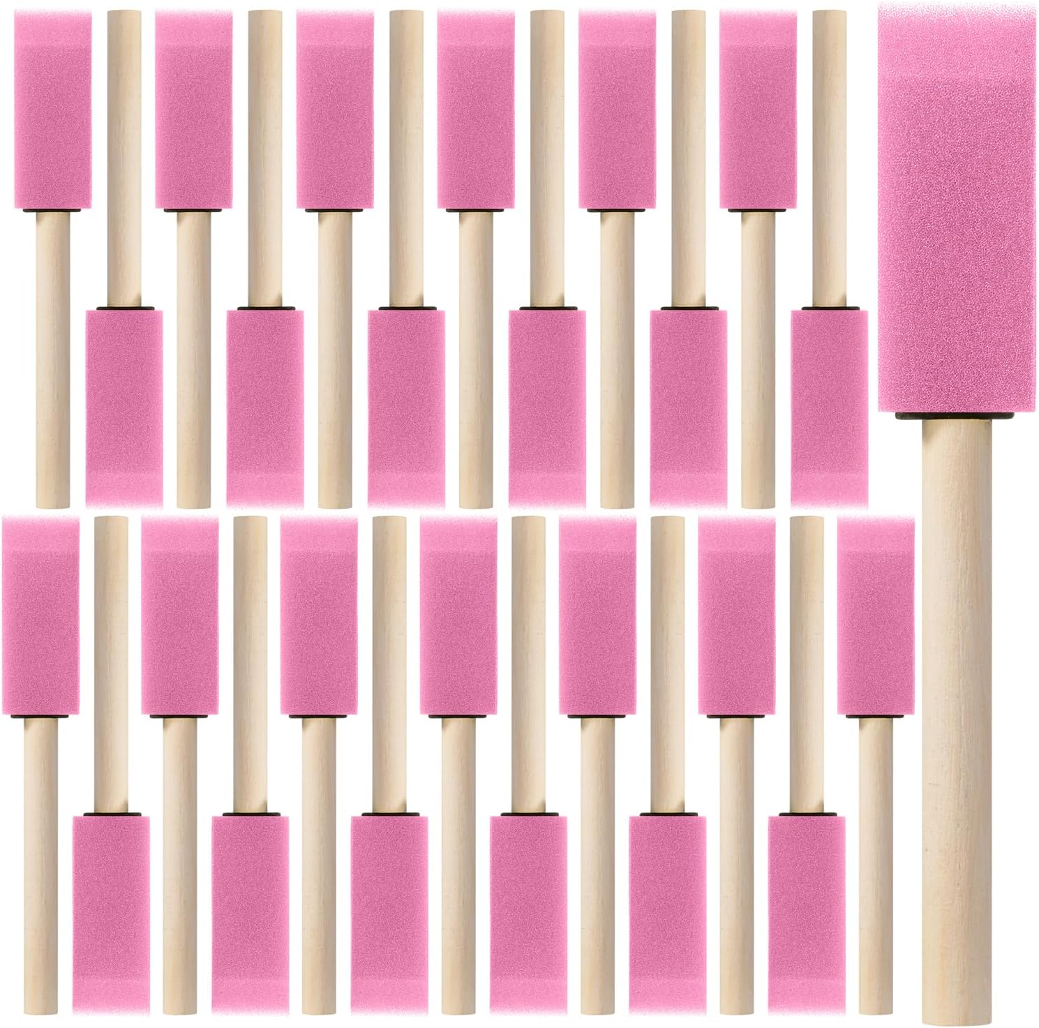 Bates foam paint brushes come in a 300-pack, offering a reliable solution for painting, staining, and crafting across multiple projects.Each brush features a lightweight wooden handle and a dense foam head that ensures smooth, drip-free application with minimal streaking.The 1-inch width is ideal for precise work along edges, trim, corners, and tight spaces.These versatile brushes are suitable for use with acrylics, stains, sealants, and both water- and oil-based finishes.Perfect for one-time use or quick cleanups, they provide convenience and consistency for professionals and DIYers alike.