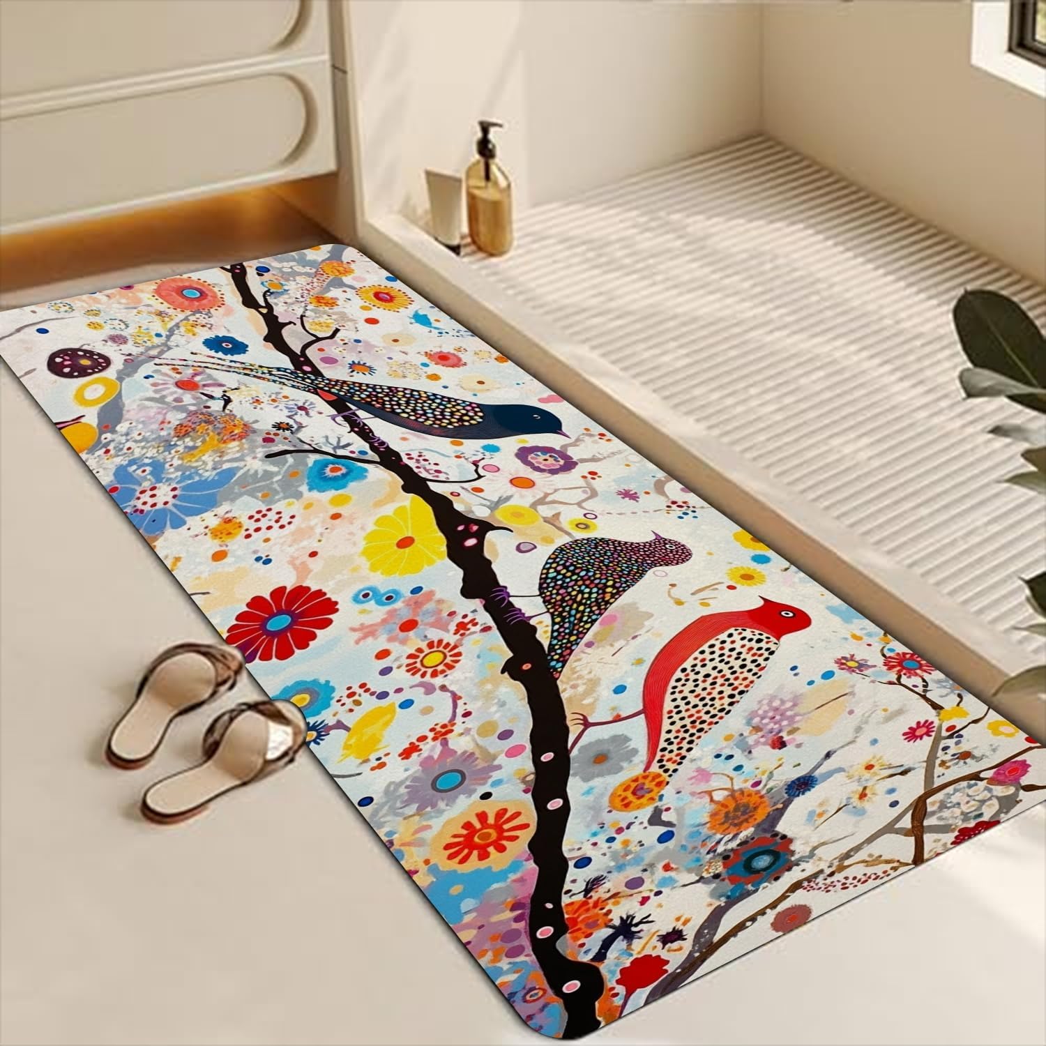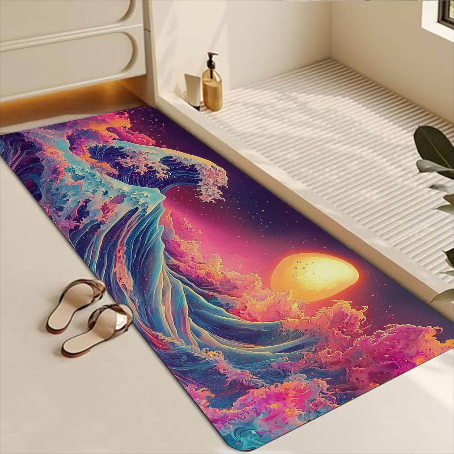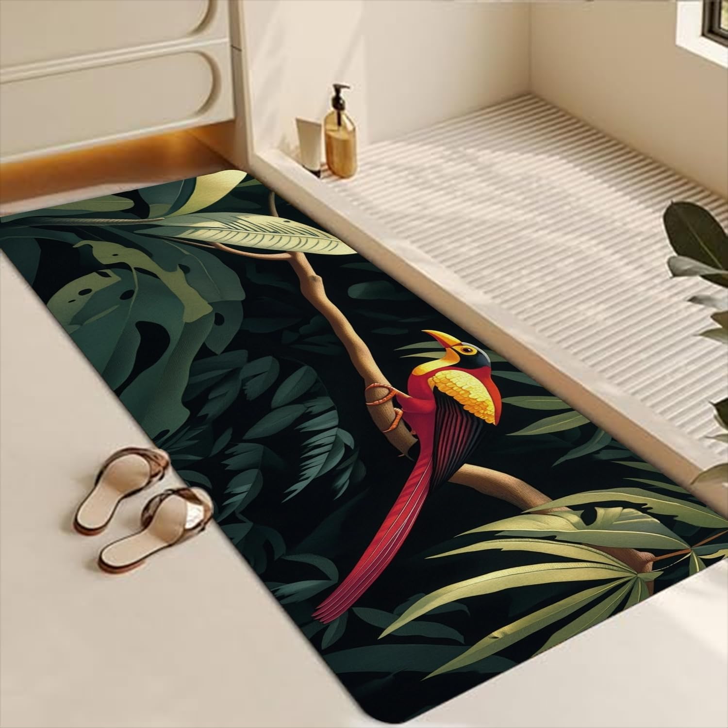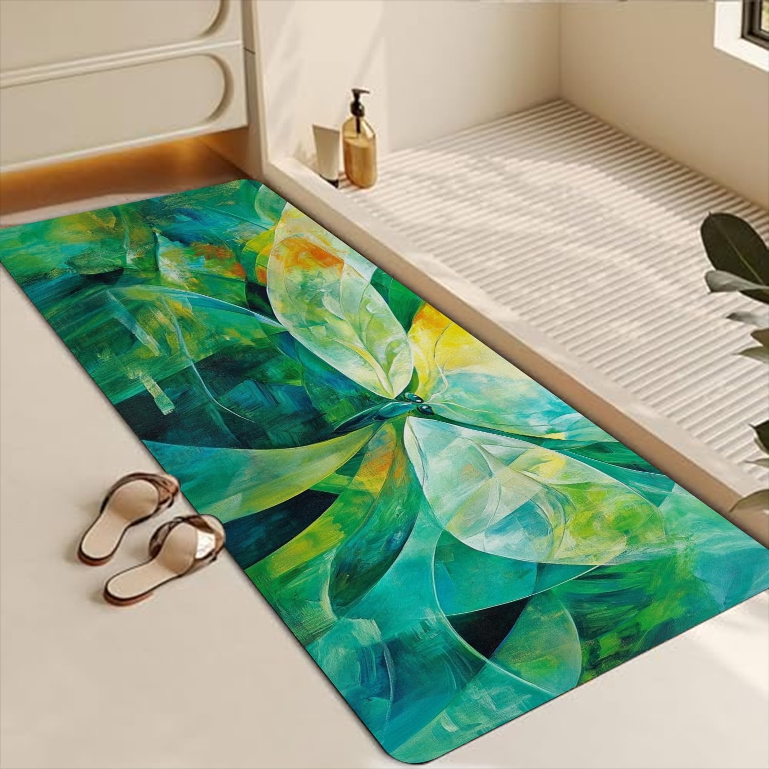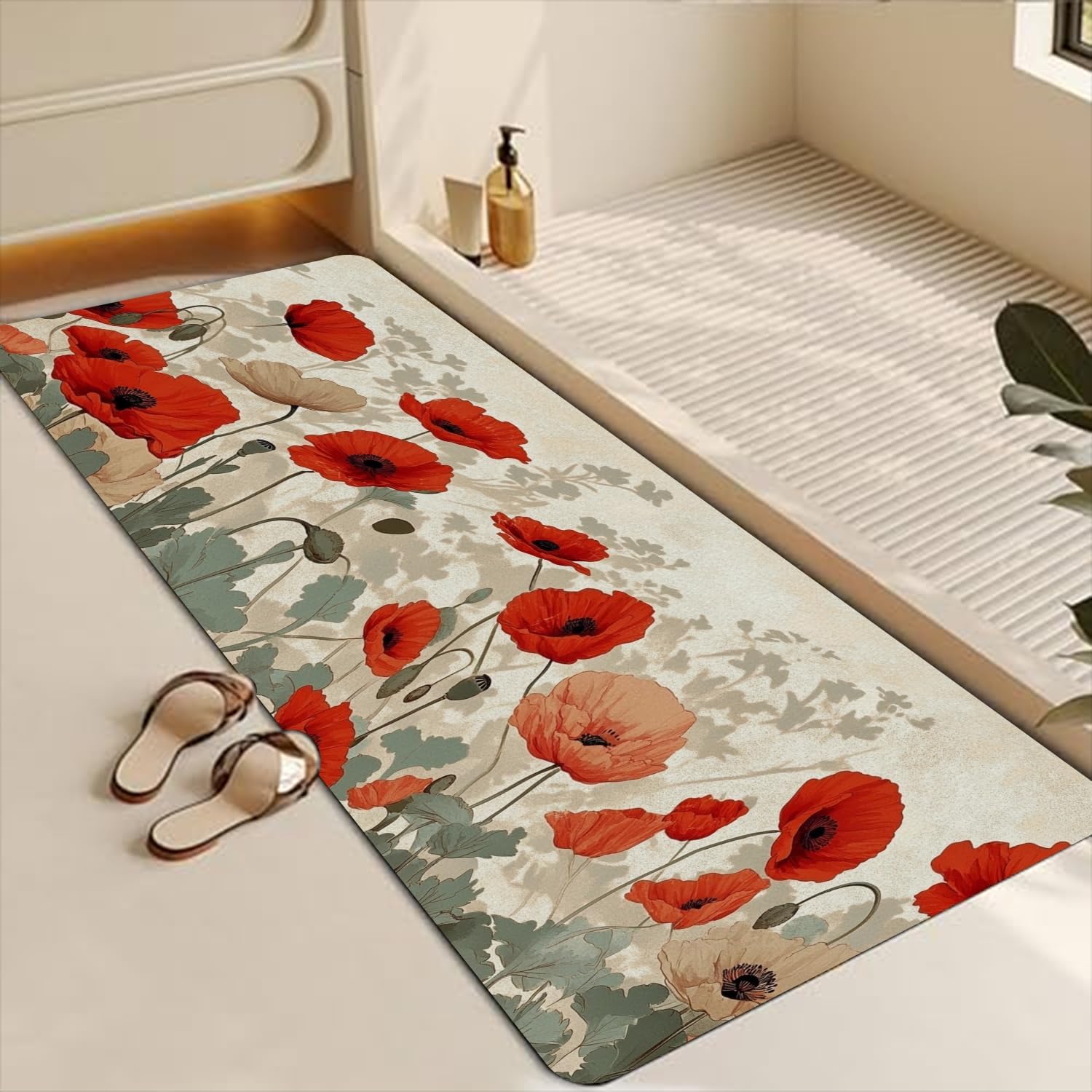 The bath rug measures 42 x 16 inch just the right size for your bathroom,with super absorbent and fast drying , with natural rubber backing non-slip design