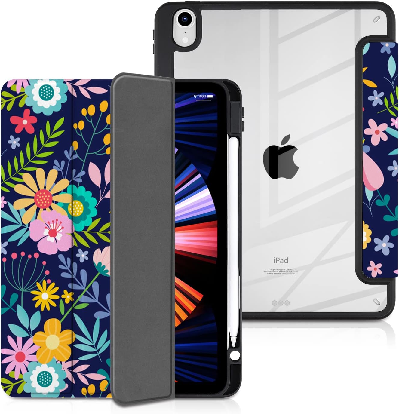 Batianda Case for 11-inch iPad Air 2025 M3 2024 M2 Chip/iPad Air 5th/4th 10.9 inch [Built-in Pencil Holder] Shockproof Cover with Clear Back Shell TPU Bumper Auto Sleep/Wake, Field of Flowers