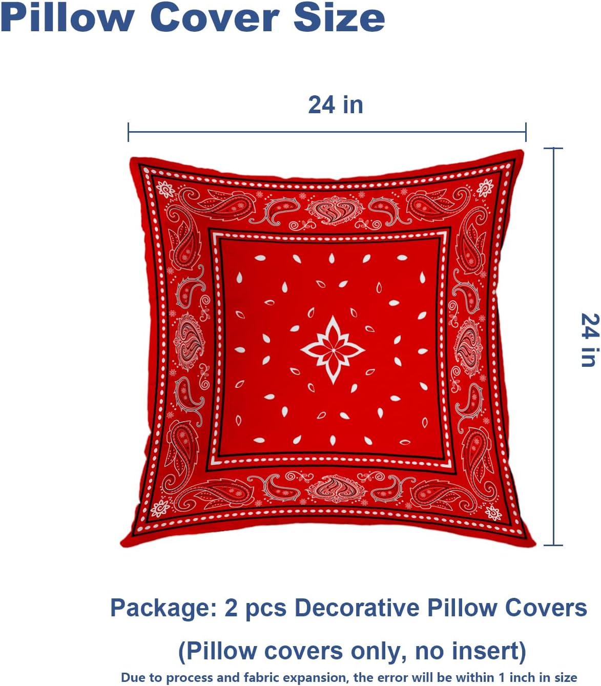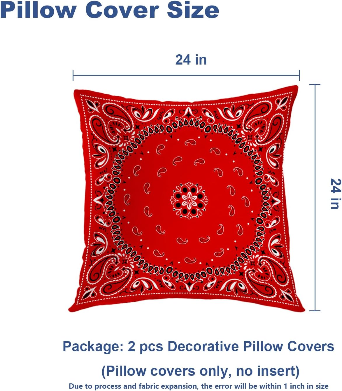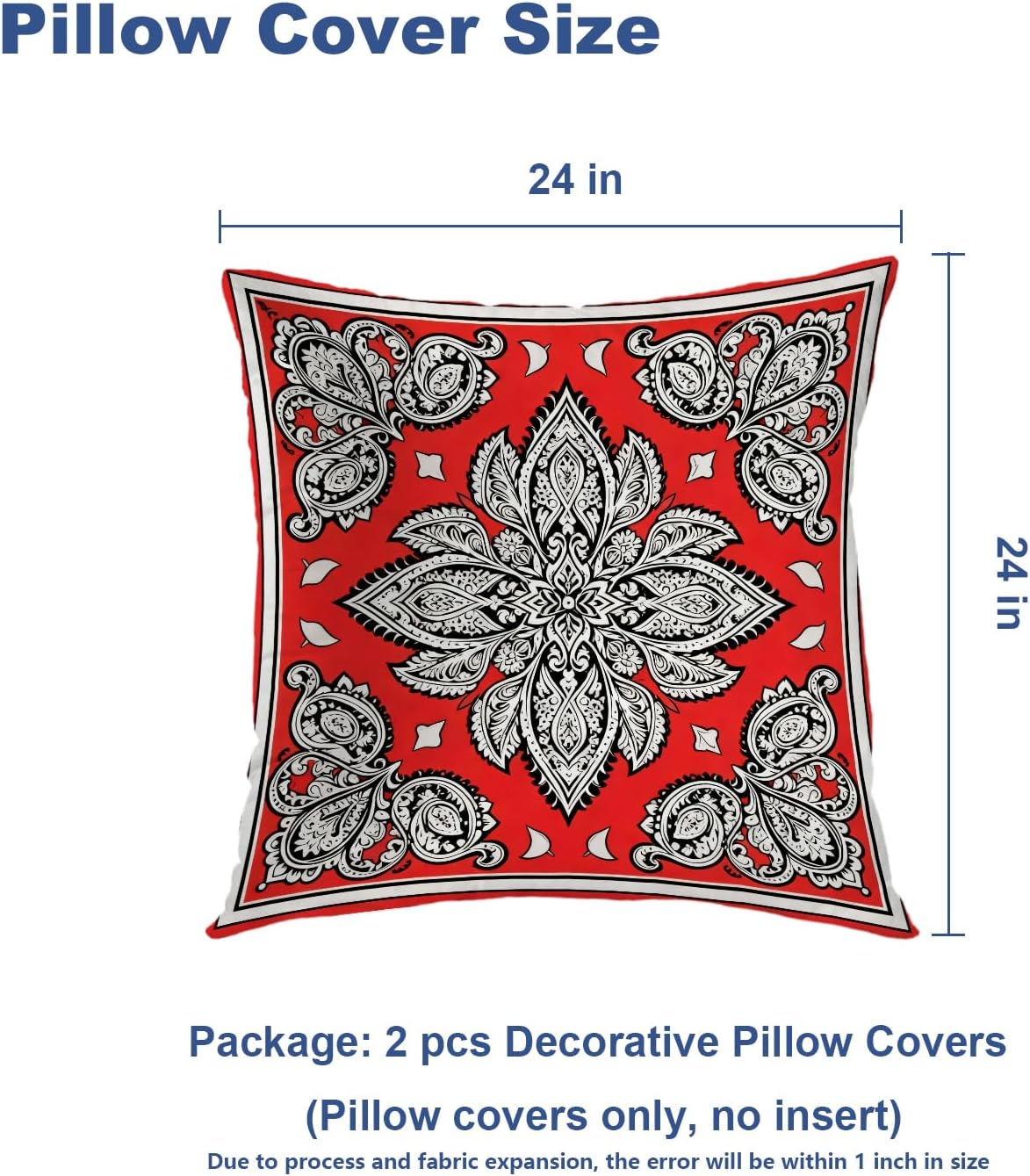 • Package Include: 2PCS 24X24 inches, 61X61 cm pillow covers. Pillow insert is not included, Due to manual measurement, please kindly allow 1-2 inch discrepancy.
