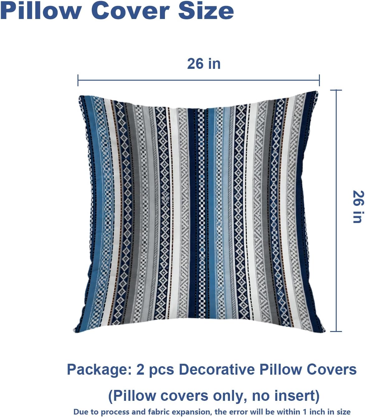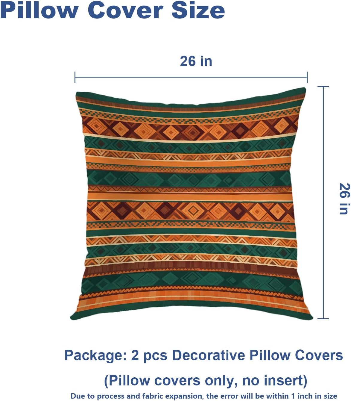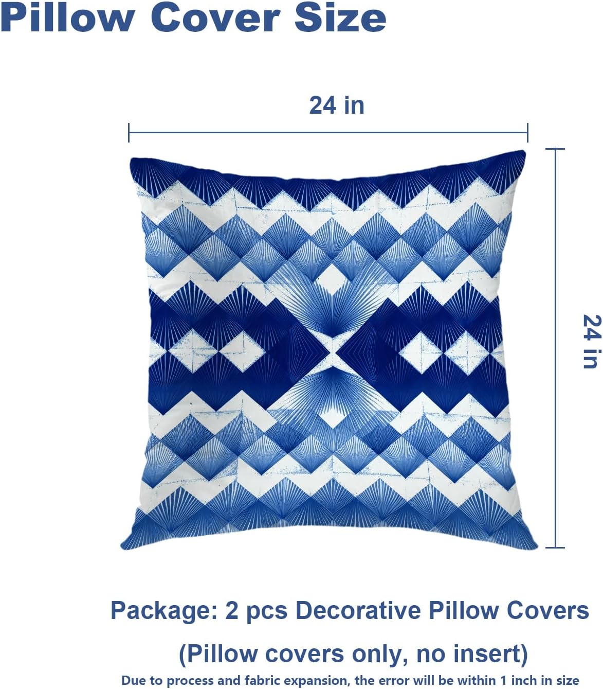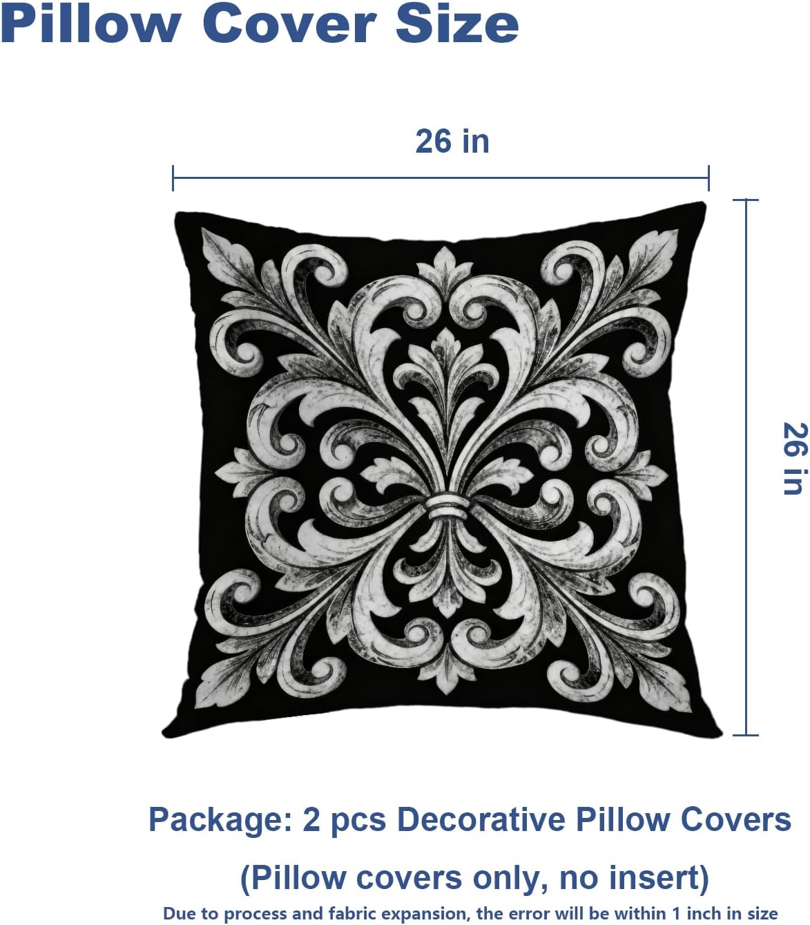 • Package Include: 2PCS 24X24 inches, 61X61 cm pillow covers. Pillow insert is not included, Due to manual measurement, please kindly allow 1-2 inch discrepancy.