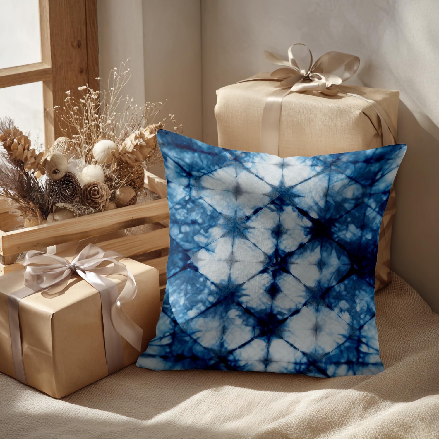 Batmerry Navy Indigo Blue Dye Abstract Tie Striped Throw Pillow Covers, Art Decorative Pillow Covers Digital Printing Blended Fabric for Couch Sofa Bed Invisible Zipper 24X24 in(Set of 2)