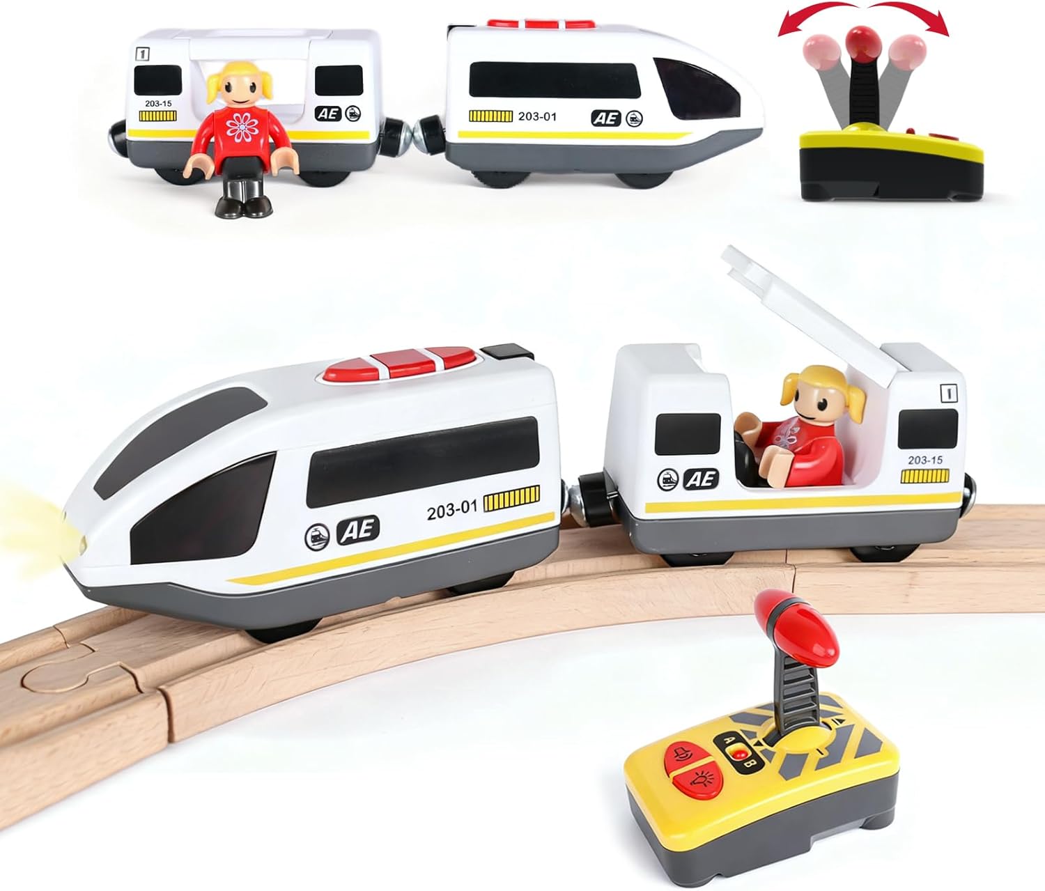【Specification】 Our remote control train has a powerful engine,battery operated makes it powerful to drive more trains to move forward.The engine train and carriage are connected magnetically. The engine and extra train vehicle is magnetic connected.Compatible with major brands of train tracks to run freely. Allows child's imagination to flow and helps improve their fine motor skills and spatial awareness. Train toys can be given to children as early education gifts, as Christmas, Halloween, Thanksgiving and birthday gifts Train Material: ABS Toy Color: Green and Red Train Batteries: 2*AAA batteries (not included) Remote Control Battery:2*AA batteries (not included) Product Size (approx.): as picture show Product Packaging: carton 【Package Included】 1* Train locomotive;1* Train Carriage; 1* Remote Control;4*Passengers;1 * Carton 【Notice】 Please allow around 1"/1-3 cm error due to manual measurement and make sure you do not mind before ordering Please understand that colors may exist chromatic aberration as the different placement of pictures