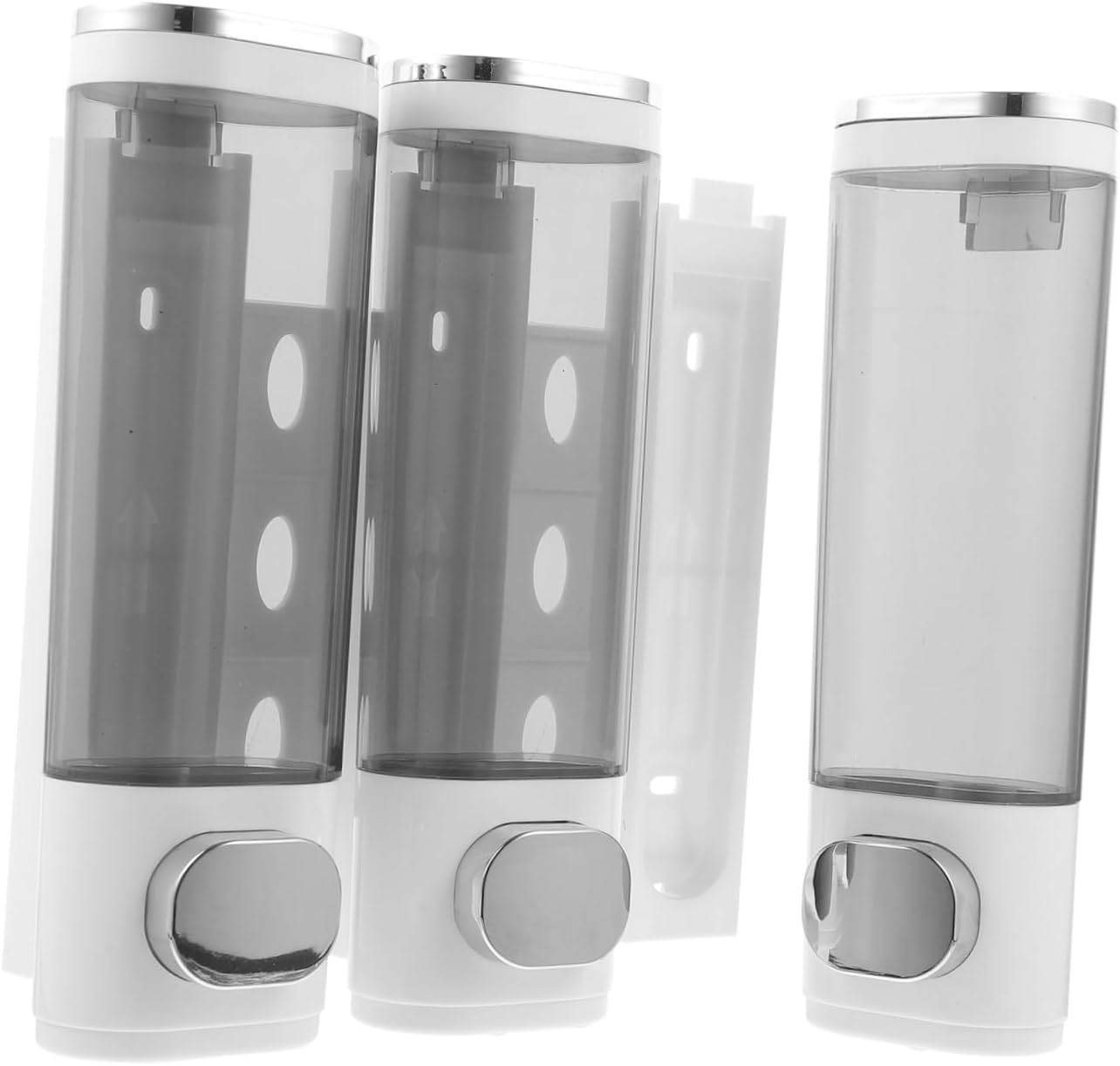 Package Include 1 x 3-in-1 soap dispenser 4 x install screws 4 x expansion bolts Features -Size:21.50X21.00X7.00cm/8.45X8.25X2.75in -Product Info:Soap liquid box -Material:ABS -Color:White - Great for lotions, body washes, shampoos, etc., and can be used in bathrooms, kitchens, and restaurants shower soap dispensers. - The hardness of the ABS material can keep it not easy to deform under normal wear. - Large capacity hand soap dispenser to avoid replacing soap frequently, which can bring convenient for your family shower gel dispenser. - Easy to press and it is effortless, modern appearance, can be conveniently used liquid dispenser. - Wall-mounted design and smooth pump, portable to use and it can be your good helper liquid soap holder.Goods Informationbody wash dispenser Made of ABS materials, this wall mounted Soap Dispenser is not easy to deform and break for a longtime use.shampoo dispenser pump Can be repeatedly filled with shower-gel, liquid shampoo, lotion soaps, useful and convenient.bathroom dispensers Suitable for different types of liquids such as shower gel, shampoo, conditioner, laundry liquid, soap, shower gel, etc