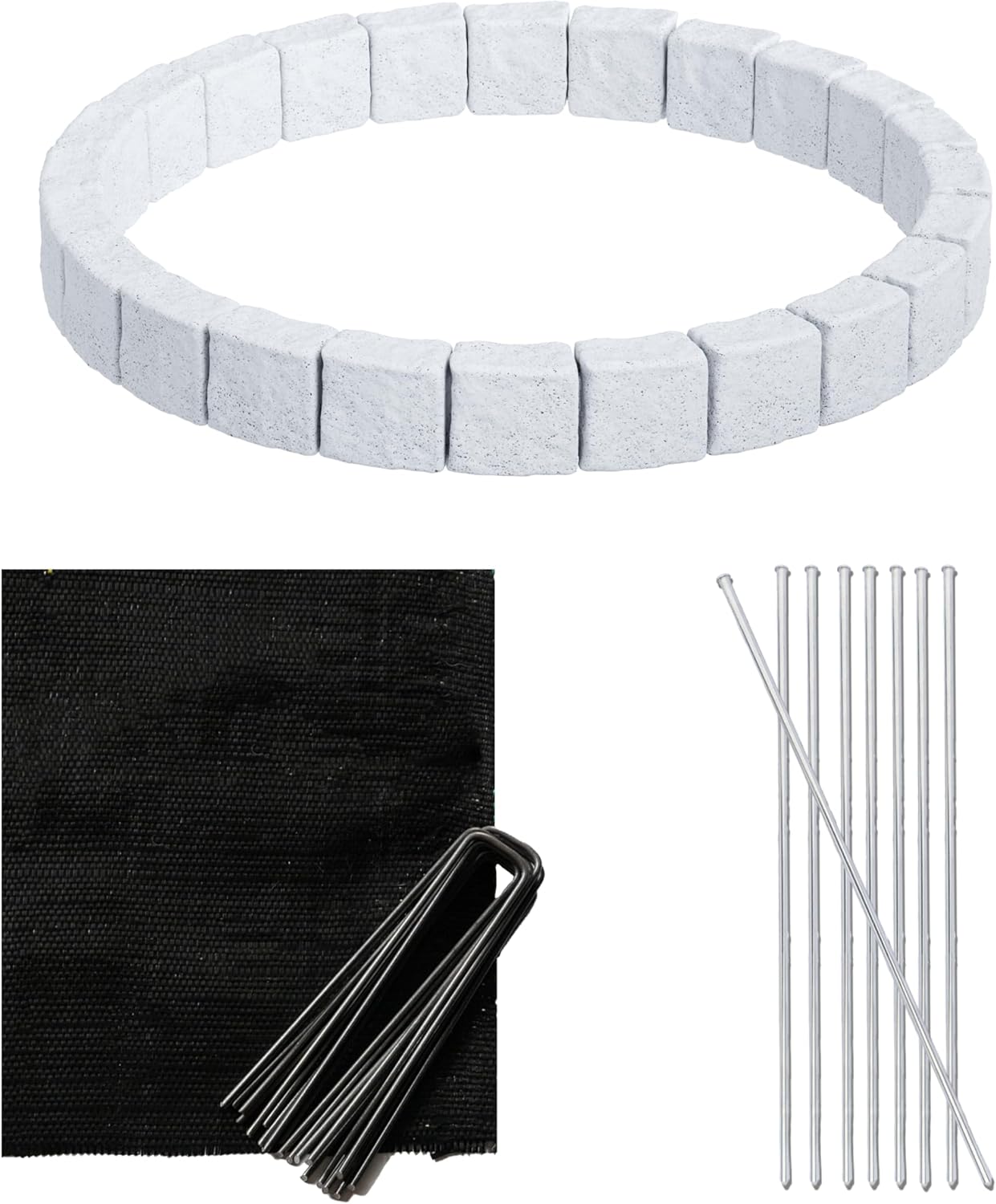 Upgrade your outdoor space with Beuta Landscape Edging, a stylish and practical solution for creating clean, defined garden borders and lawn edging with easy installation.This landscape edging features a realistic faux stone design that mimics natural look, enhancing the appearance of flower beds, garden borders, tree rings, and landscaping areas. Each set forms a 5FT diameter border and includes 4 modular sections, allowing flexible shaping for curved or straight layouts.Crafted from durable, weather-resistant resin, this garden edging border is built to withstand outdoor conditions while maintaining its stone-like finish. The included weed guards and metal staples help secure the edging in place and reduce unwanted grass and weed growth along garden beds and lawn borders. Perfect for homeowners and landscapers alike, Beuta faux stone landscape edging provides a simple, tool-friendly way to achieve professional-looking landscaping edging, flower bed borders, and yard edging without heavy materials or complex installation. Ideal for: Garden edging Lawn edging Flower bed borders Tree rings Yard borders Landscaping edging