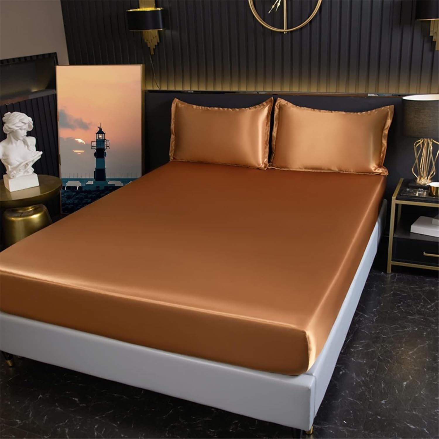 Including Fitted Sheet with Pocket x 1pcs; Fitted Sheet Size: 200x220cmFarbic: Ice Silk FarbicOur fitted sheet with standard pockets to easily fit normal size mattresses, so it’s a cinch to put on the bed – even with a mattress topper! Also, our fitted sheets feature elastic all the way around its edges to hug your mattress securely!Our bed sheets are soft, breathability, durability and lasting quality.Our bed sheets are conveniently machine washable. However, to keep wrinkles at bay, promptly remove the sheets from the dryer or iron them.
