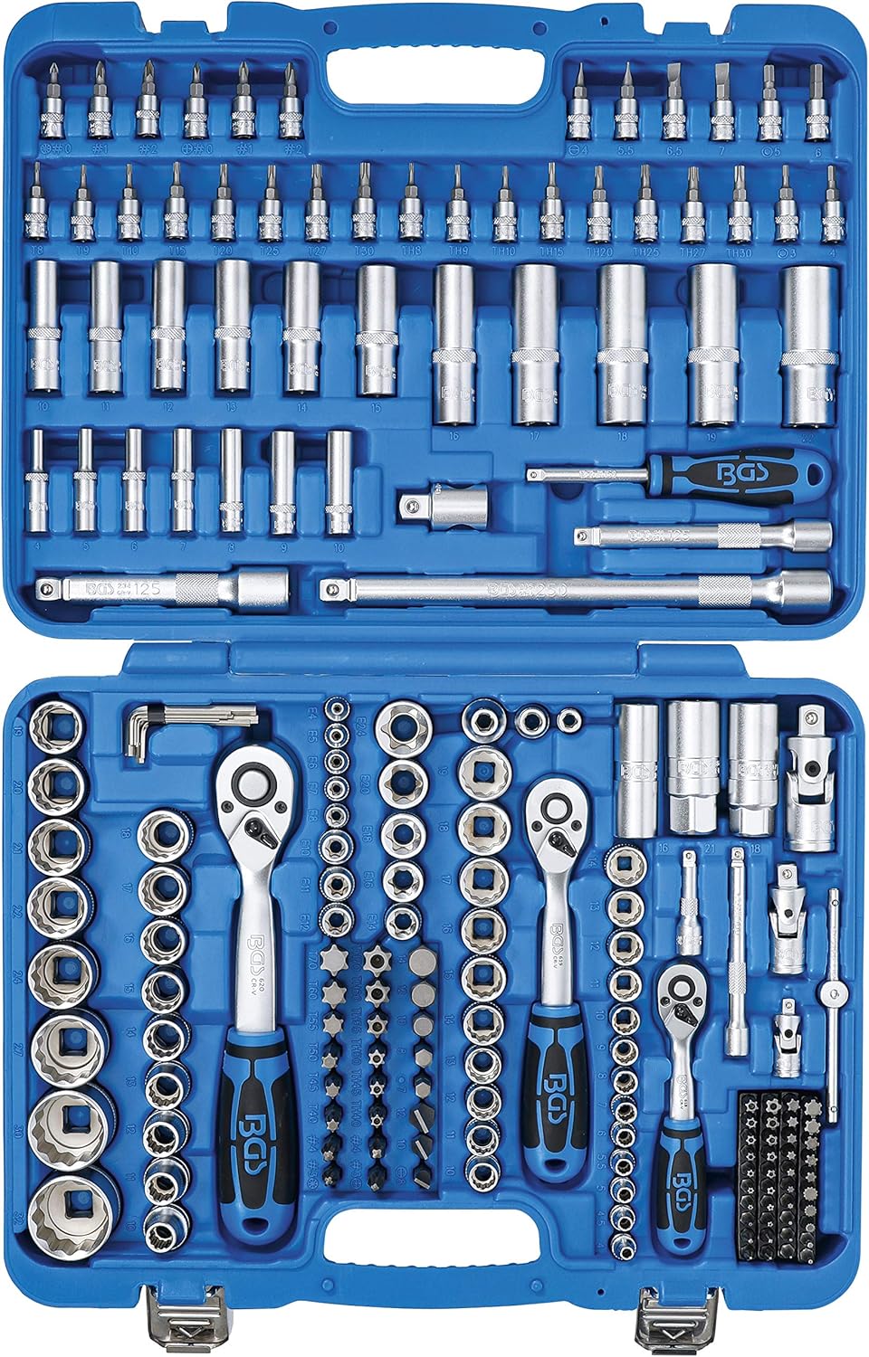 includes many automotive toolstools with drive: 6.3 mm (1/4")sliding barspinner handle, 150 mmreversible ratchet, 72 teeth"wooble" extension bar, 50 mm100 mm extension baruniversal jointbit holder for 6 mm bitssockets, 12-point, 4 - 4.5 - 5 - 5.5 and 6 - 14 mmsockets, 12-point, length: 50 mm, 4 x 10 mmE-type sockets E4 - E5 - E6 - E7 - E8bit sockets cross slot: PH0 - PH1 - PH2 / PZ0 - PZ1 - PZ2bit sockets slot 4 - 5.5 - 6.5 - 7 mmbit sockets T-Star (for Torx), not tamperproof T9 - T10 - T15 - T20 - T25 - T27 - T30bit sockets T-Star tamperproof (for Torx) TH8 - TH9 - TH10 - TH15 TH20 - TH25 - TH27 - TH30bit socket internal hexagon 3 - 4 - 5 - 6 mmtools with drive: 10 mm (3/8")reversible ratchet, 72 teeth"Wooble" extension bar, 125 mmuniversal jointbit holder for 8 mm bitssockets, 12-point, 10 - 19 mmsockets, 12-point, length: 60 mm, 10 x 15 mmE-type sockets E10 - E11 - E12 - E14 - E16 - E18Spark plug socket 18tools with drive: 12.5 mm (1/2")reversible ratchet, 72 teeth"Wooble" extension bar, 125 mm"Wooble" extension bar, 250 mmuniversal jointsliding bar adaptor 12.5 mm (1/2") Extension bar 10 mm (3/8") inside x 12.5 mm (1/2") outsidebit holder for 8 mm bitssockets, 12-point, 10 to 22 - 24 - 27 - 30 - 32 mmsockets, 12-point, length: 75 mm, 16 - 17 - 18 - 19 - 22 mmspark plug sockets 16 + 21 mmE-type sockets E20 + E24Bits with external hexagon drive 6 mmBits T-Star (for Torx), not tamperproof T5 - T6 - T7Bits T-Star (for Torx), tamperproof TS7 - TS10 - TS15 - TS20 - TS25 - TS27 - TS30 - TS40 - TS45bits spline (for Ribe) RM5 - RM6 - RM7 - RM8 - RM9bits spline (for XZN) M5 - M6 - M8Bits with external hexagon drive 8 mmbits T-Star (for Torx), not tamperproof T40 - T45 - T50 - T55 - T60 - T70bits T-Star (for Torx), tamperproof TH40 - TH45 - TH50 - TH55 - TH60 - TH70bits internal hexagon 7 - 8 - 10 - 12 - 14 mmcross slot bits PH3 - PH4 / PZ3 - PZ4slotted bits 8 - 10 - 12 mmhexagon key set internal hexagon 1 - 1.5 - 2 - 2.5 - 3 - 4 - 4.5 mm