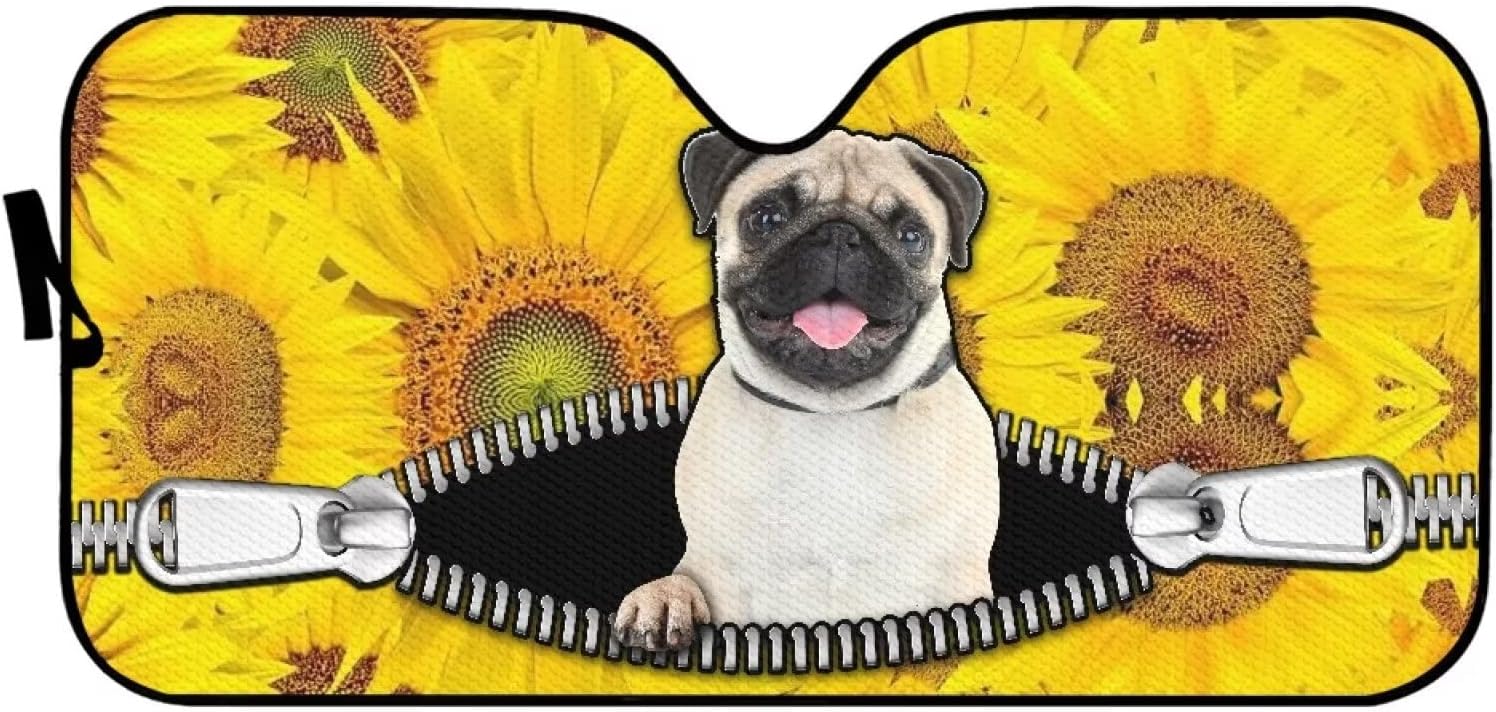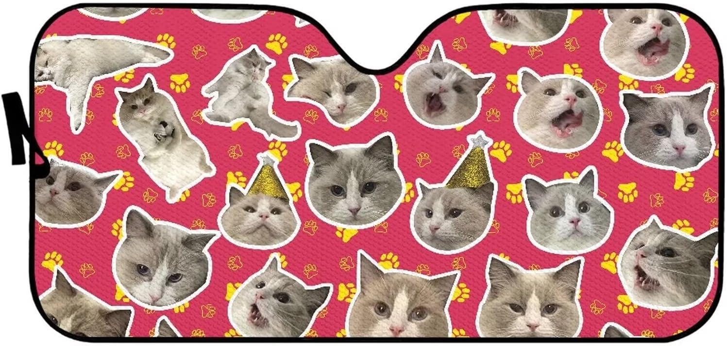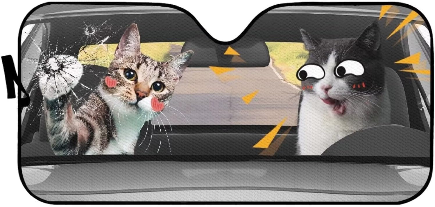 Allcute has various unique decorative car windshield sun shade to suit all tastes, with everything from funny animal to holiday theme (Christmas,Halloween,Thanksgiving Day and so on) prints available, products ranges form car seat cover, car foot mat, windshield sun shade, etc. Allcute is your best bet if you want to personalize your car’s interior.Product DetailsUniversal FitMaterial:Automotive windshield sunshade: Aluminum foil, PE material, sturdy and not fade.Size:57.1 x 27.4 inches.Note: Please allow a little color difference due to different display and light environment.
