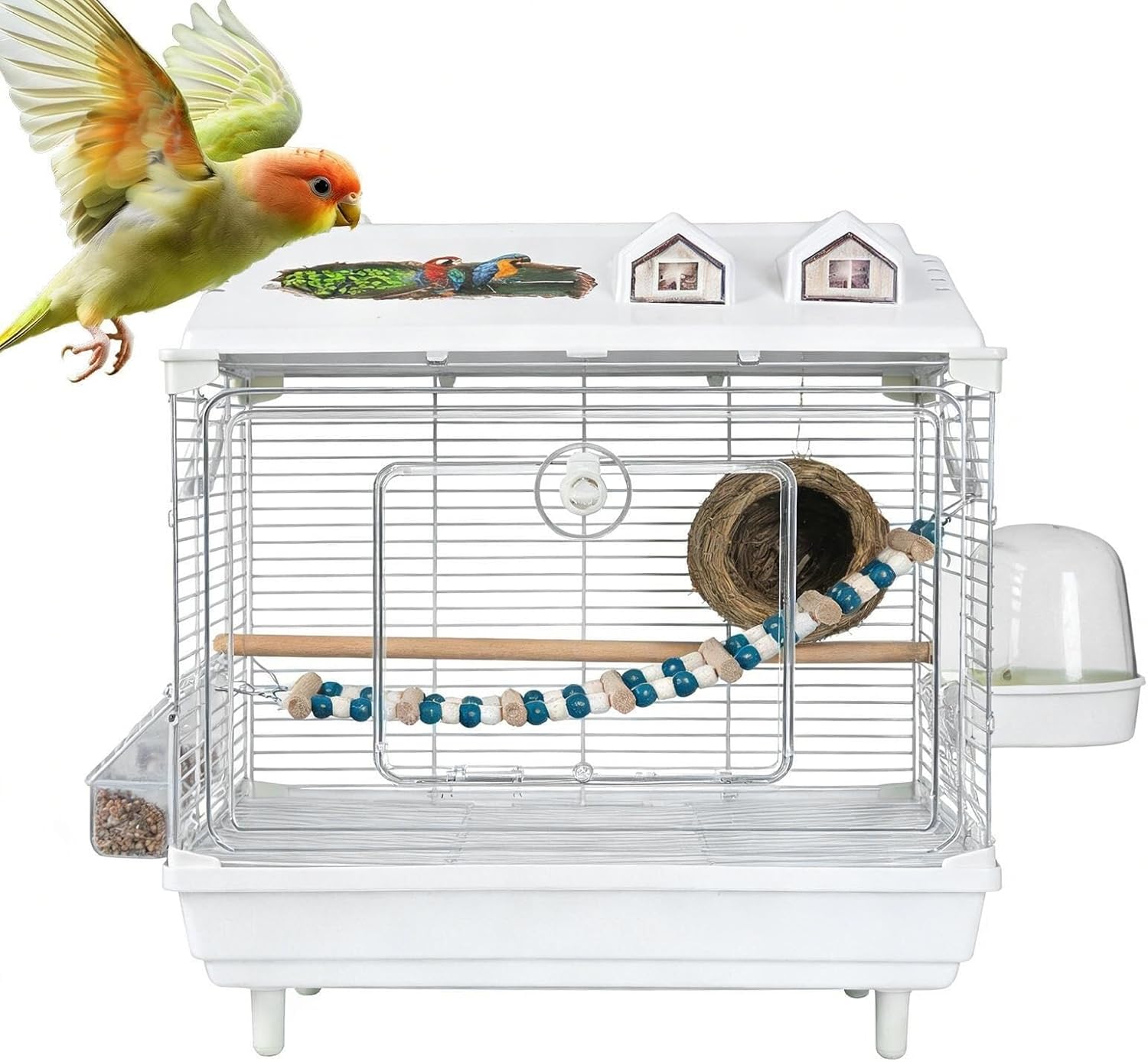 The advantages of our birdcage:High quality and reliable, beautiful and environmentally friendly, strong load-bearing capacity, good stability, fine craftsmanship, and long-term use without deformation or cracking. The practical cage bottom tray easily keeps the area around the birdcage clean and tidy.The stable birdcage structure provides safety protection, is aesthetically pleasing and lightweight, easy to carry, and looks as good as new even after long-term use. It is scratch resistant, weather resistant, and has a smooth surface that is easy to clean, effectively resisting daily wear and environmental erosion.The spacious interior space ensures that your pets have enough space for activity, rest, and play, not only ensuring the safety of birds but also keeping them active, thereby extending their lifespan.Product name: Bird Cage/Bird Aviary/Birdcage/Flight Birdcage/Parrot Cage/Parakeet Cage/Budgie Cage/Cockatiel Cage/Pet Bird Cage/Bird Carrier/Tall Tiel Cage/jaulas para pájaros/Big Bird Cage/Small Bird Travel Cage/Travel Carrier CageMaterial: iron wire+ABSProduct size: 47*30*48cm/18.5*11.8*18.8inThe package includes:1 x Bird Cage1 x wooden pole1 x Ladder1 x nest1 x External bath box2 x food boxesFriendly reminder:1. This product does not include any other items except as shown in the product image.2. Due to manual measurement, please allow for an error of 2-3%.3. Due to lighting and shooting angles, there may be slight errors and color differences. Thank you.