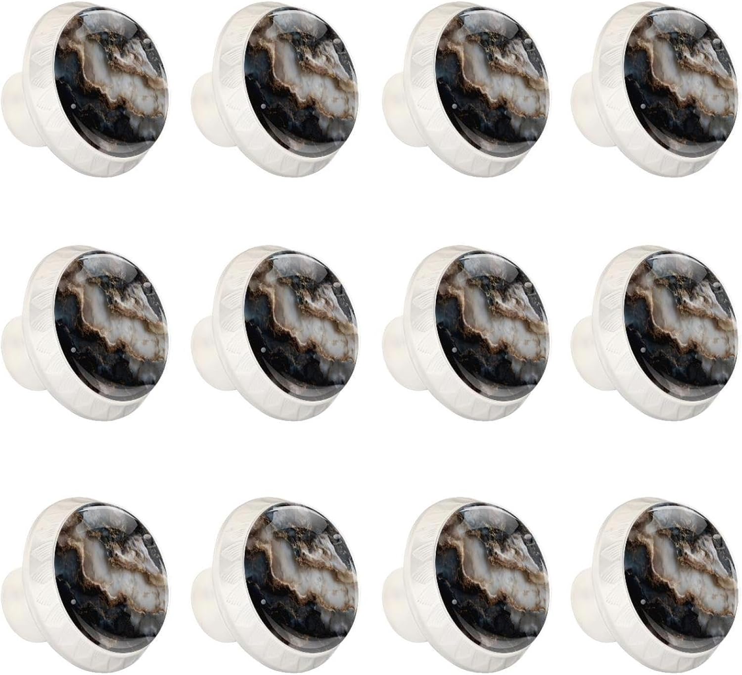 Upgrade your home decor with LORVIES Decorative Cabinet Knobs, Drawer Knobs, Cabinet Pulls & Drawer Pulls.Make them part of your home decor!These cabinet hardware & furniture knobs are the perfect size for your cabinets and drawers.The elegant and unique design, featuring diverse decorative patterns, adds a touch of sophistication to your cabinets.Not only are these kitchen cabinet knobs & bathroom drawer knobs functional, but they also elevate the style of any space.Whether it's your living room, kitchen, bedroom, or bathroom, these dresser knobs, wardrobe knobs & cupboard knobs are versatile and complement various decor styles. Product Information Material: ABS, Glass, Stainless Steel, Paper Size: 1.37" (Length) x 0.66" (Width) x 1.1" (Height) Weight: 0.28 Pounds / 0.13KG Base Color: Black Shape: Round with pattern edge Package Include: 12 x Cabinet knobs, 24 x Screws (Short x 12: 1.1" & Long x 12: 1.37") Notice ! ! ! Please measure and confirm the size of cabinet knobs & drawer knobs you need before purchasing. Please be careful when drilling holes. Manual measurements may be slightly inaccurate. Because of each computer display different colors may be related to physical and picture, hope to understand. LORVIES Service Provide you with a worry-free shopping, thank you! Any problems, please feel free to find up to us, we will try our best to help you solve your problems. Customer service time: Monday to Friday (9.00am-6:00pm) (GMT+8)(Due to the time difference, please allow us 24 business hours to get back to you. Thank you!)
