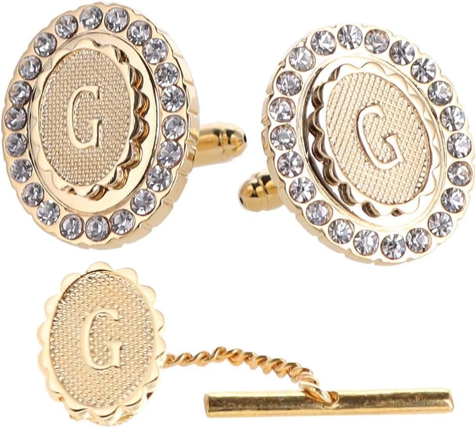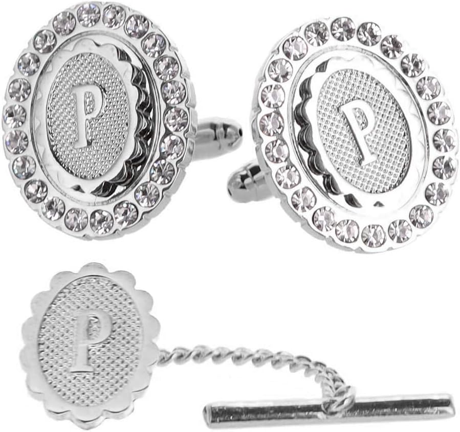 Vittorio Vico Bling Initial Cuff Links & Tie Tack Set: A to Z