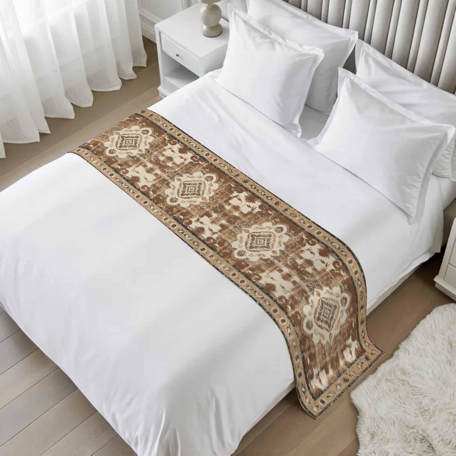 Daily ProtectionOur bedding scarves shield your comforter and duvet from dust, pet hair, spills, crumbs and daily wear. It creates a reliable protective layer to keep your bedding clean, saving you from frequent deep cleans. No more stress over messy habits or unexpected little messes Lightweight yet durability, foot of bed cover helps extend the life of your bedding while keeping daily maintenance simpleChic DecorationA small detail can completely transform a space. Decorative bed runner for foot of bed comes in a variety of on-trend designs, including boho, ethnic, farmhouse, rustic and coastal elements to match any home aesthetic. Switch up the look for everyday elegance or refresh your space for Christmas, Thanksgiving, Valentine's Day, Halloween, Easter, or New Year gatherings without replacing your beddingPremium SatinCrafted from high-quality satin polyester, double-sided bed scarf for hotel features a smooth, lustrous surface that instantly elevates the look of your bedding. The fabric drapes beautifully with a clean, structured fall at the foot of the bed, creating a tailored finish. Soft and gentle to the touch, bedding throw for home decor offers a refined feel while maintaining a polished appearance—where comfort meets understated luxuryMulti-functionUnlike cotton, our soft satin bed scarf has a smoother surface that's less likely to snag from claws, making it a wonderful choice for homes with pets. Soft yet sturdy, it also creates a cozy resting spot at the foot of the bed. Beyond bedroom, versatile bed scarf can be styled in hotel, wedding, guest room, buffet, sideboard, sofa, cabinet—adding both function and decorative appeal wherever it's placedEasy CleaningOur bed runner for bedroom is machine washable for effortless care. Simply wash separately on gentle cycle, do not bleach, and tumble dry low. It remains soft and vibrant after repeated washes