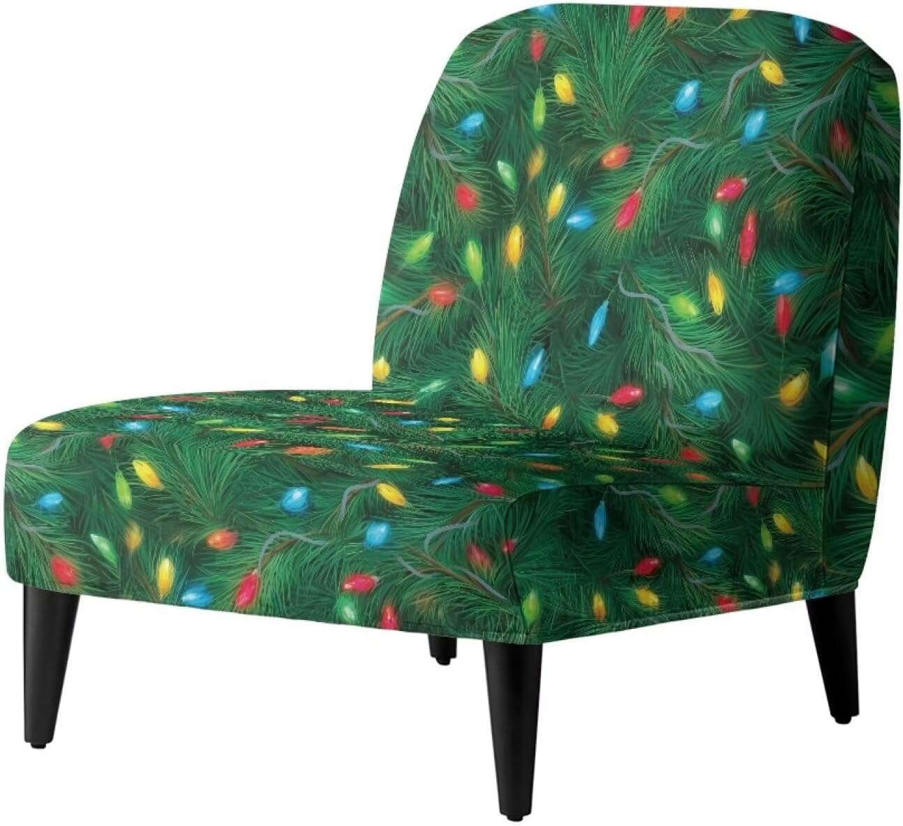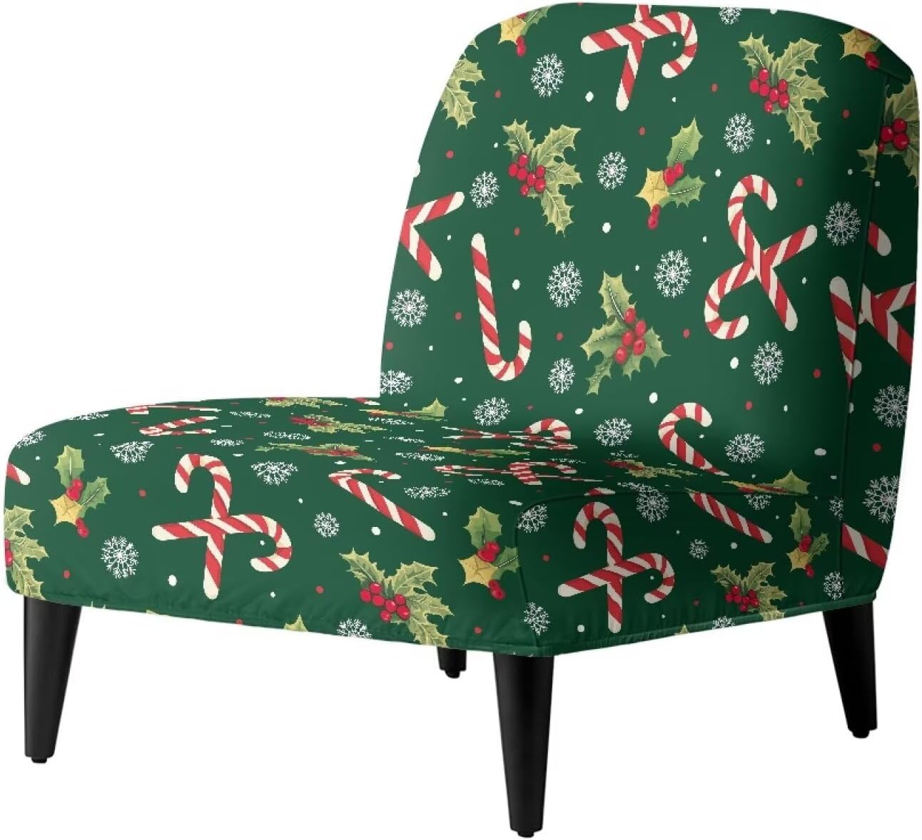 Blue Christmas Accent Chair Covers Without Arms Candy Thick Armless Recliner Chair Sofa Cover Stretchable Removable Armless Chair Slipcover for Living Room Hotel Home Decorations