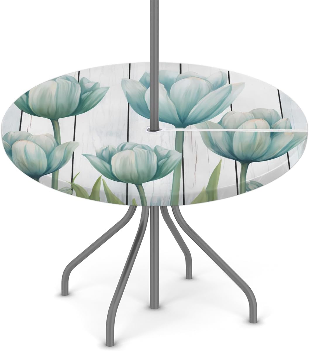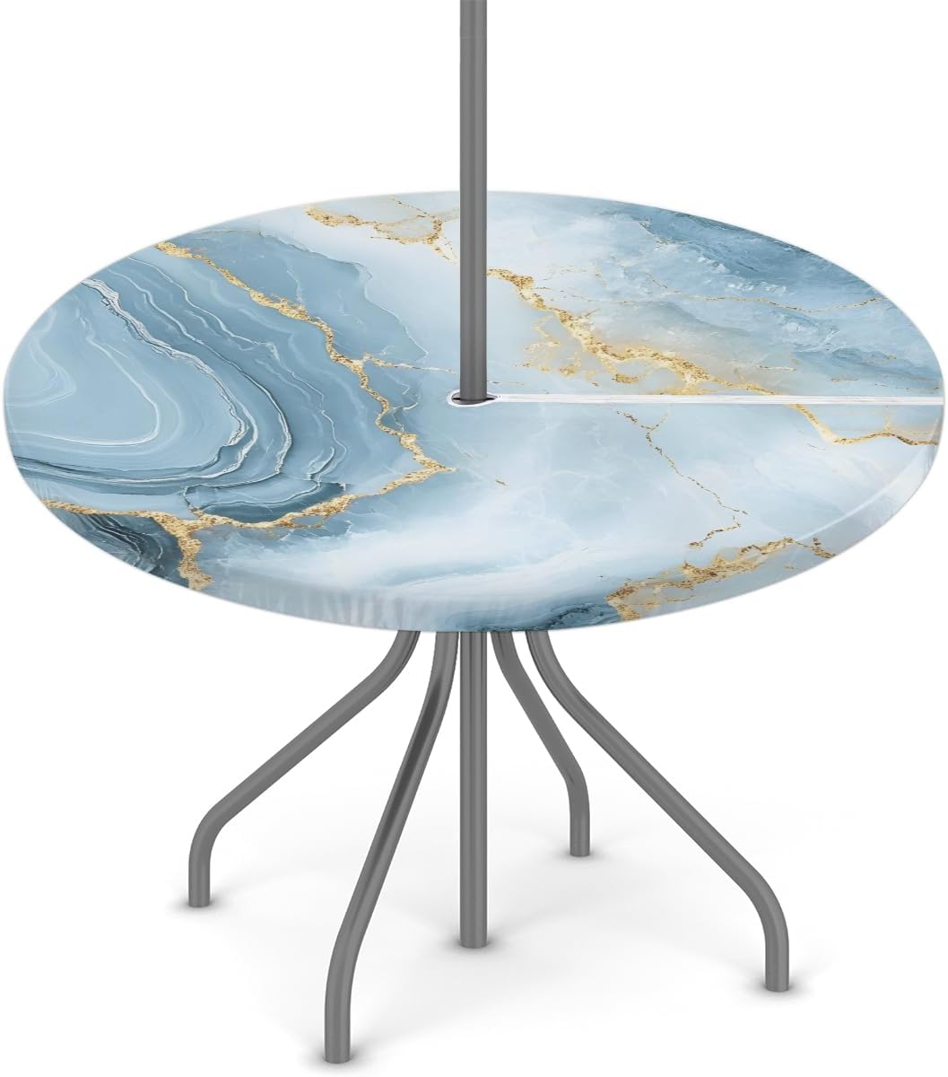 Blue Marble Outdoor Round Tablecloth with Umbrella Hole with Zipper, Round Fitted Patio Table Cover with Elastic Edged, Waterproof Wipeable Table Cloth Fit 36"-44" Round TablesCautionPlease measure the size before purchase.Please do not machine wash. Do not bleach.Since our tablecloths are made of polyester waterproof fabric, how to remove the creases caused by the shipping process? Place the fabric tablecloth on the reverse side and iron with low temperature steam to remove creases created during shipping.Product specifications:Size: Fit 36"-44" Round Tables( Please measure the size before purchasing.)Materials: PolyesterPackaging:1pcs Round Fitted TableclothProduct Features:HIGH QUALITY FABRICOur round tablecloths are made of high quality vinyl and polyester with a splash and water repellent coating, water and oil repellent as well as other stains, durable and long lasting so your table will last longer, for your table good protection.ELASTIC BAND EDGEAllows tablecloths and bench covers to better fit your table without clips, won't slip easily and won't be blown by the wind, and enjoy picnics, RV and camping trips, parties and barbecues with ease and joy.ZIPPERED DESIGNThis zippered tablecloth has access to the center umbrella hole, making it easy to install or remove without removing the patio umbrella. WATERPROOF & WIPEABLEThe round outdoor tablecloth can effectively protect your table from scratches, dust and prevent the formation of dents, chips and scratches. SVERSATILE OCCASIONS Our waterproof round table cover is suitable for outdoor table, buffet dinners, patio, picnic, banquet, tea table, party, camping, barbecue, indoor, outdoor and everyday use.
