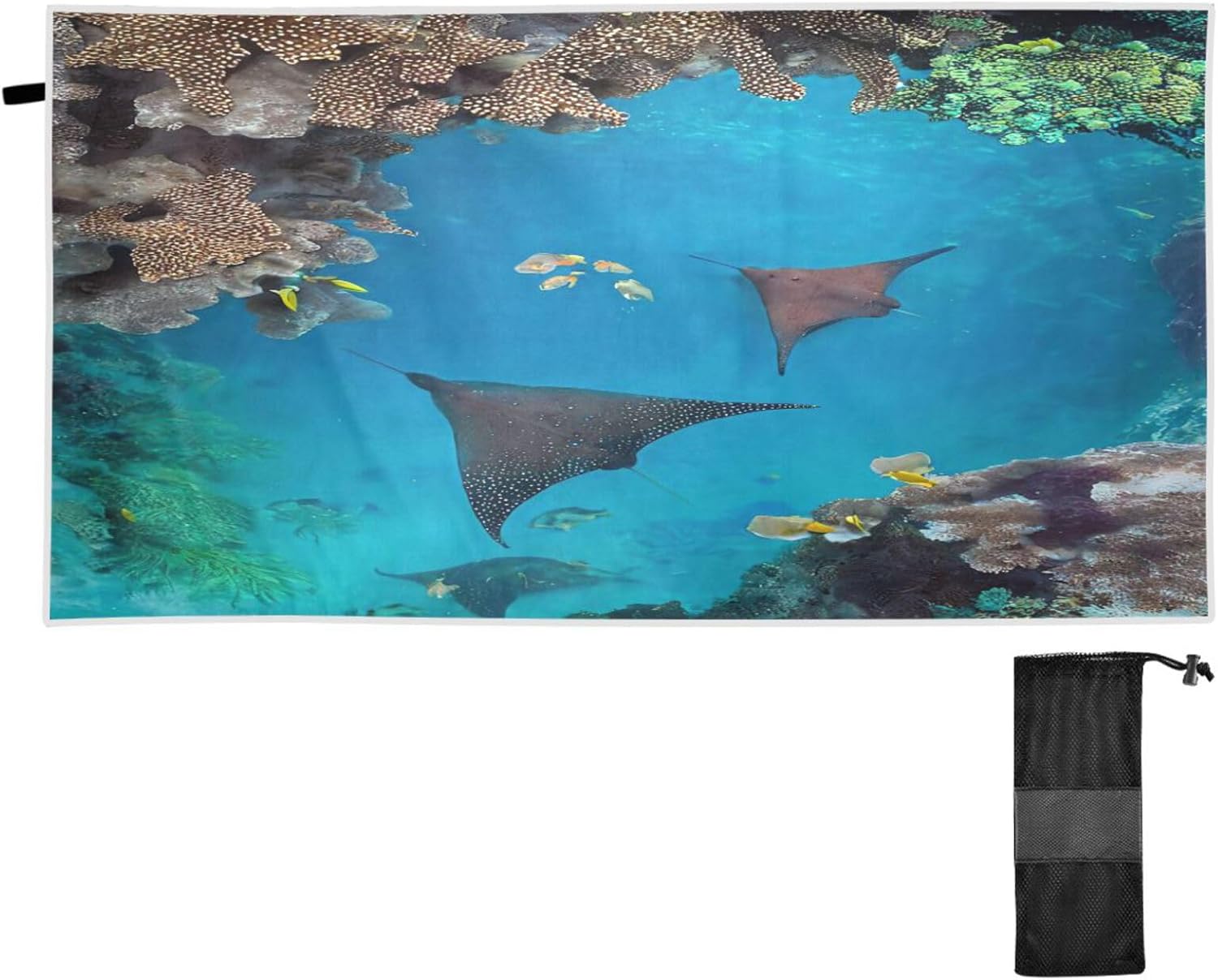 Blueangle BEACH TOWELS✔Size is 31 "x 71"✔Suitable for indoor and outdoor use, with excellent portability.✔It has a good touch and high water absorption rate.✔Lightweight and portable, foldable design, and can be hung and stacked.Soft And ComfortableThis beach towel is made of Polyester. The material will make towels more soft, comfortable and durable.Quick-drying and super absorbentThese microfiber towels dry three times faster than cotton towels, and the towel absorbs up to five times its weight. Just leave it for a few minutes and use it quickly again.Best Travel CompanionConveniently compact, our lightweight beach towel is great for travel. Fold it up small to maximize luggage space, or carry it solo on your next outdoor adventure. Essential for backpacking, hiking or simple sunbathing, you can use it as a picnic blanket, camping towel or cover up.If you encounter any problems, please contact us promptly, if you do not like them, you can unconditionally refund.